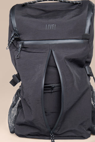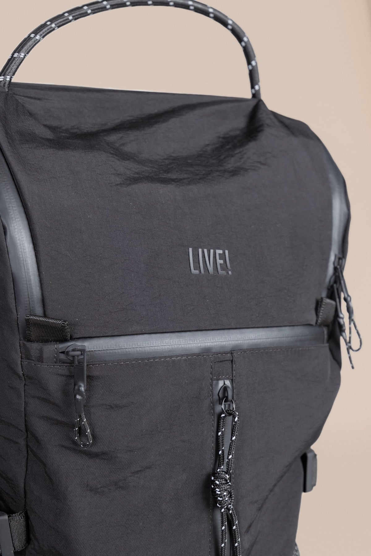 The unisex LIVE! Backpack combines functionality and comfort, ideal for travel or hikes.
