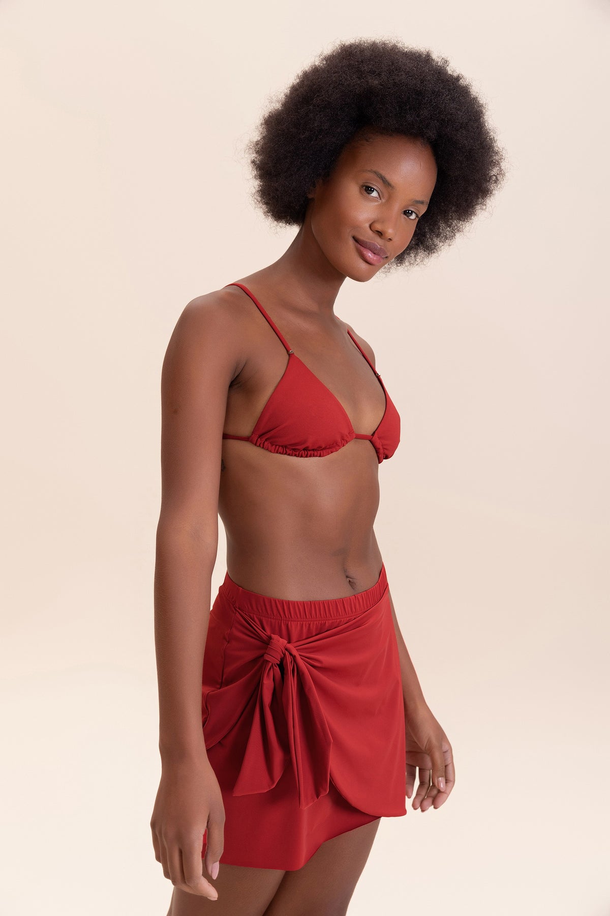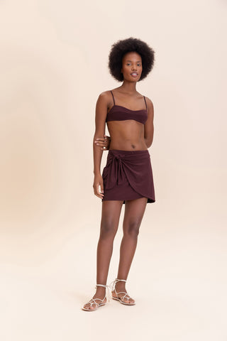 The skirt is a very feminine piece. Its design features a wrap detail and tie on the side, adding charm and delicacy to the product. An essential item for summer and a great choice for outings, keeping you stylish during beachside strolls off the sand!