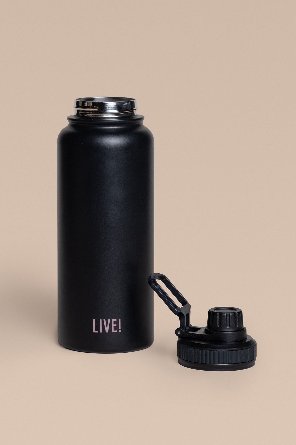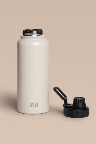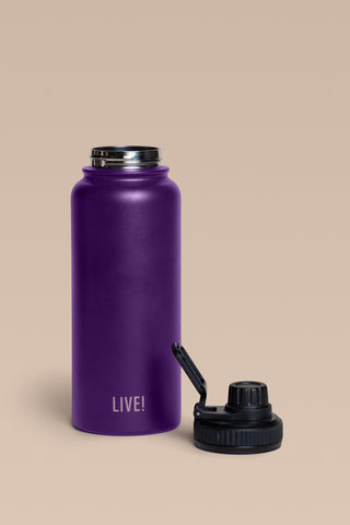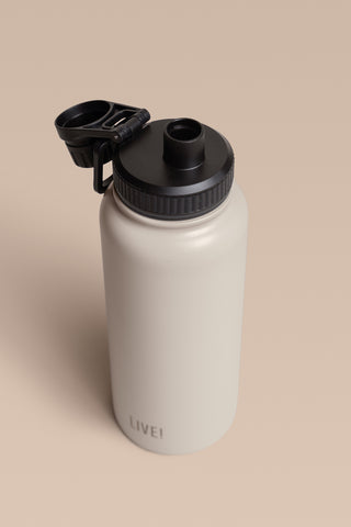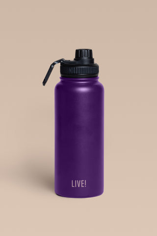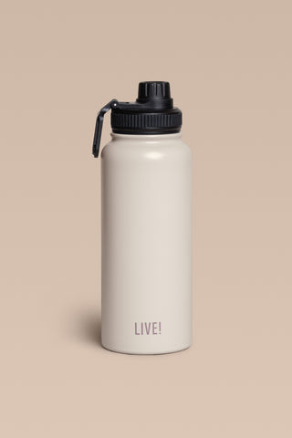 The Thermo Sport Bottle comes with a screw-top spout and a carry handle for easy transport. It features a double-wall vacuum insulation that keeps drinks hot for up to 10 hours with the Stay Hot system and cold for up to 12 hours with the Stay Cold system. Made with BPA-free materials, it prioritizes health and safety. The exclusive LIVE! Signature adds a modern and authentic touch to the design.