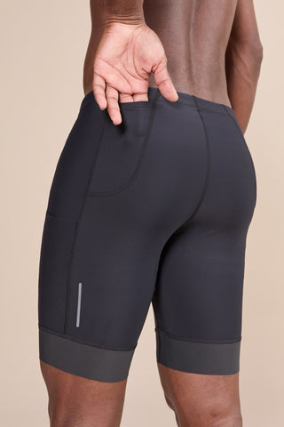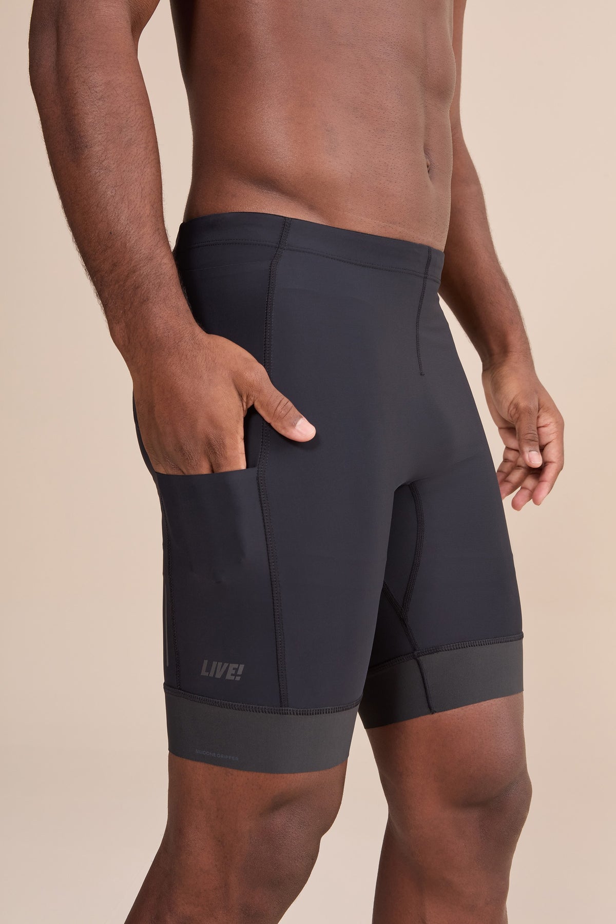 The Biker 9" Six Pockets Men's Shorts are designed for high-performance workouts, gym, and running. Built for mobility and support, they feature UV 50+ sun protection for outdoor activity. An ergonomic fit with an internal elastic waistband adapts to the body for comfort and performance. Six functional pockets provide convenience: four on the sides and two front pockets with bonded finishes for reduced friction and a clean look. Reflective back details improve visibility in low-light conditions, while a gripper hem keeps the 9" length in place during training. Made from high-compression fabric, they offer breathability, quick-drying performance, and elasticity to match your pace.