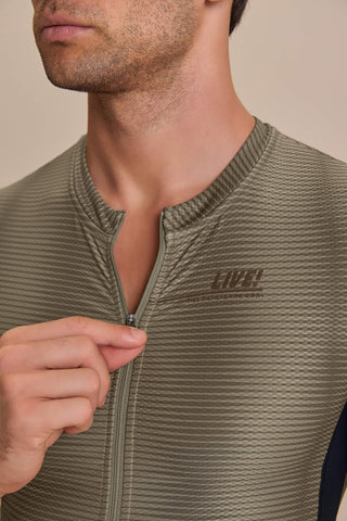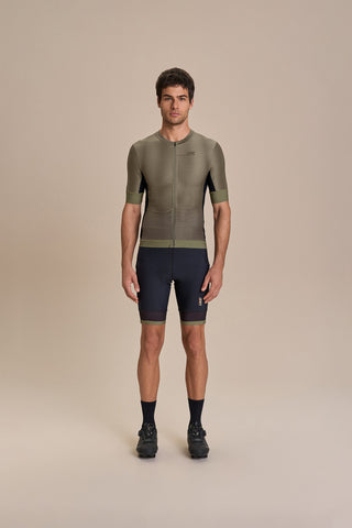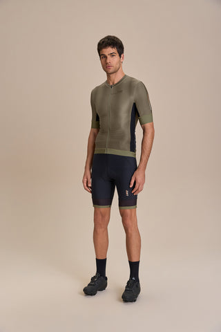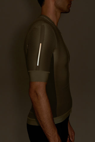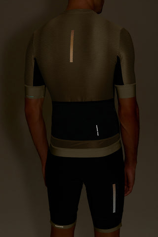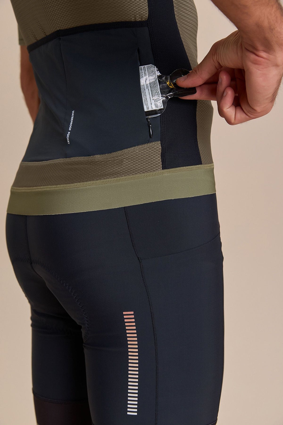 High-performance men’s cycling jersey designed for intense training and competition. Anatomical paneling and a full-length front zipper deliver a close, functional fit with ease of use during rides. Gripper application at the sleeves and back hem helps keep the jersey in place through movement, while bonded front construction reduces friction for a clean, streamlined feel. Waterproof back pockets provide secure storage for essentials, and strategically placed reflective details enhance visibility in low-light conditions. Crafted with Quick Dry fabric to help regulate temperature and keep the body dry across varying climates.