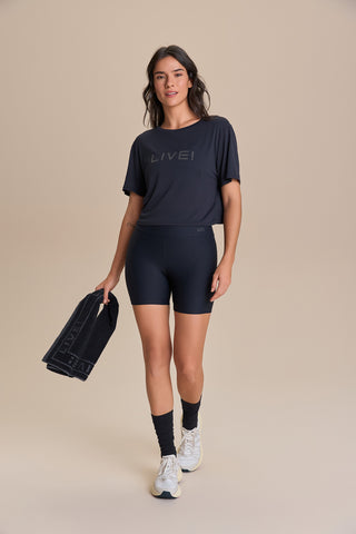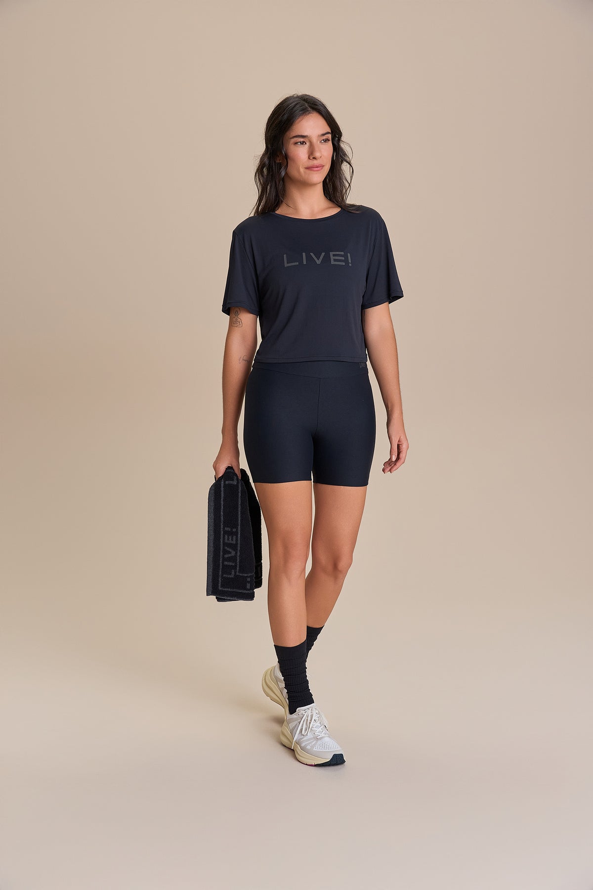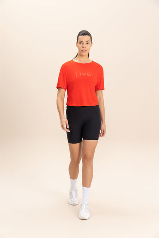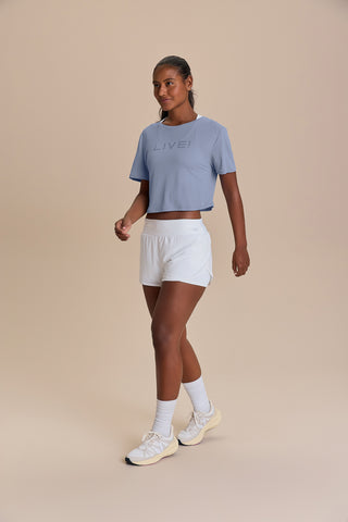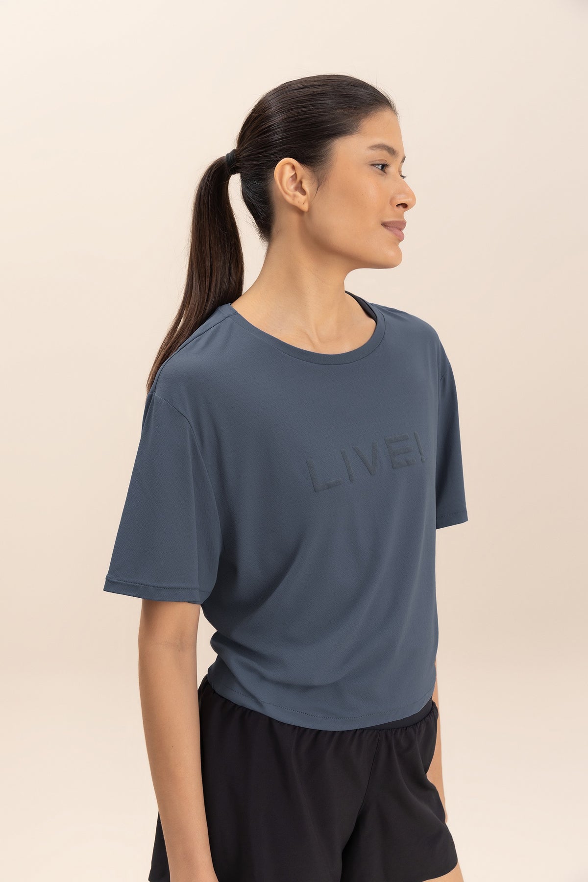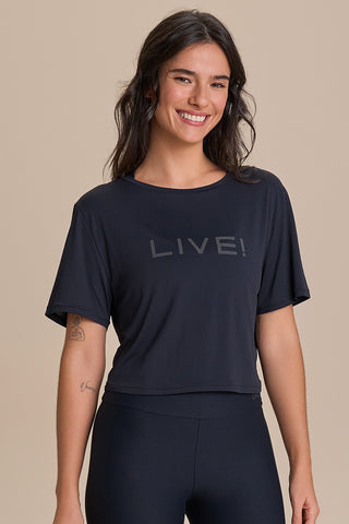 The LIVE! Comfort Cropped T-Shirt is designed for light to moderate workouts including gym, full body training, running, and walking. With a relaxed fit, it allows freedom of movement and comfort throughout the day. Made from ultra-light, breathable fabric, it features Quick Dry technology to manage moisture and Easy Care for easy maintenance. The Signature LIVE! print with subtle shine adds authenticity and style.