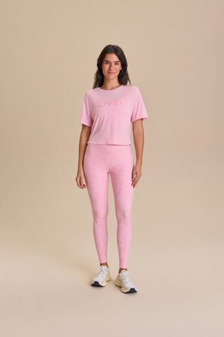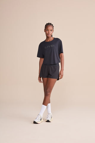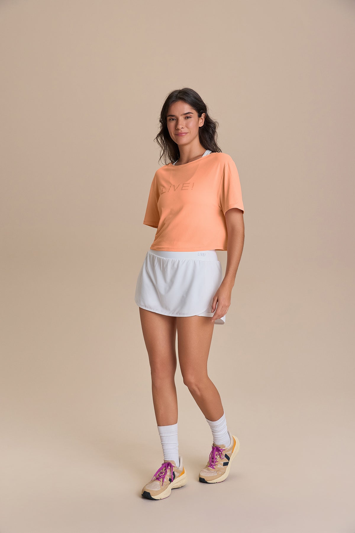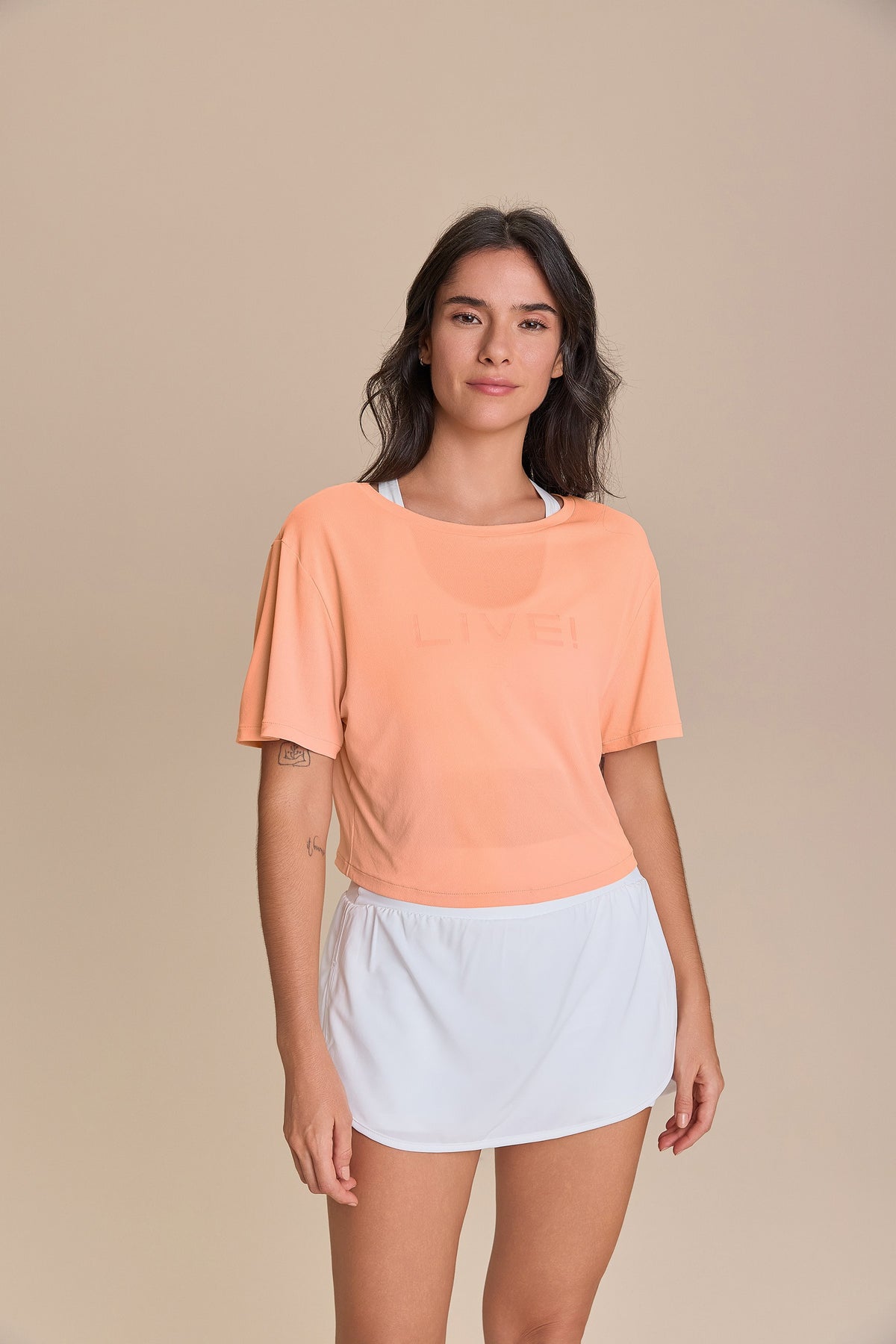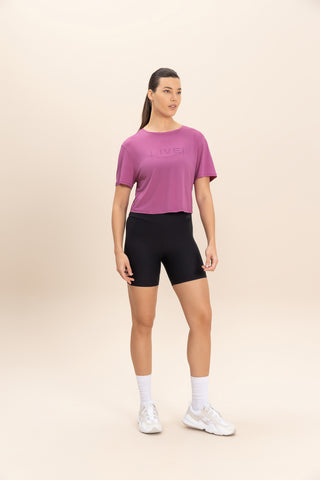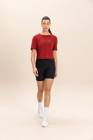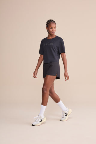 The LIVE! Comfort Cropped T-Shirt is designed for light to moderate workouts including gym, full body training, running, and walking. With a relaxed fit, it allows freedom of movement and comfort throughout the day. Made from ultra-light, breathable fabric, it features Quick Dry technology to manage moisture and Easy Care for easy maintenance. The Signature LIVE! print with subtle shine adds authenticity and style.