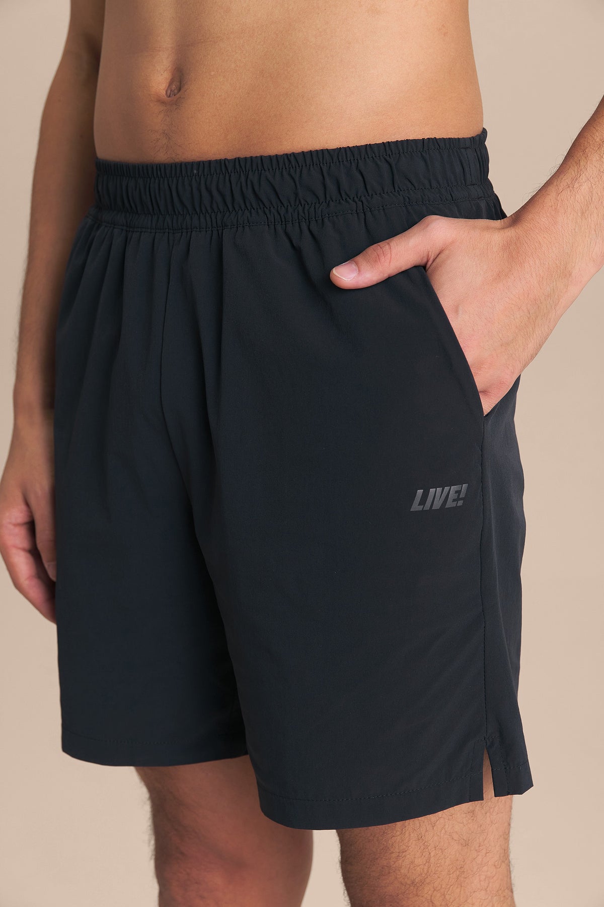 These Shorts feature a 7'' length and an adjustable inner elastic waistband, ensuring a personalized and comfortable fit. They include two functional side pockets, a back zip pocket, and a key pocket in the inner liner, providing practical storage for essential items with security. The anatomical inner-leg panel enhances fit and promotes freedom of movement, while small side slits add lightness and improve mobility. Made from a woven fabric with excellent stretch and Easy Care and Quick Dry technologies, they simplify daily maintenance and help keep the body dry and comfortable during use. The exclusive LIVE! Signature adds authenticity to the design.