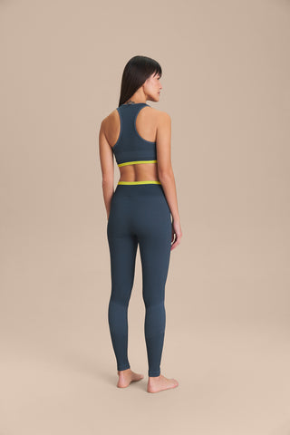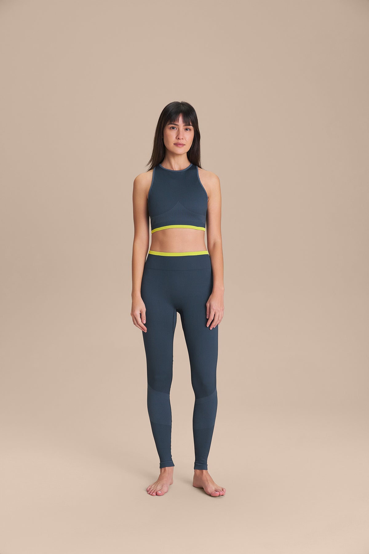 Crafted with Seamless technology for a smooth, stitch-free finish, the Racerback Sports Bra combines varied ribbed textures and graphic detailing, featuring a subtle contrast band that enhances the silhouette. The double-layered, fully lined construction includes an internal opening for removable padding, providing support and versatility, ideal for medium-impact activities.