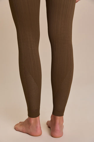 The Seamless Long Leggings feature a sculpting mix of textures and graphic finishes that enhance the silhouette. A laser-cut detail at the back hem adds a modern and sophisticated touch. With a silhouette-lengthening fit, its medium compression stimulates blood circulation and supports muscle recovery post-workout. The gusseted crotch allows full freedom of movement, while the ribbed waistband ensures a secure and comfortable fit ideal for any activity.