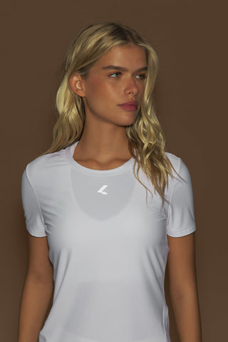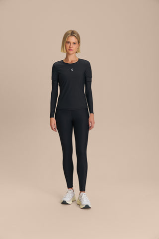 The Shirt features a crew neckline, fitted silhouette, and strategic cutouts that flatter the figure, providing comfort and freedom of movement during practice. Made from technical fabric with a light texture, it includes UV 50+ protection, ideal for outdoor activities. The Airflow construction enhances breathability and contributes to thermal comfort during high-intensity activities, while Easy Care and Quick Dry technologies simplify daily maintenance and help keep the body dry and comfortable. The exclusive LIVE! Signature adds authenticity to the product's.