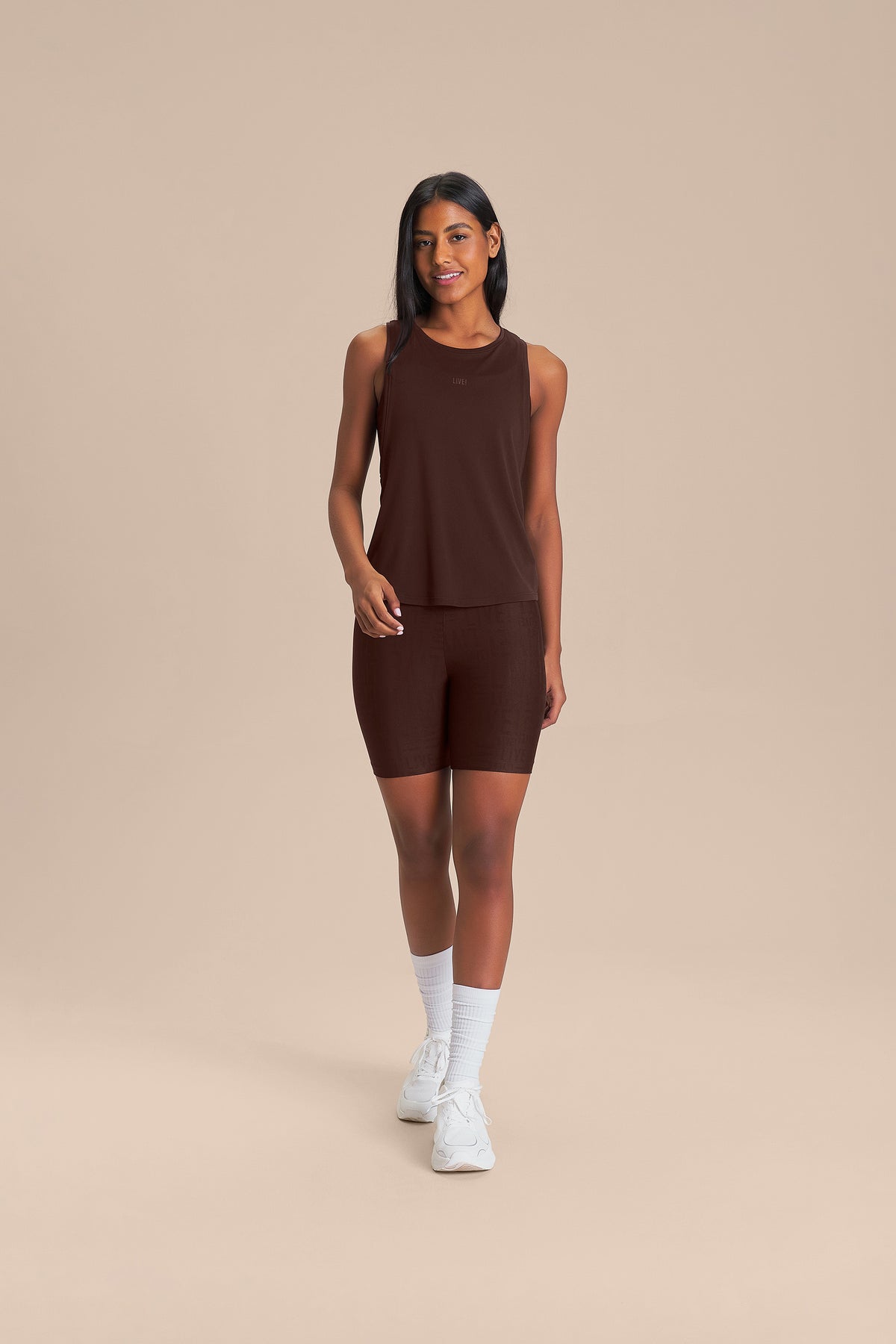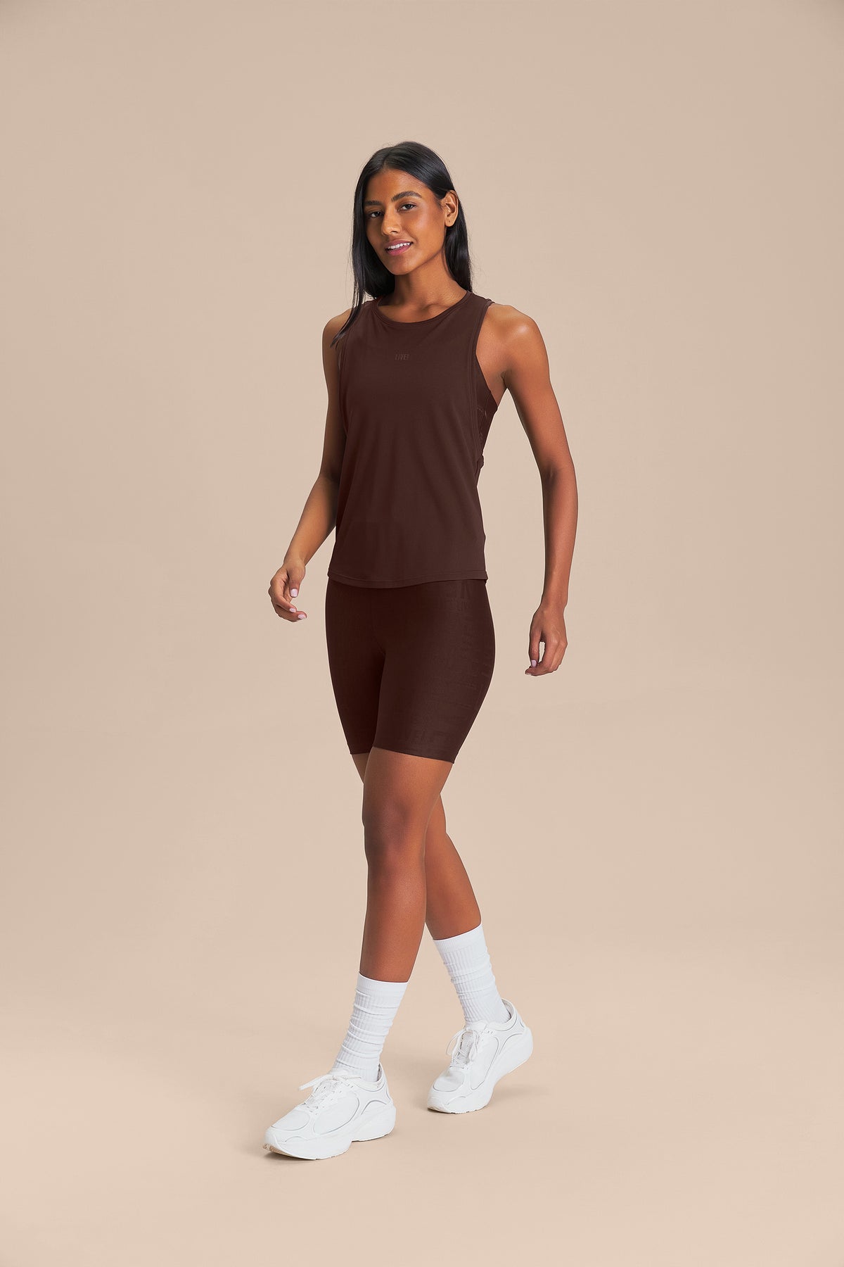 The Tank features a slightly fitted silhouette that enhances the figure without restricting freedom of movement. The crossed-back design creates a subtle opening that improves ventilation and adds a modern touch to the look. Made from biodegradable polyamide with SENSIL® Biocare technology, which accelerates the decomposition process and helps reduce environmental impact, it also includes Easy Care and Quick Dry technologies that simplify daily maintenance and keep the body dry and comfortable throughout the day. The exclusive LIVE! Signature adds authenticity to the look.