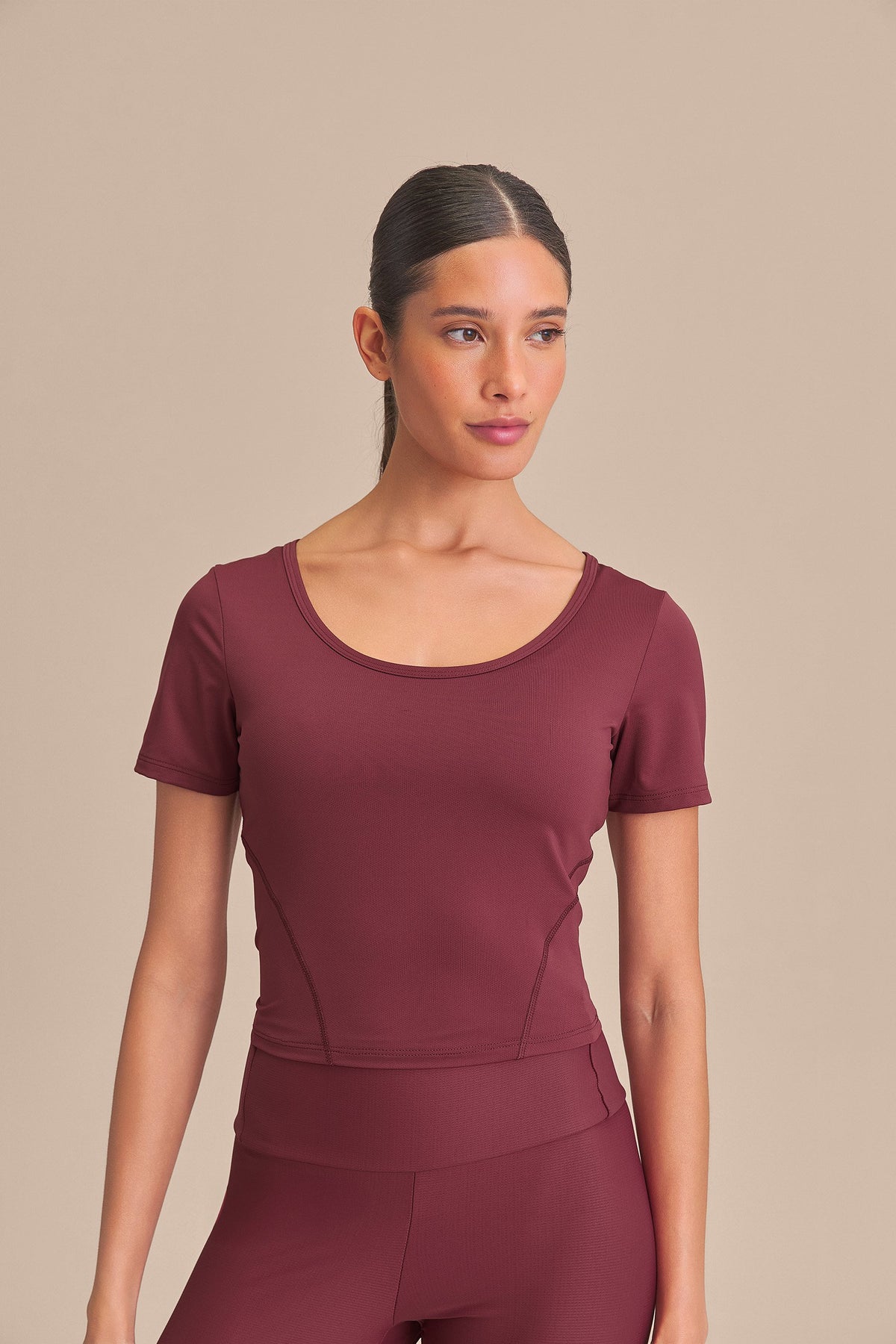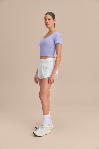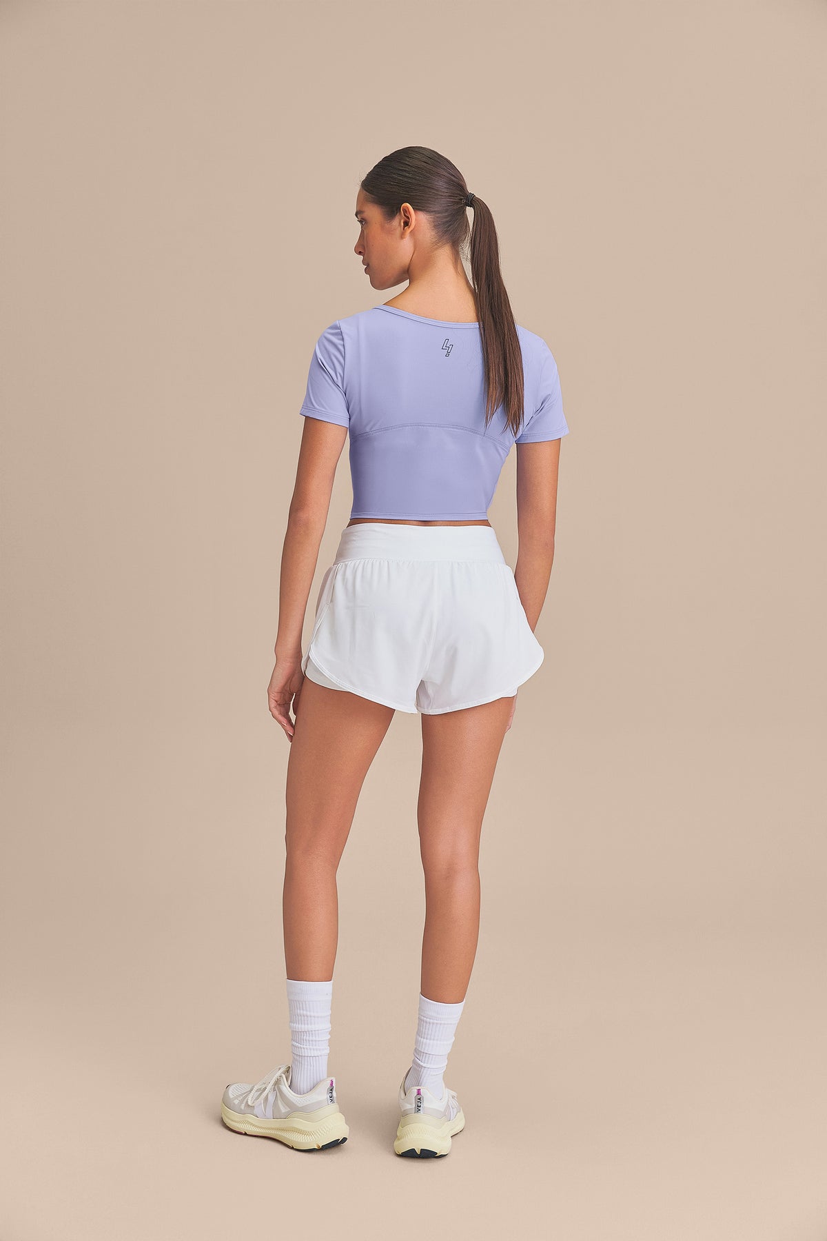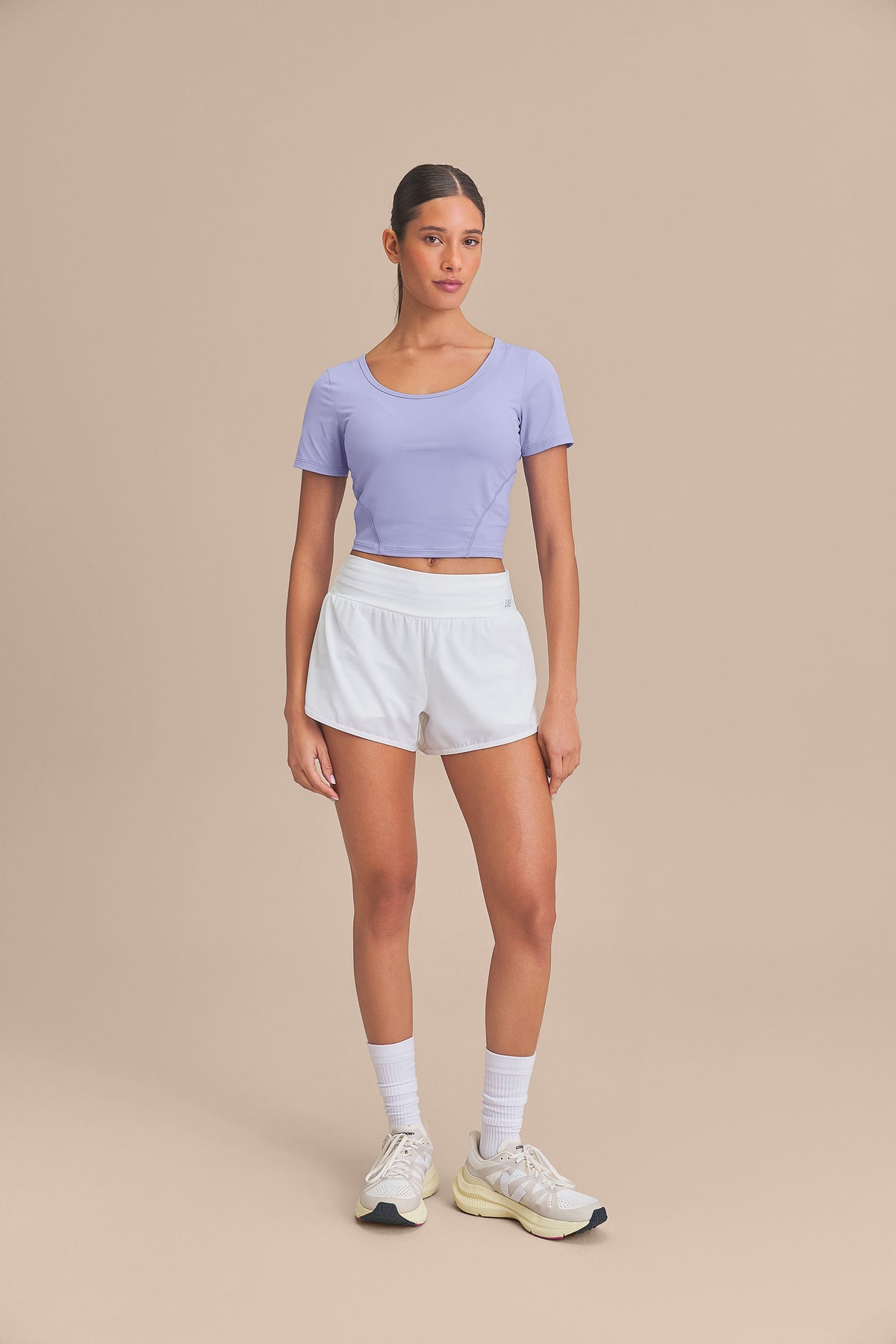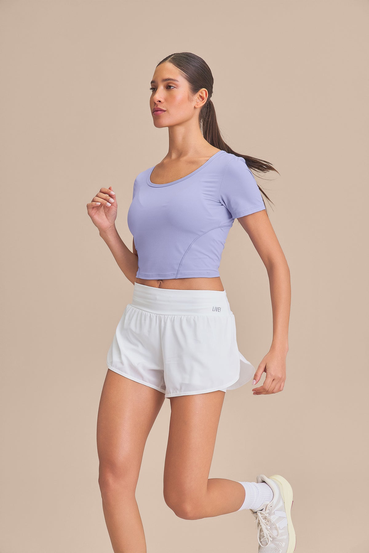 The Cropped Top features a subtly elongated round neckline and strategic cutouts that provide an anatomical fit, enhancing your silhouette and allowing full freedom of movement during workouts. The exclusive LIVE! Signature adds authentic style.