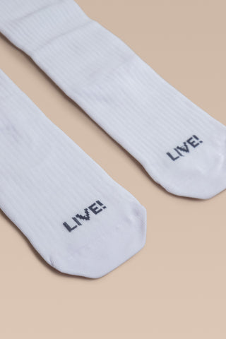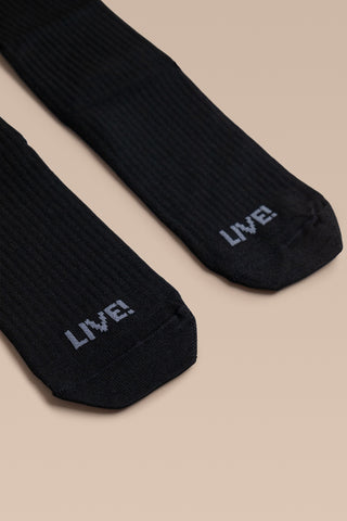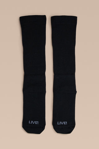 Unisex and built for high-intensity training, the High Compression Sock combines medium compression (20–30 mmHg), a soft touch, and optimized breathability. The seamless toe construction minimizes friction, while the quick-dry technology helps keep feet dry. With a knee-length silhouette, it supports muscle recovery and enhances stability. The Signature LIVE! at the heel adds authenticity to the look.