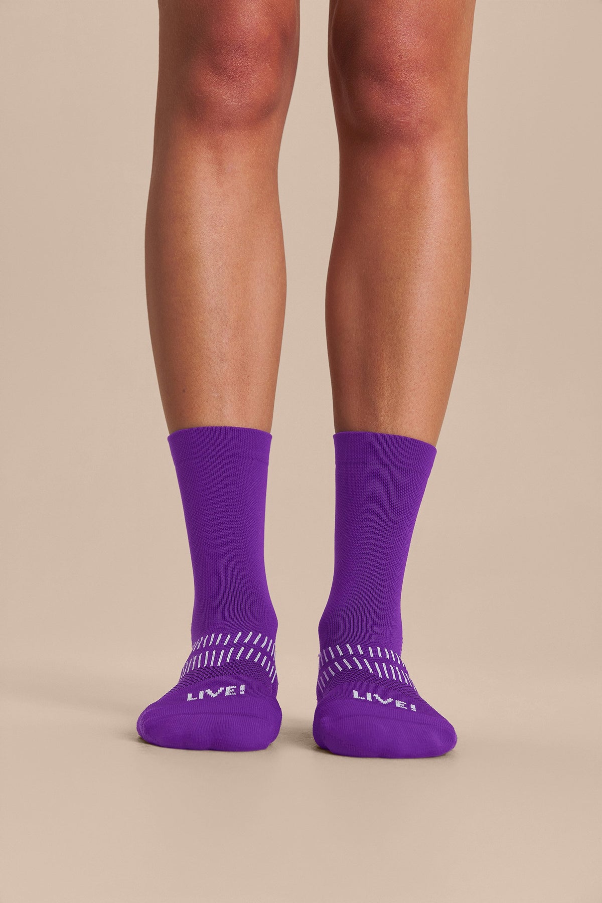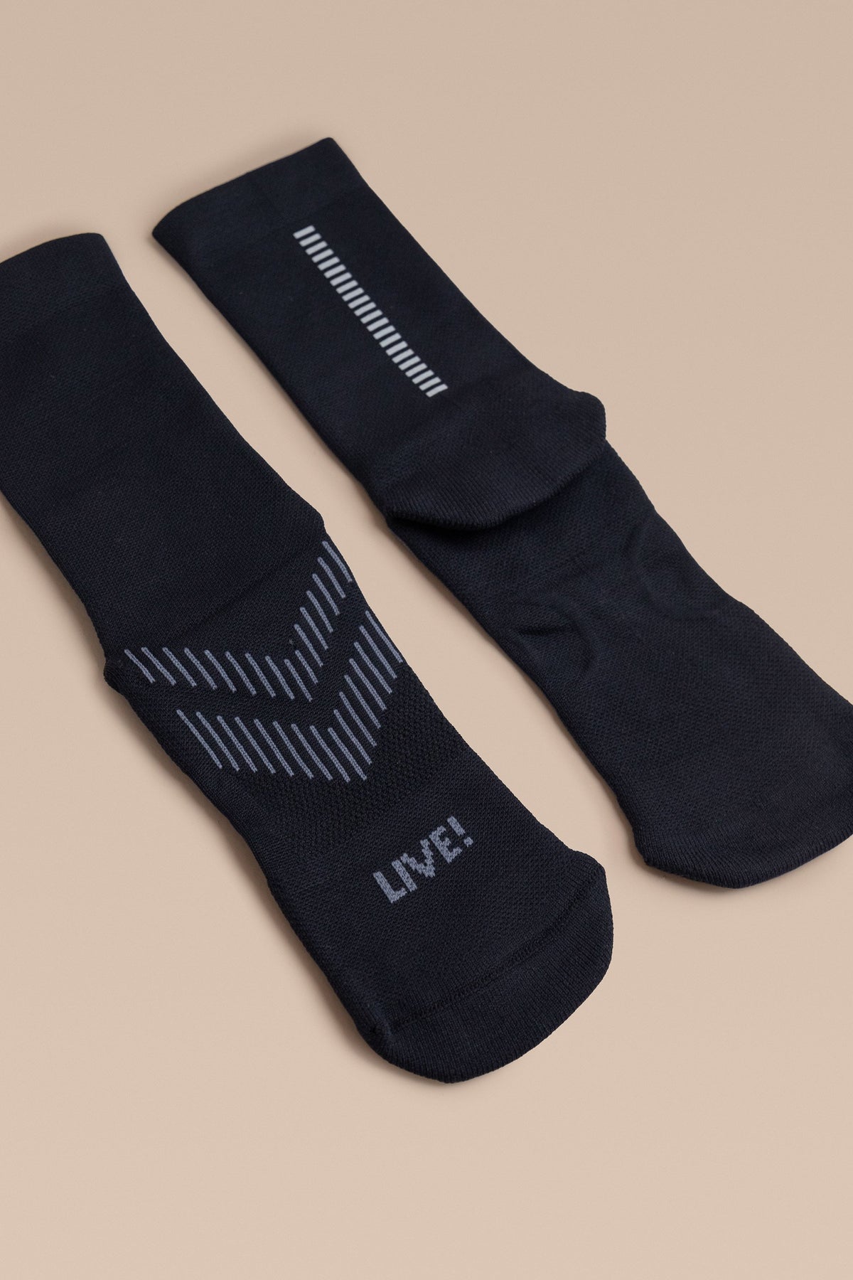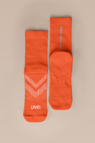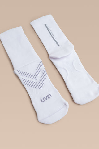 Unisex and engineered for performance, the Run Sock features a 10 cm crew-length design with a reflective detail strategically placed to increase visibility in low-light environments or nighttime workouts. Made with Sensil® BodyFresh yarn, it offers bacteriostatic treatment that helps prevent the growth of odor-causing bacteria. The seamless toe construction minimizes friction, ensuring prolonged comfort during demanding training. The exclusive LIVE! Signature adds a touch of authenticity to the look.