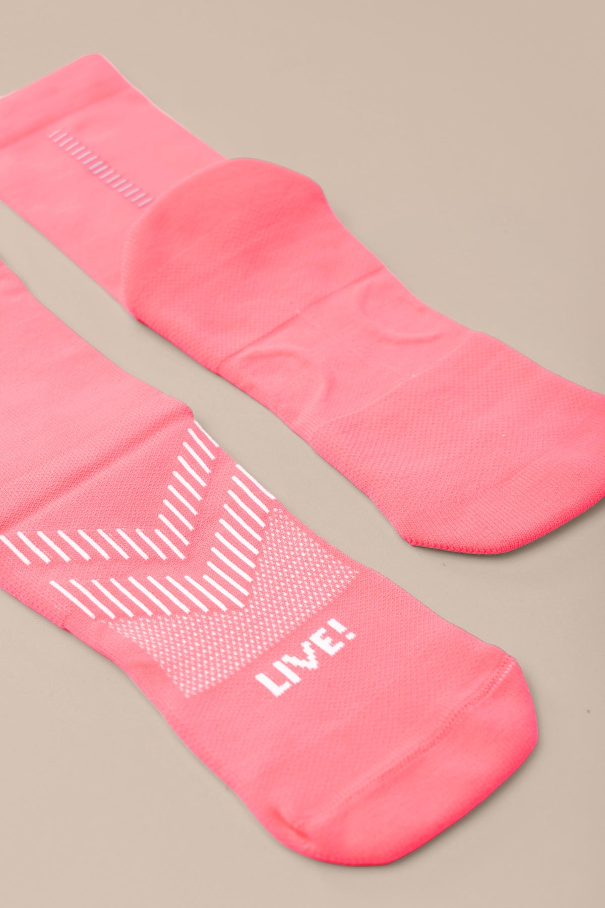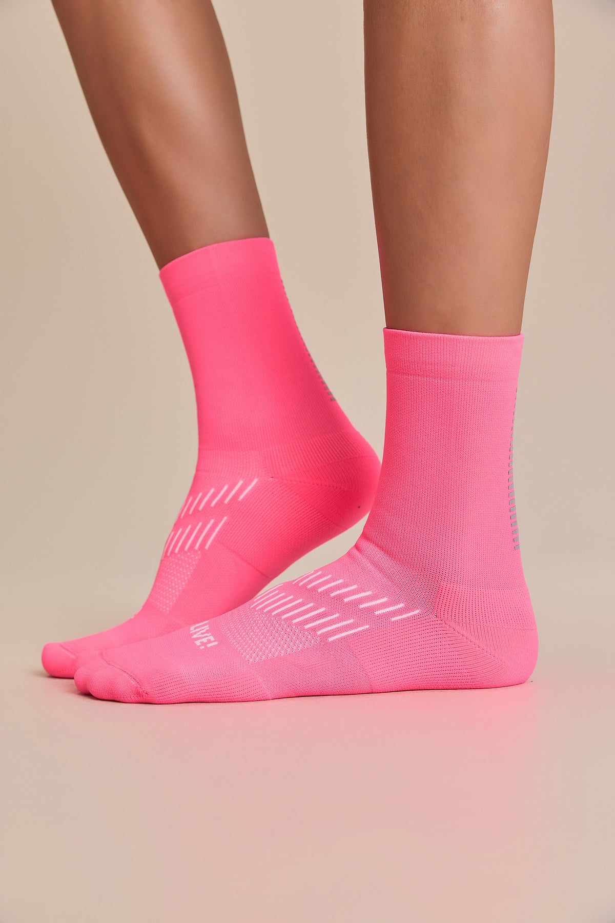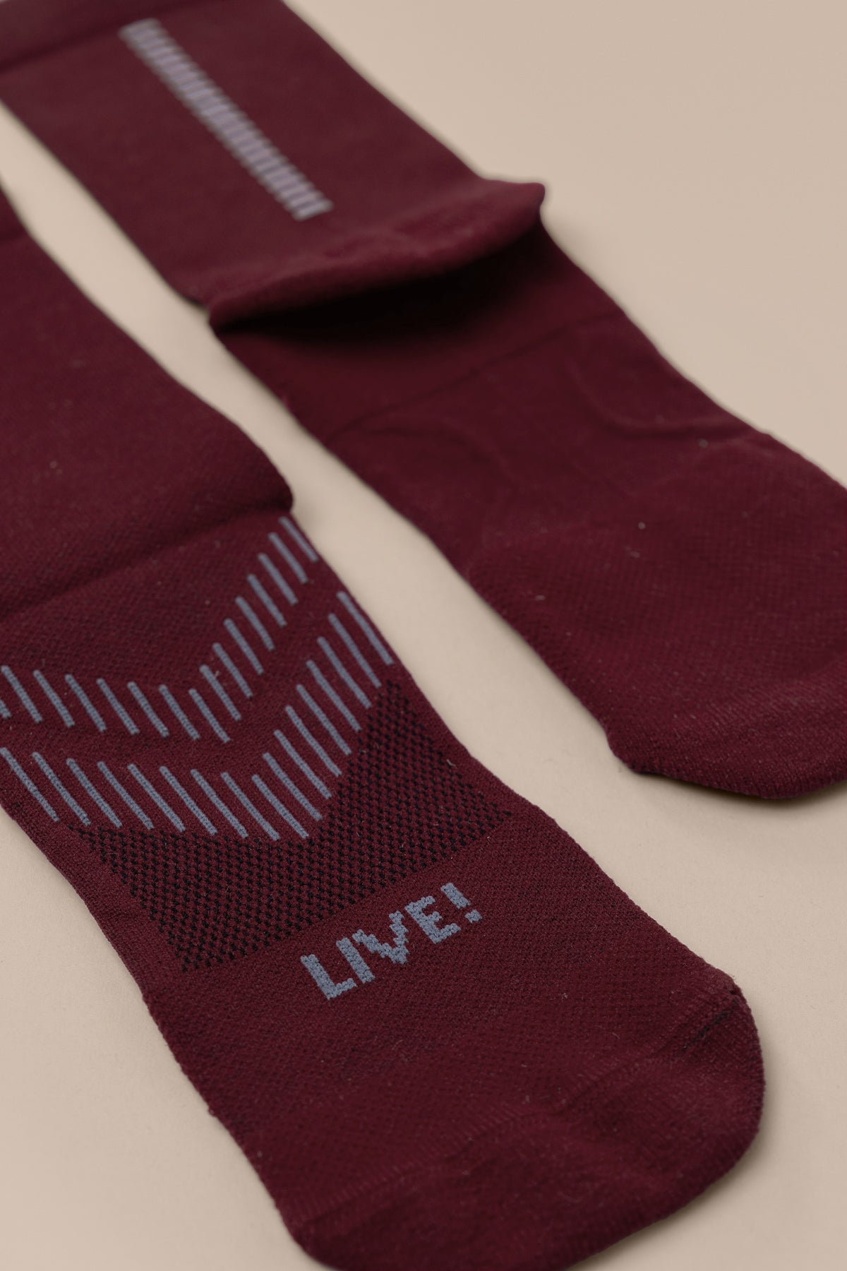 Unisex and engineered for performance, the Run Sock features a 10 cm crew-length design with a reflective detail strategically placed to increase visibility in low-light environments or nighttime workouts. Made with Sensil® BodyFresh yarn, it offers bacteriostatic treatment that helps prevent the growth of odor-causing bacteria. The seamless toe construction minimizes friction, ensuring prolonged comfort during demanding training. The exclusive LIVE! Signature adds a touch of authenticity to the look.