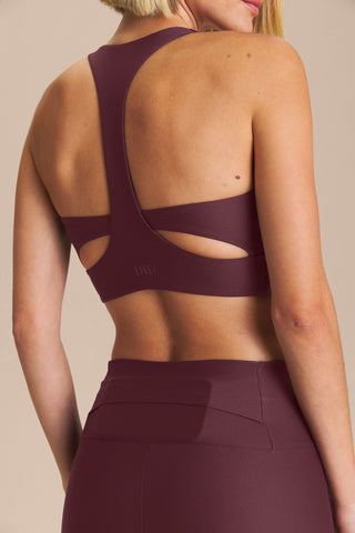 The Top features a V-neckline that enhances the bust and extended racerback with a cut-out detail that promotes freedom of movement and breathability. Wide straps and removable padding, accessible through a small internal opening in the lining, provide versatility and support for medium-impact activities. Made from fabric with recycled LYCRA® EcoMade and SENSIL® EcoCare fibers, it combines technology and durability with lower environmental impact. With UV 50+ protection and Easy Care technology for everyday practicality, it is ideal for outdoor activities. The exclusive LIVE! Signature adds authenticity to the look.