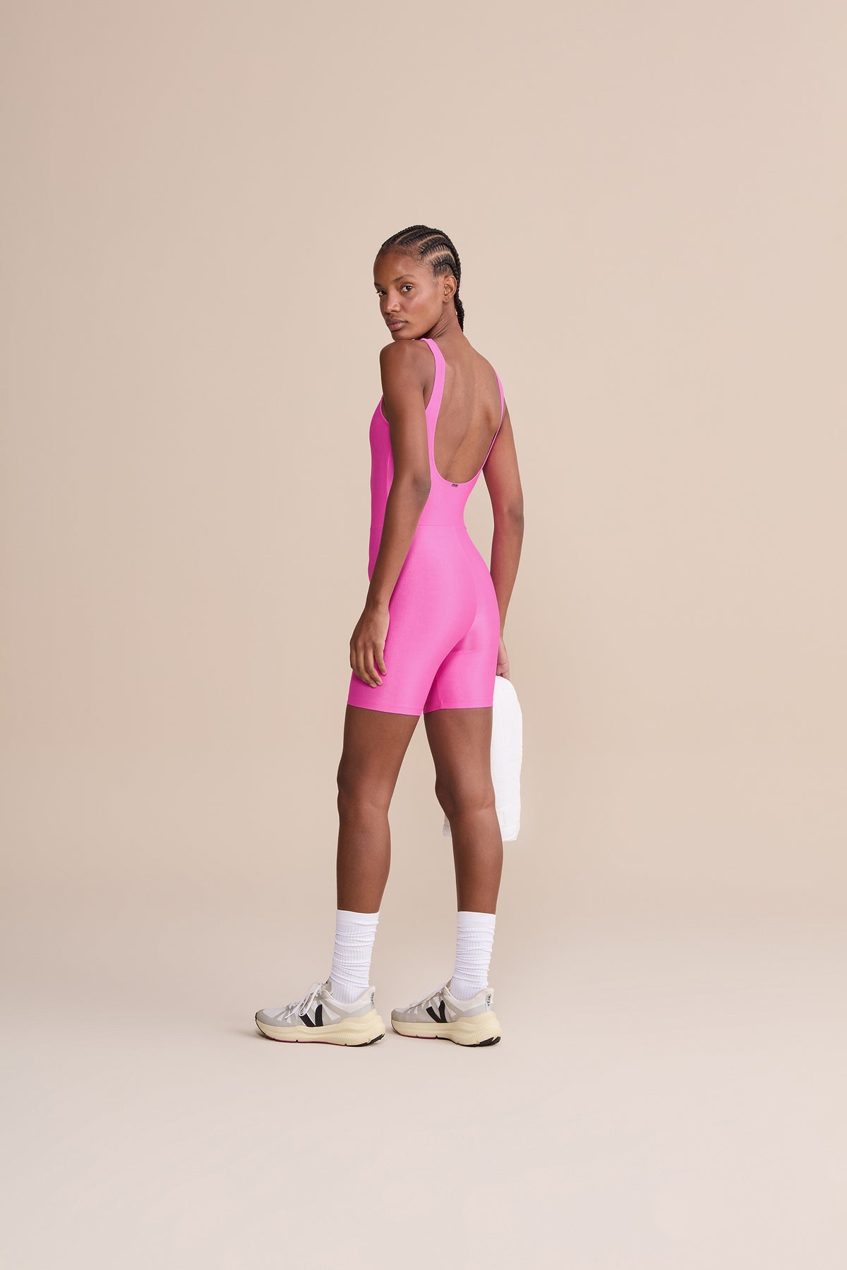 The Allure® Adaptiv Long Shorts Jumpsuit delivers a sleek, modern look with wide straps and a deep back neckline that enhance the silhouette. A removable pad, accessible through a discreet opening, and lining in the upper section ensure better coverage and comfort. Made from Allure® fabric with inclusive LYCRA® ADAPTIV technology, it adapts to the body for maximum comfort. The ribbed texture with a subtle sheen adds sophistication, while high compression supports circulation and ensures zero transparency. Finished with UV 50+ protection, it’s ideal for outdoor activity.