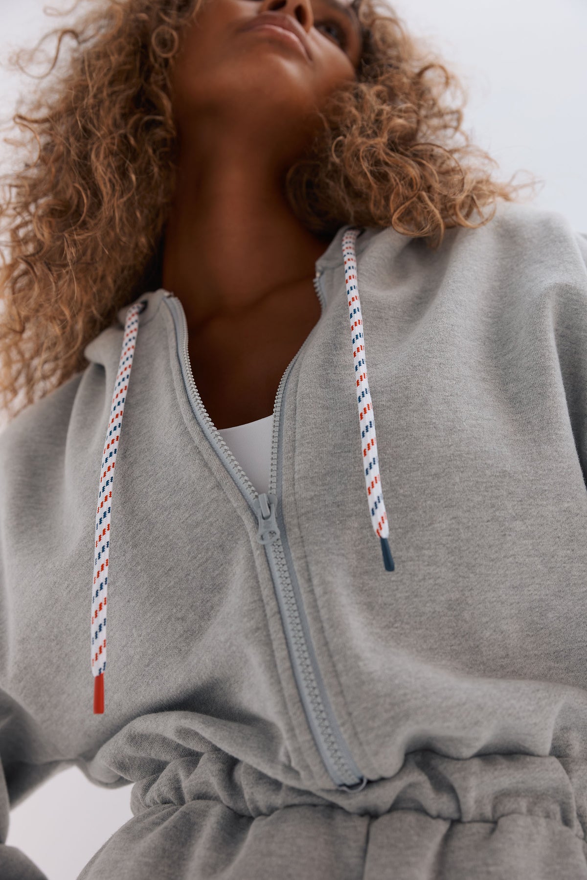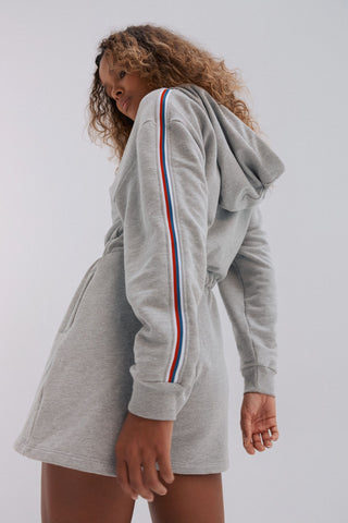 On and off the court, this one-piece is comfy and functional, featuring an adjustable hood and side pockets.