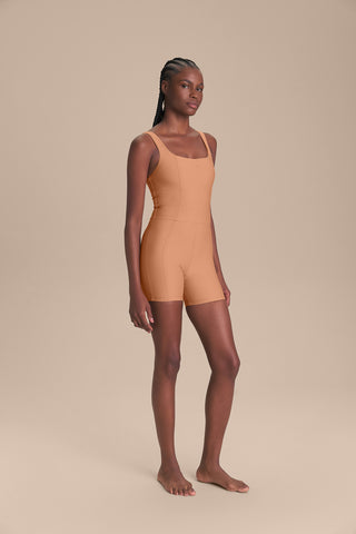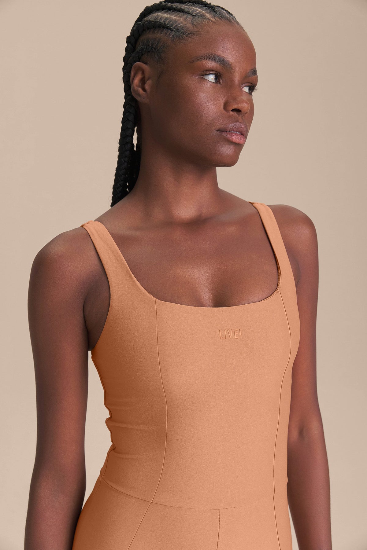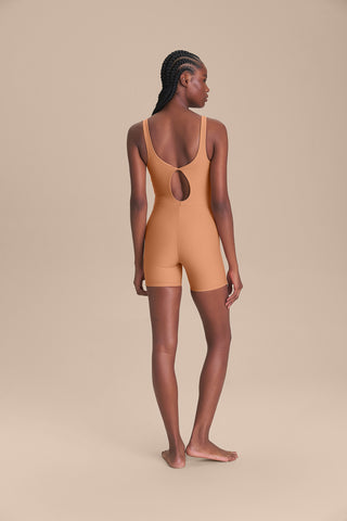 The Twist Shorts Bodysuit features a straight neckline and a twisted cut-out detail at the back, adding breathability and a modern touch. Strategic panels elongate and flatter the silhouette, while the ergonomic gusset enhances fit and freedom of movement. Made from medium-compression fabric with a matte texture and soft touch, it includes UV 50+ protection, making it ideal for outdoor activities. The exclusive LIVE! Signature adds an authentic finishing touch. For added comfort, the lighter color options come with a lined gusset for zero transparency.