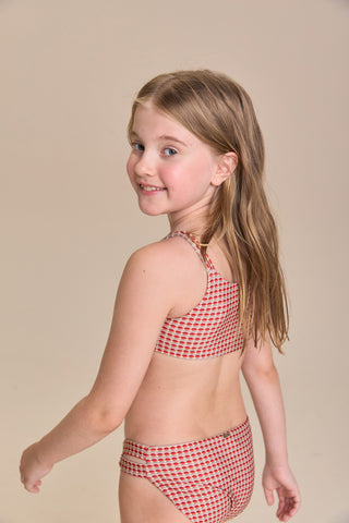 This kids' bikini set is designed to match the adult version, ensuring style and harmony for the whole family on sunny days!