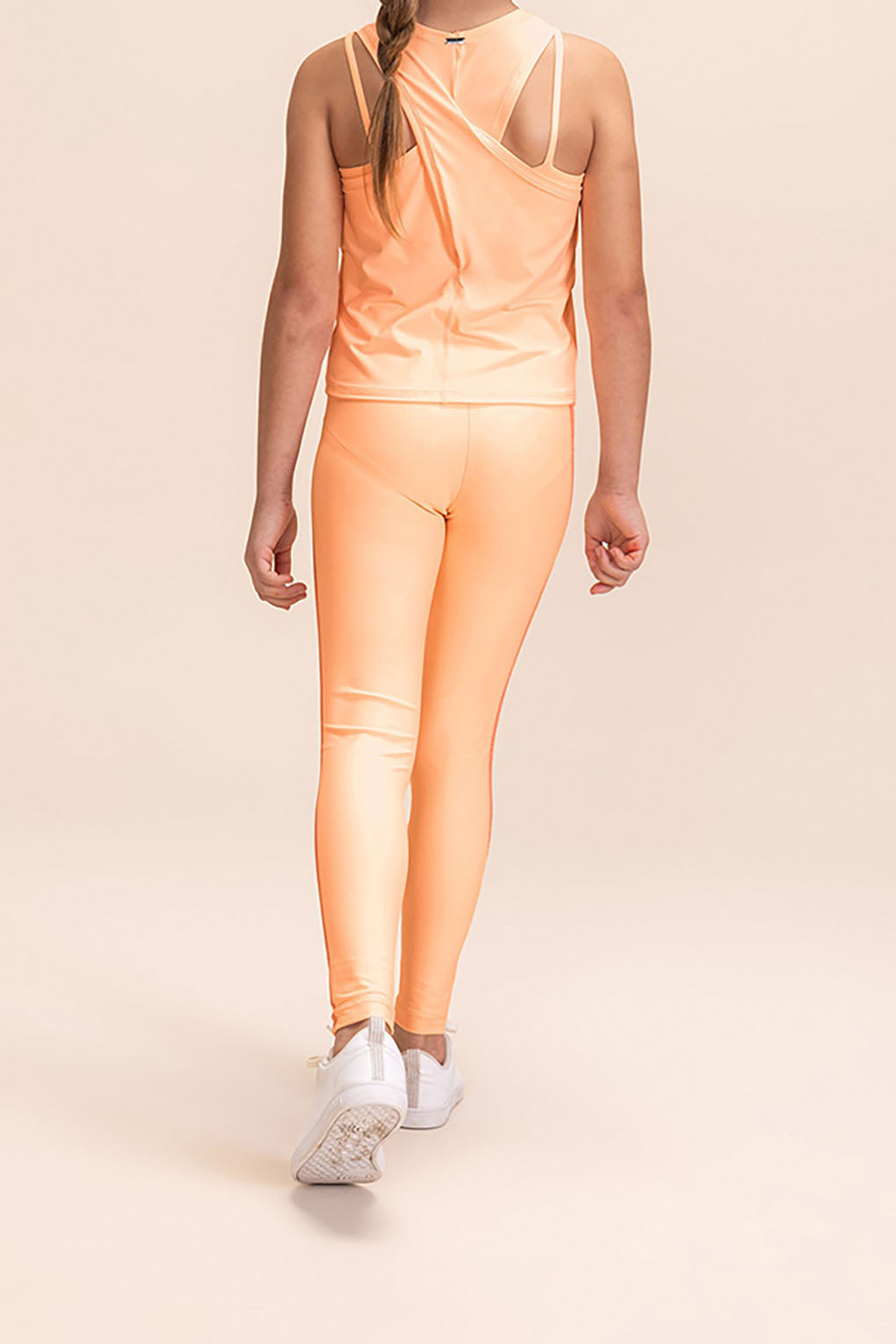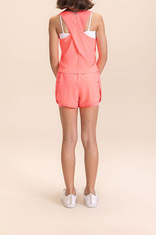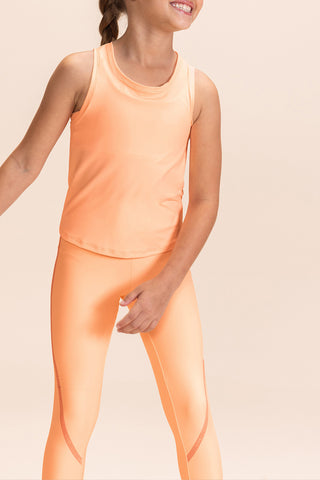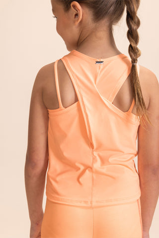 Kids' tank top with crossover back in soft-touch fabric with excellent drape.