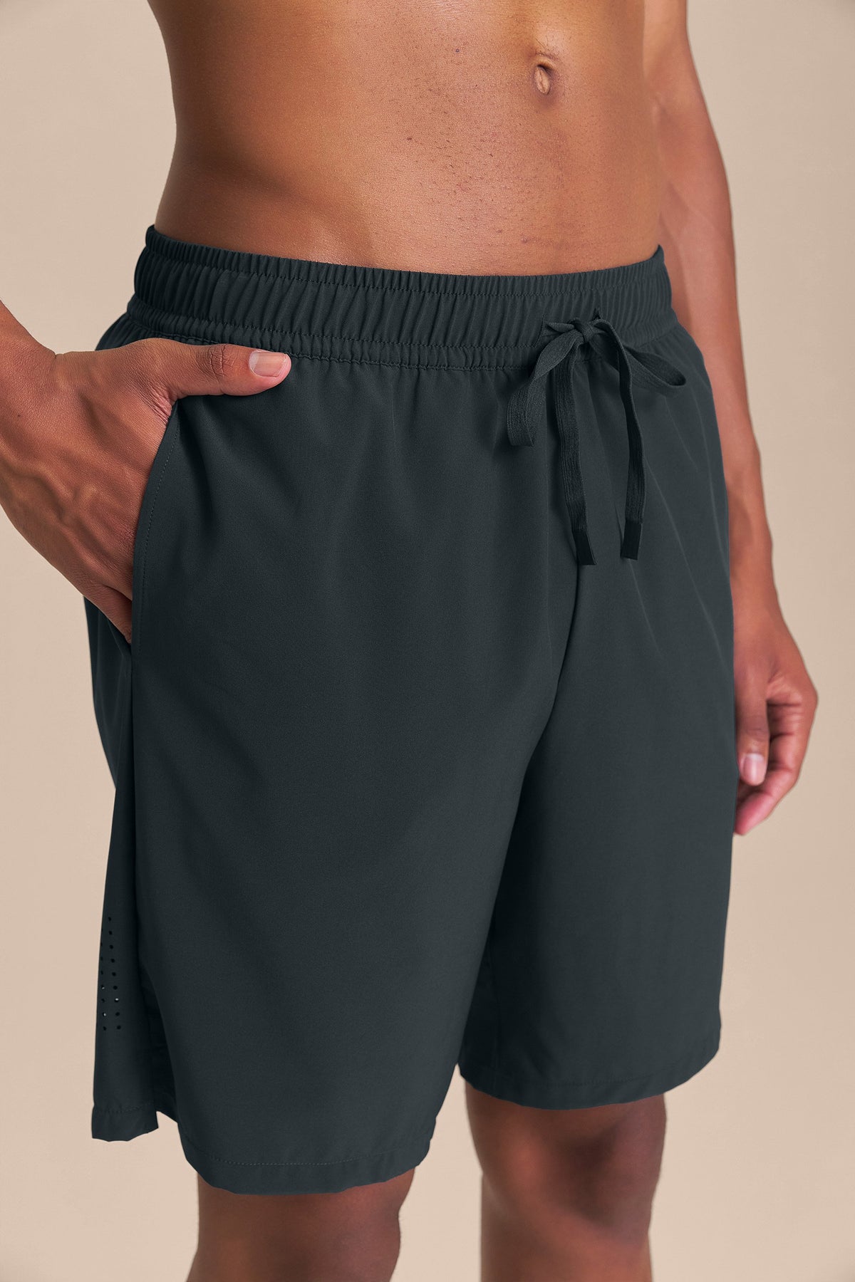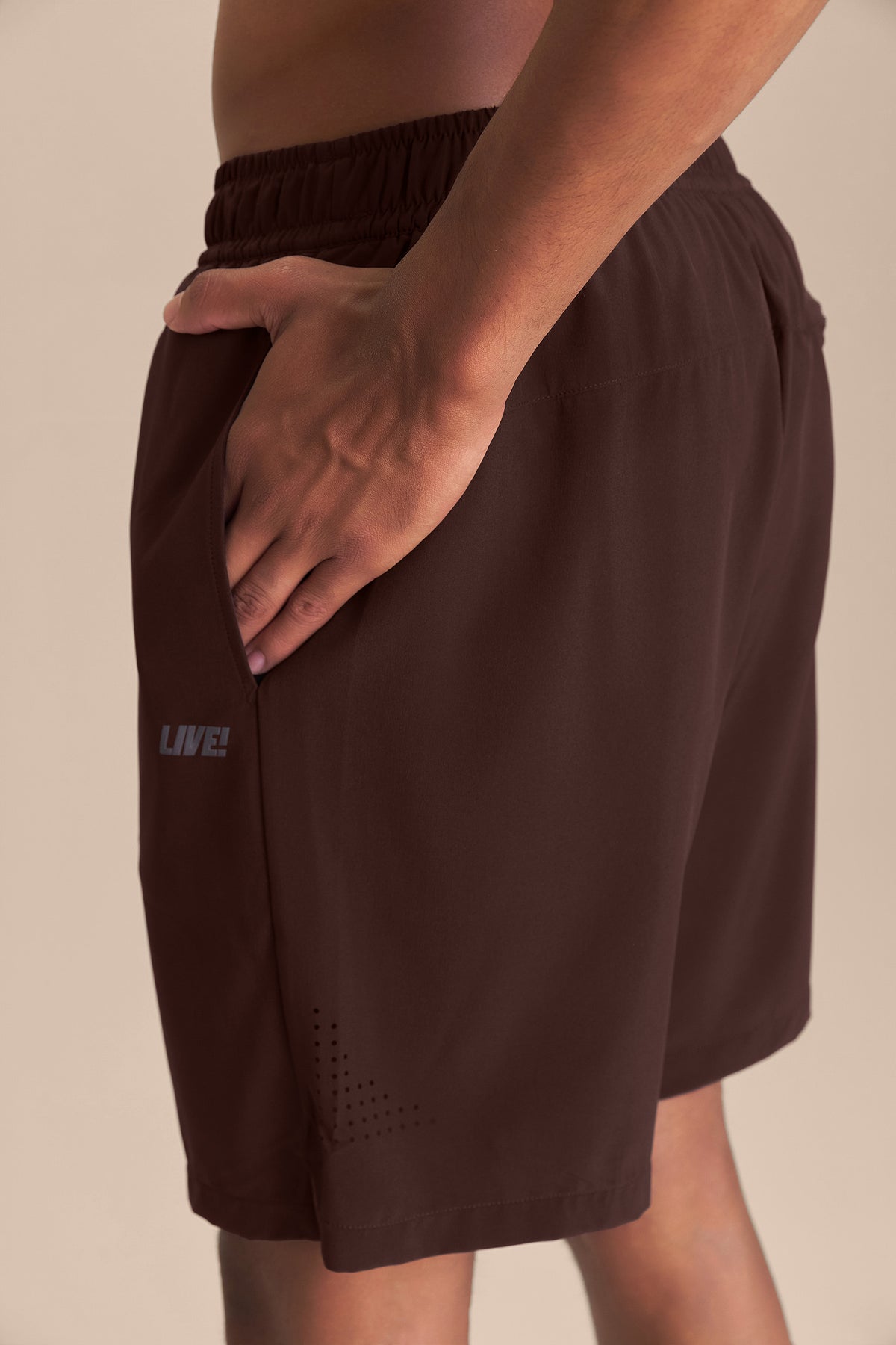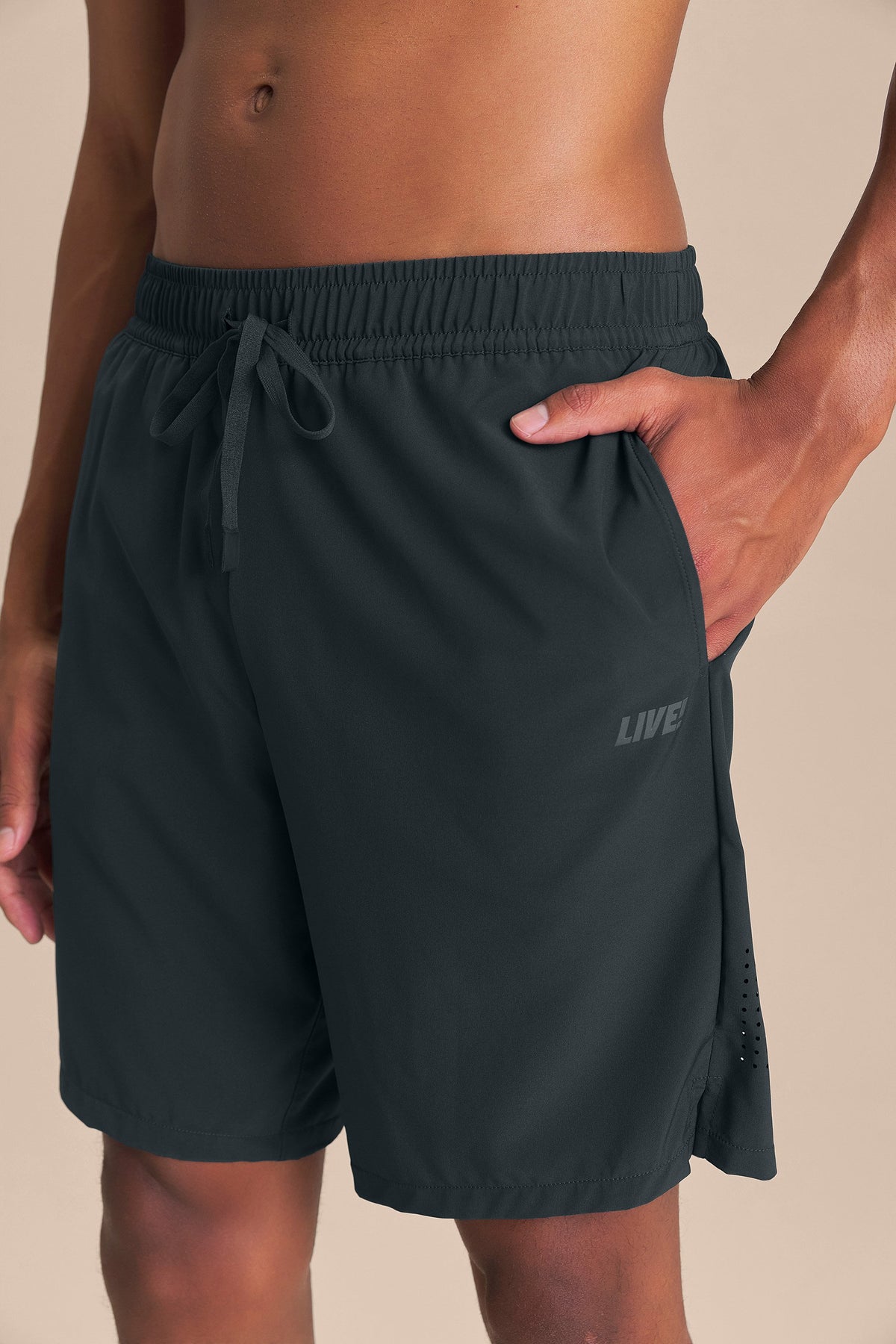 The Move 8'' Shorts feature a classic fit with a drawstring waistband that provides a precise and comfortable fit. Designed with two side pockets, a back zip pocket, and an additional key pocket in the inner liner, they offer practicality for storing essentials. The laser-cut detail on the back enhances ventilation, while the anatomical gusset improves fit and provides freedom of movement. Made from fabric with Quick Dry technology, which aids moisture absorption, and Easy Care technology, which simplifies daily maintenance. The exclusive LIVE! Signature adds a touch of authenticity to the look.