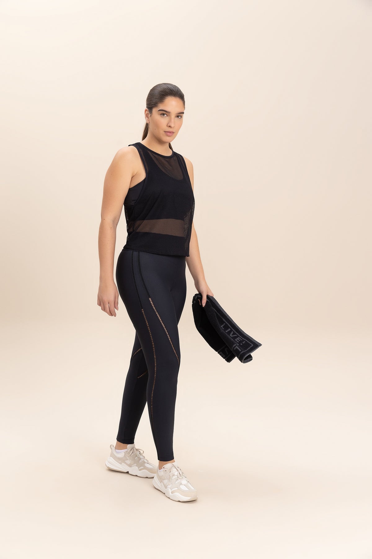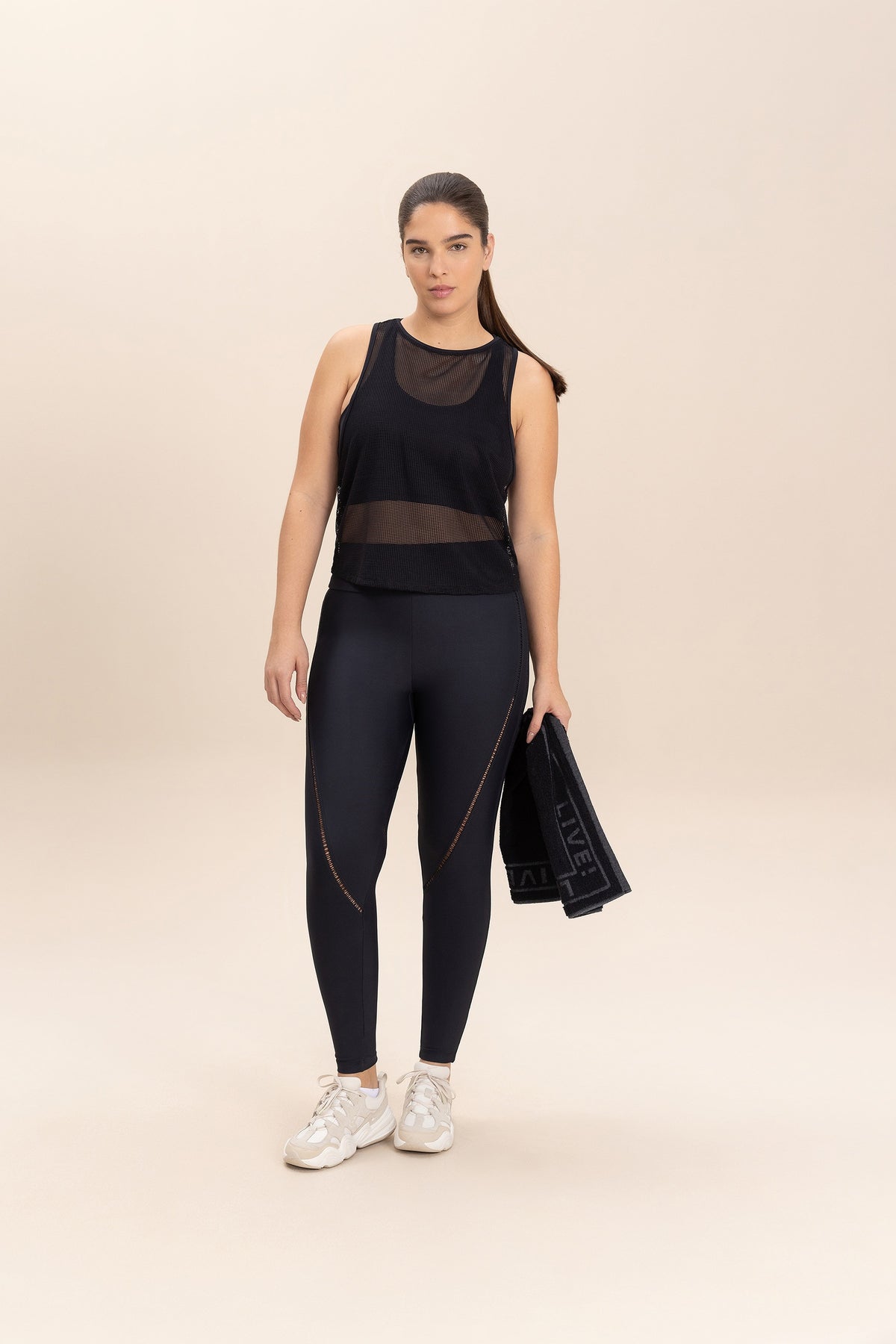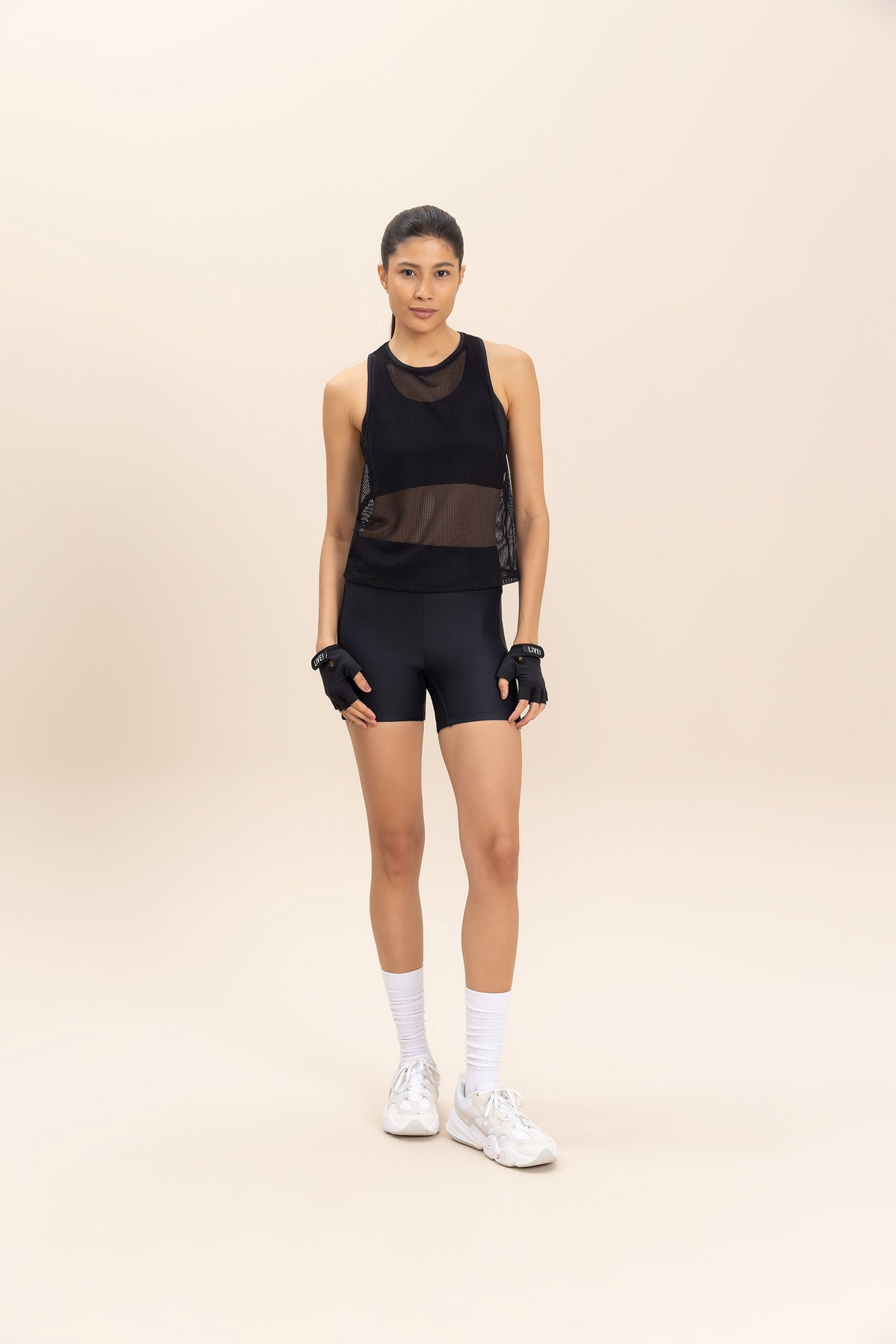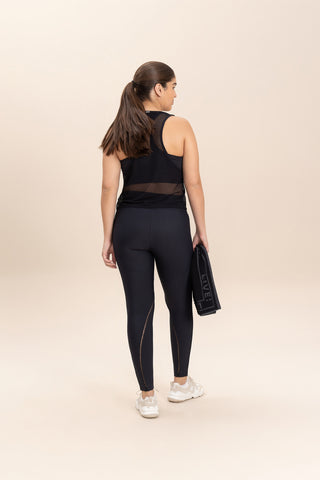 The tank top features a slightly loose fit around the body and a racerback neckline that enhances the shoulders and scapula, providing comfort during activities. Ideal for your pre- or post-workout routines. Made from Tech Bio Mesh fabric, it offers excellent breathability with a lightweight, slightly transparent, soft, and cool feel, perfect for sports activities.