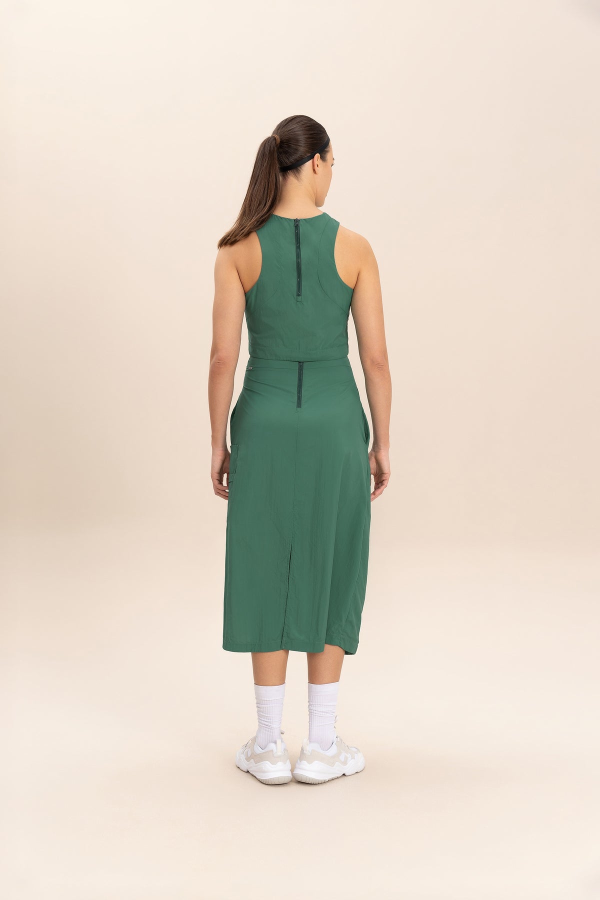 It has a back zipper closure for easy wear.