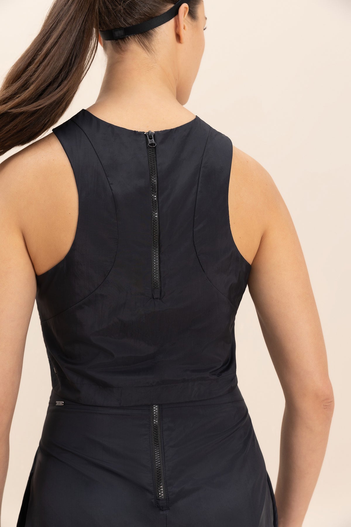 This cropped tank top features anatomical cutouts that enhance your shape!