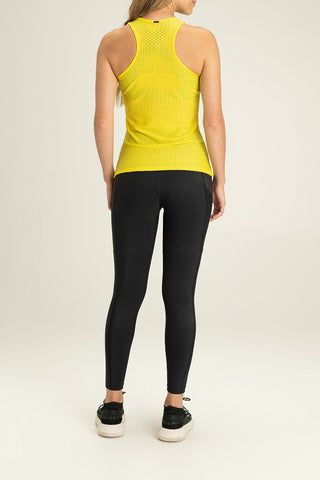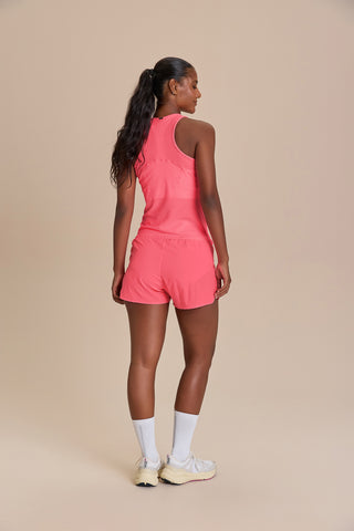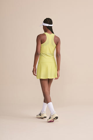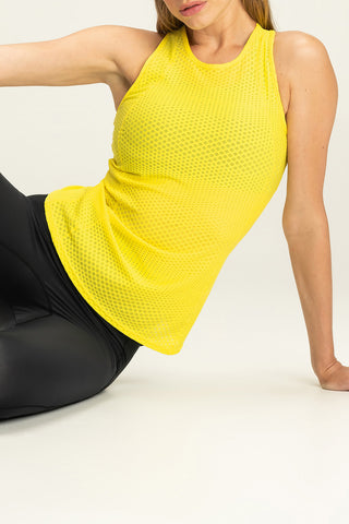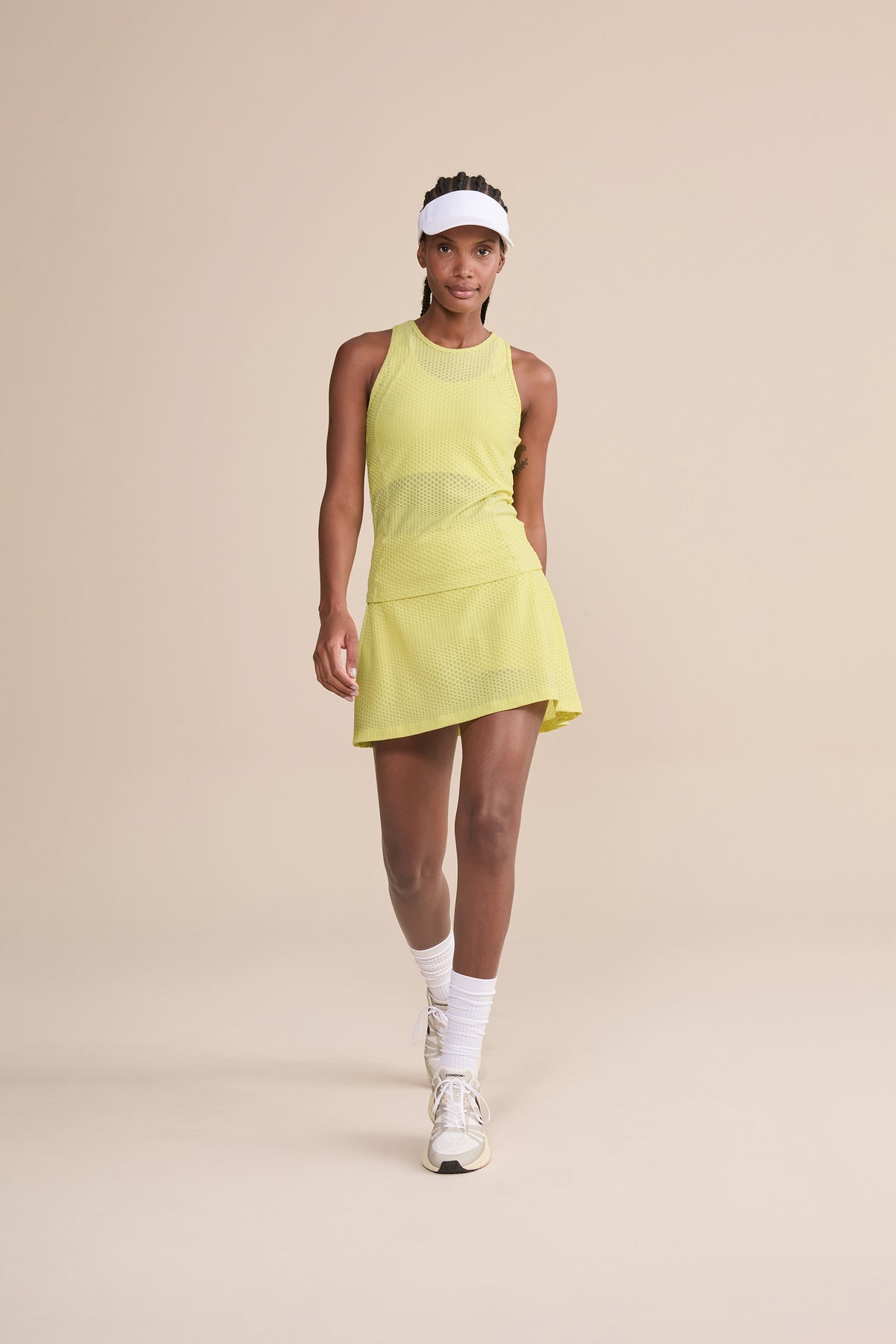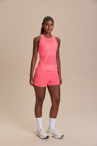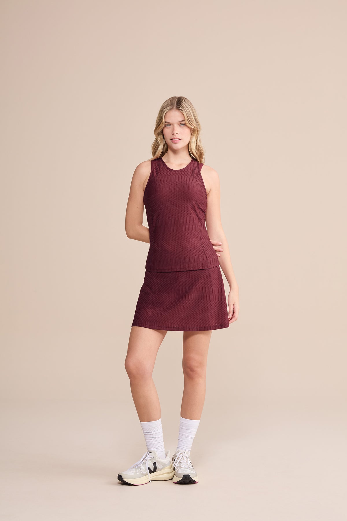Lightweight performance tank designed for comfort and versatility during light to moderate workouts. Features an anatomical design with a racerback neckline and a lightly body-skimming fit, supported by strategic seam placement to enhance freedom of movement. The textured fabric surface improves breathability during training, while Quick Dry technology helps keep the body dry. Easy Care properties support low-maintenance, everyday wear.