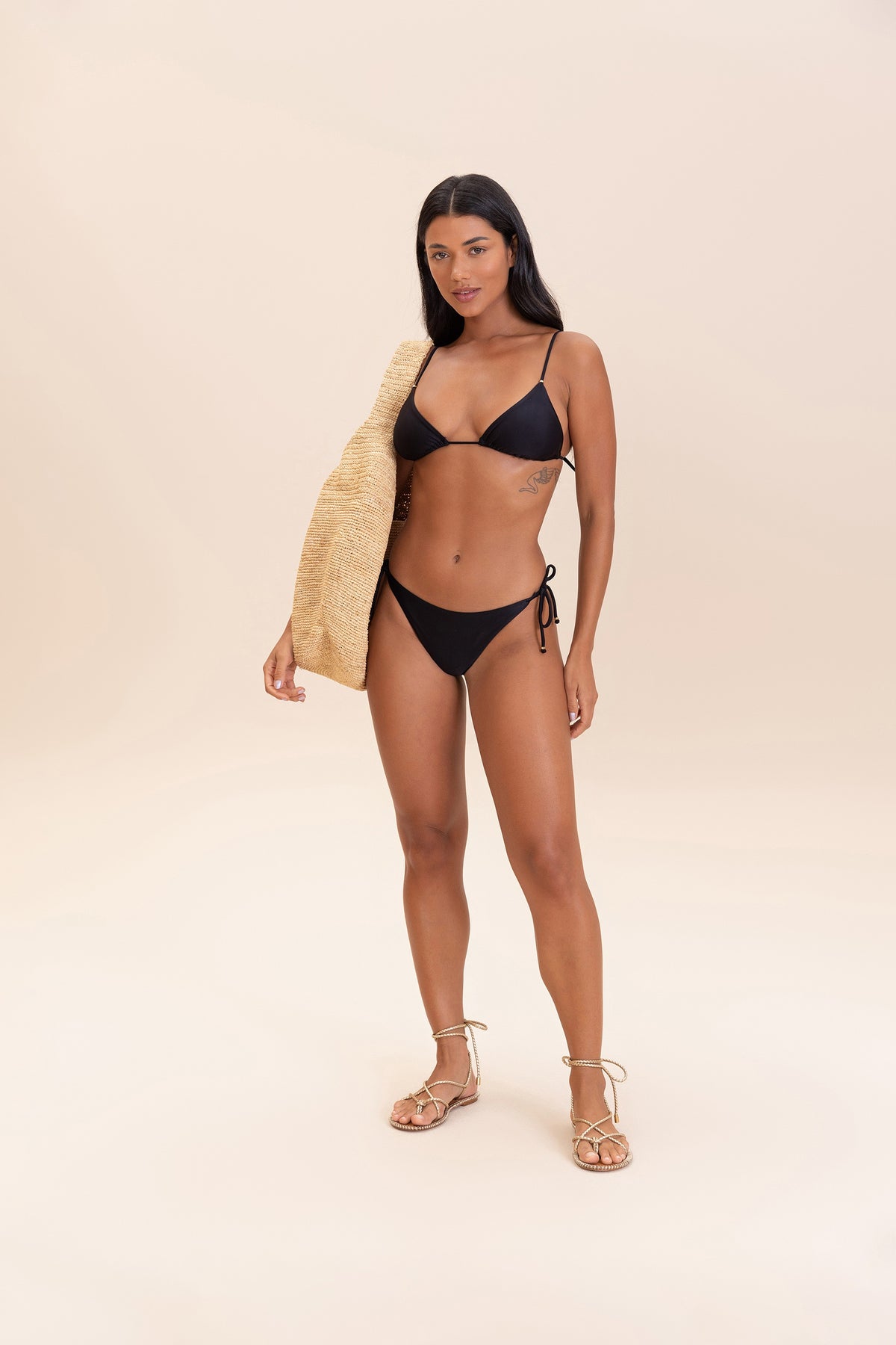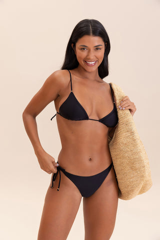 The triangle top is a classic and timeless piece. Its adjustable straps for different body types can be tied in various ways, perfect for sunbathing.