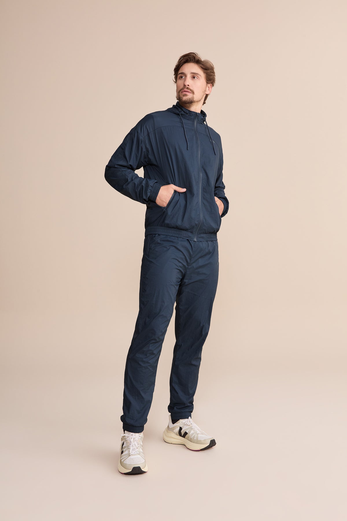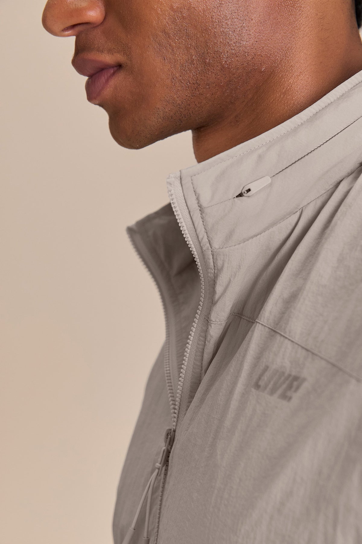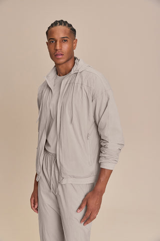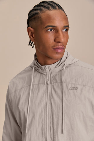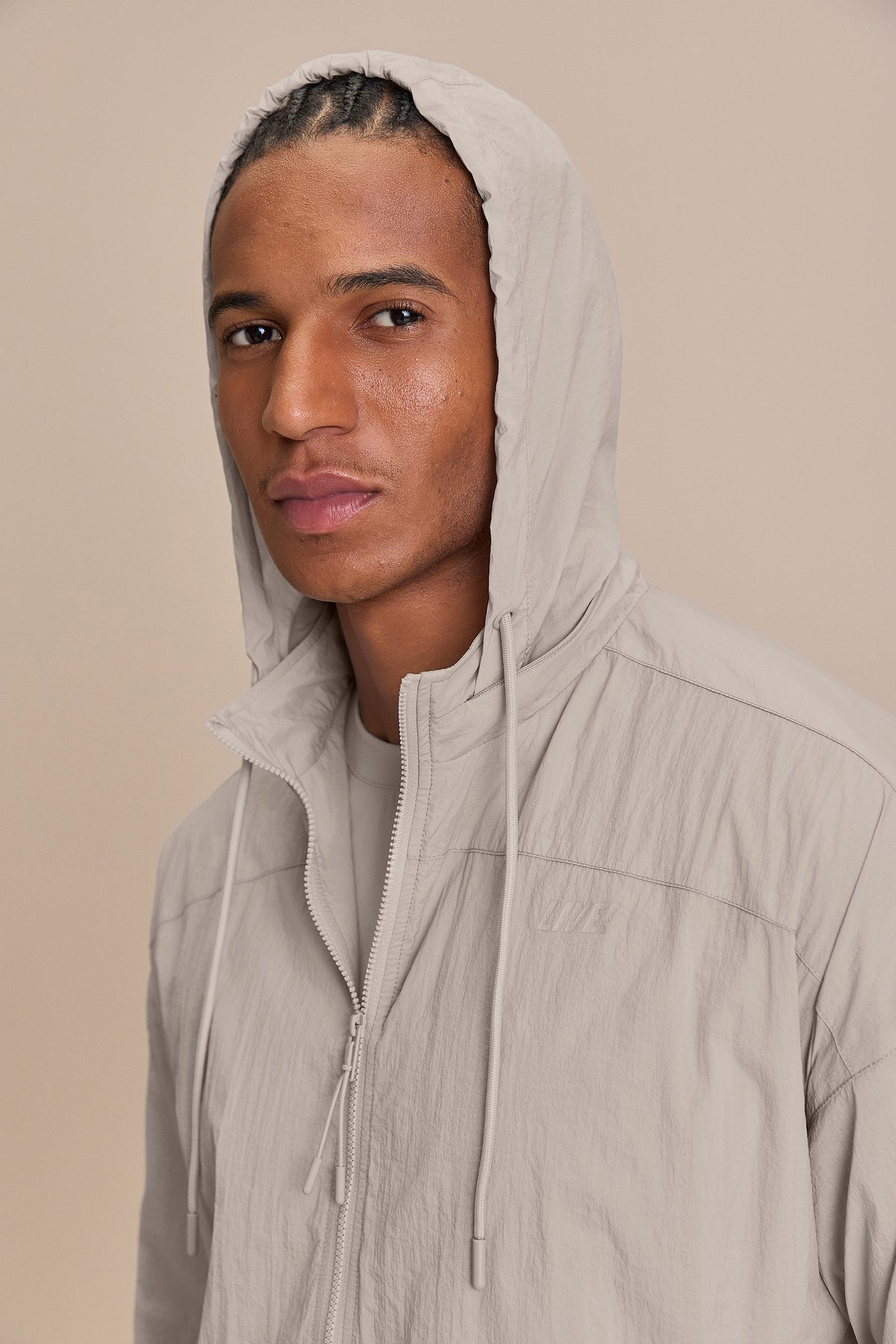 Men’s lightweight training jacket designed to combine everyday functionality with a clean, modern look. Features an adjustable hood that can be stored inside the high collar through a concealed zipper, offering versatility across changing conditions. Strategic paneling adds a contemporary silhouette, while a full-length front zipper and zippered pockets provide practical storage. Reflective detailing at the back enhances visibility in low-light environments. Crafted from a water-resistant Quick Dry fabric to help keep the body dry and comfortable throughout the day.