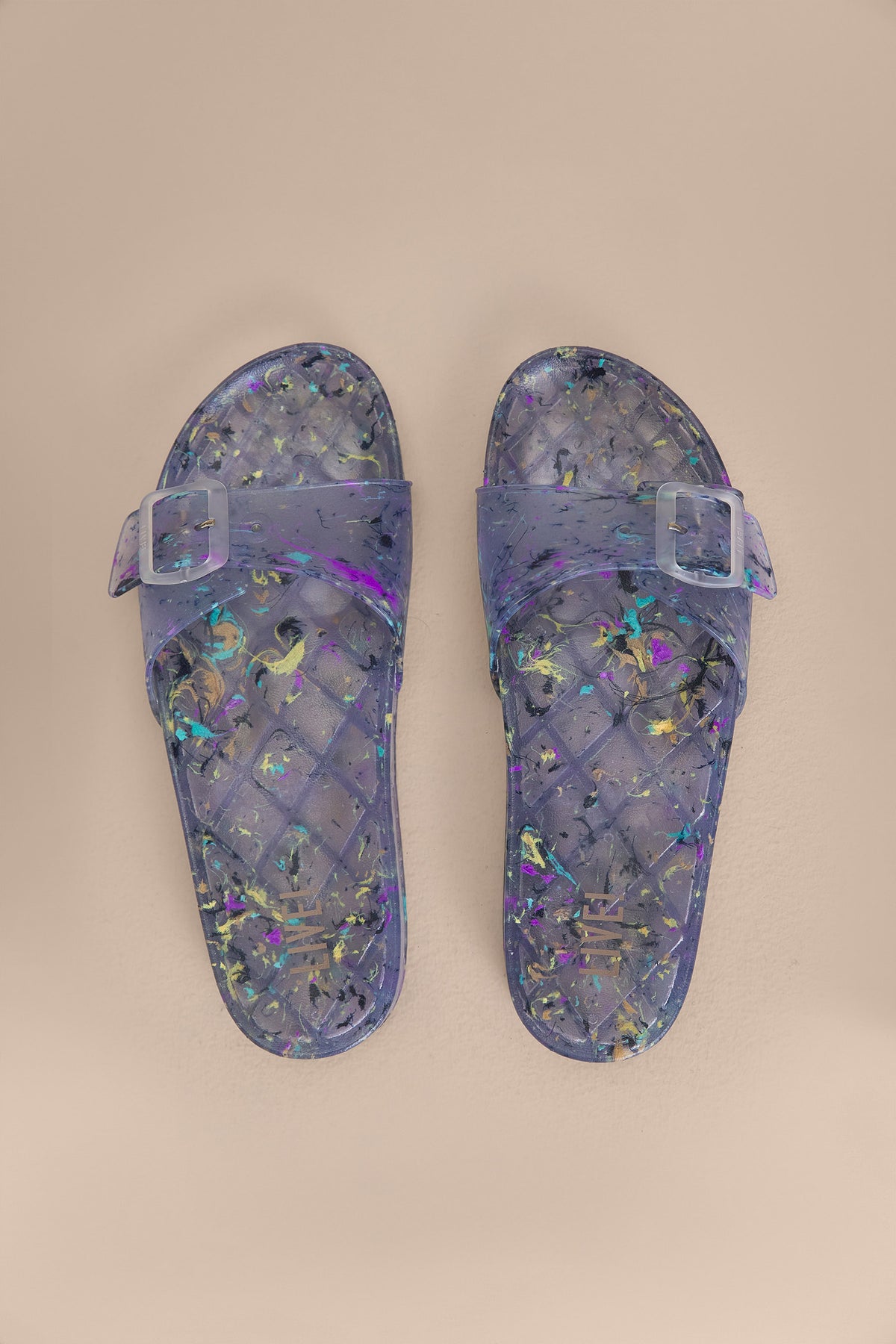 Sole and strap made with repurposed LIVE! textile materials, reinforcing our commitment to more sustainable practices.