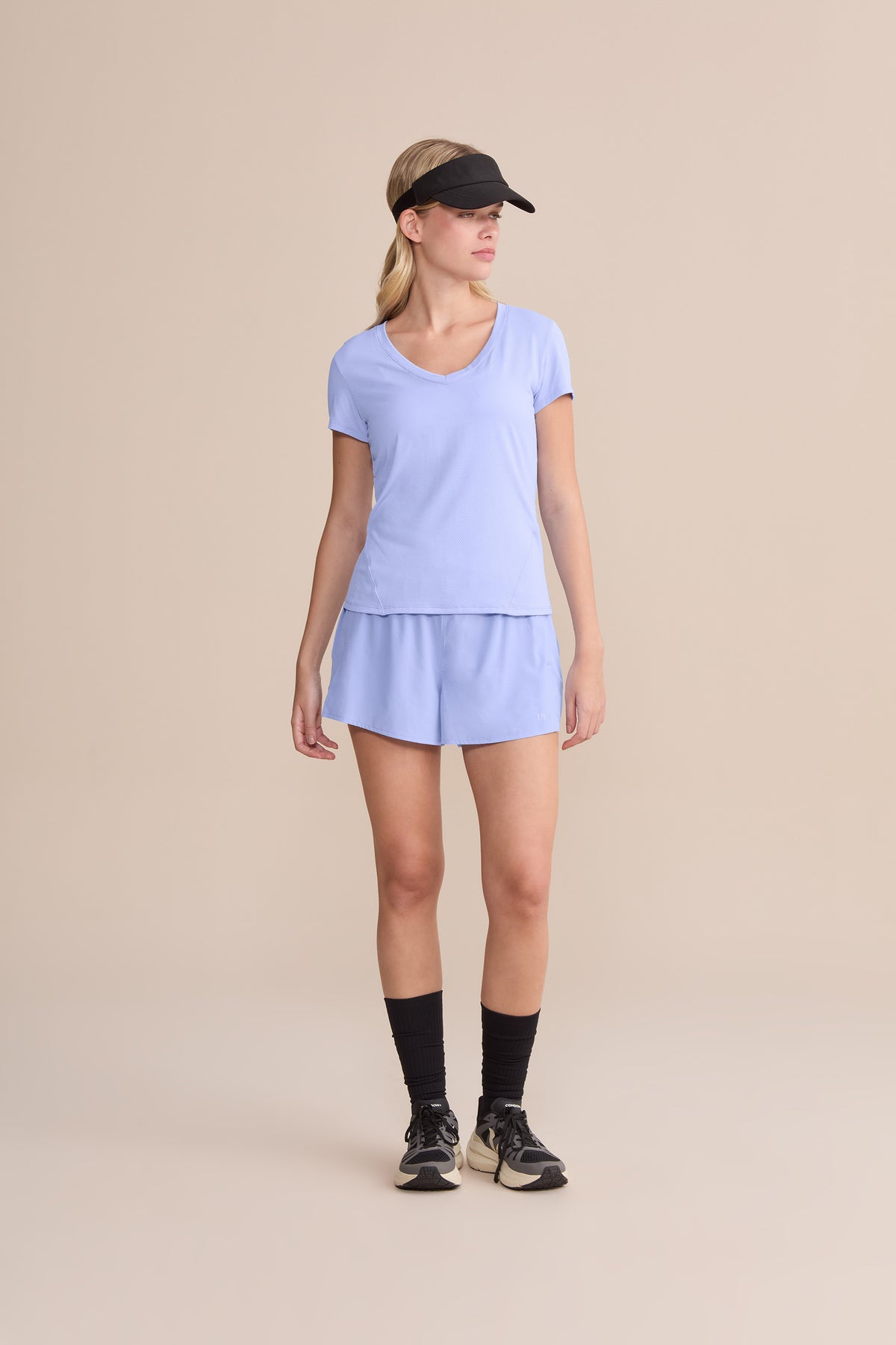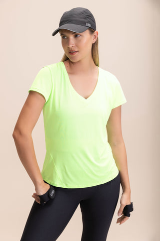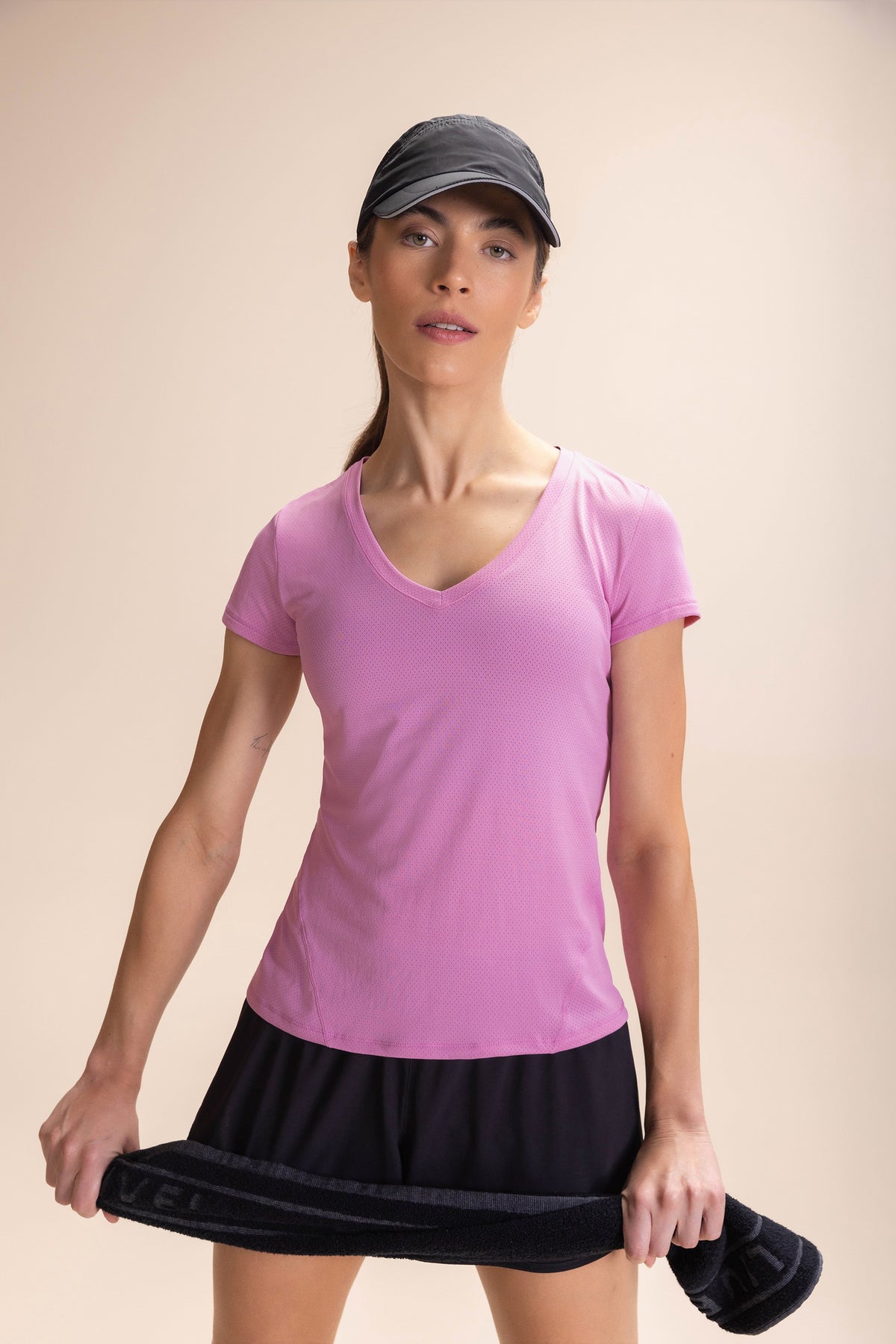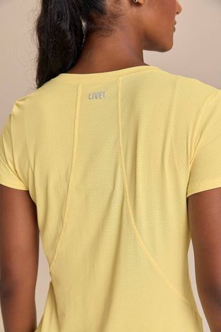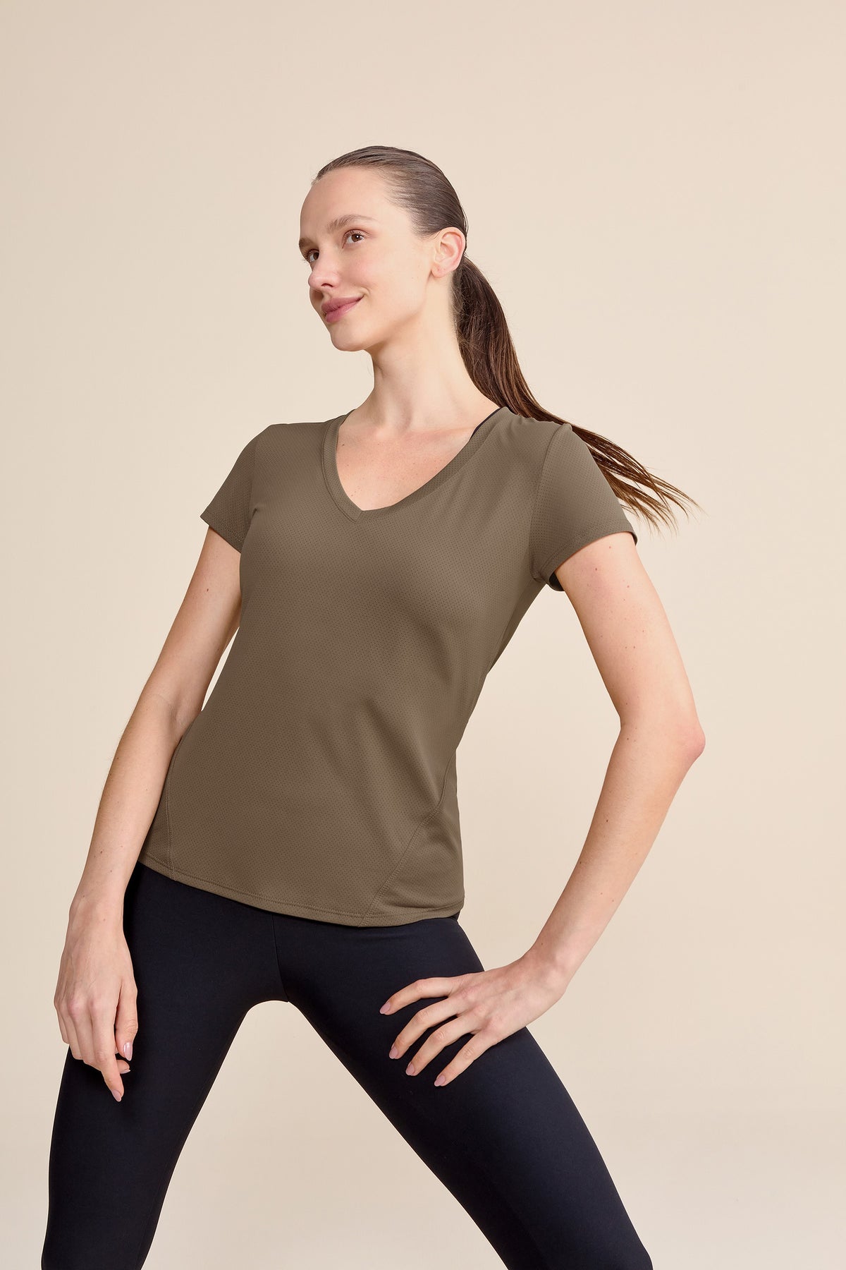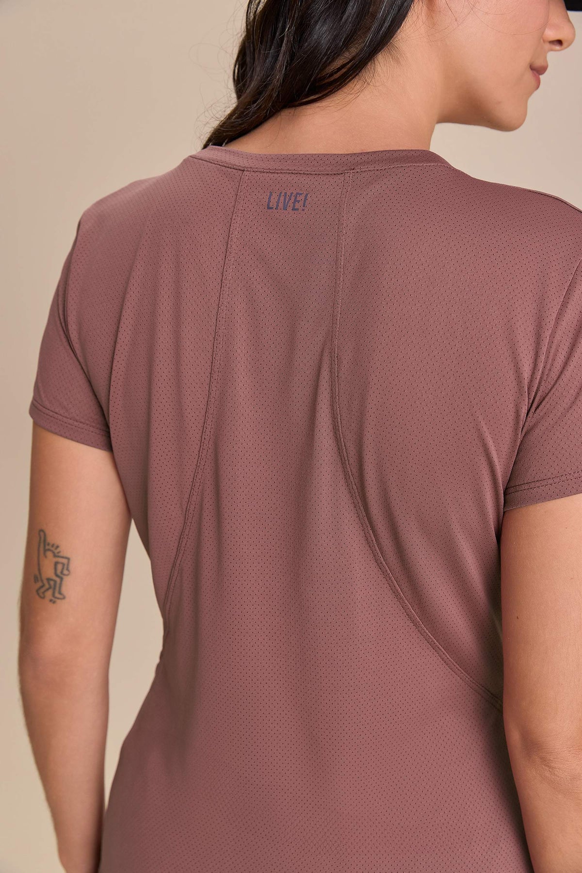 A versatile workout tee designed to balance comfort and performance. Features a V-neckline and a slightly relaxed fit with strategic paneling for an ergonomic drape that supports movement and enhances performance. Crafted in a micro-perforated fabric with a soft hand feel to promote airflow and freshness during activity. Finished with Quick Dry technology to help manage moisture and Easy Care for everyday practicality. Completed with the Signature LIVE! detail at the back.