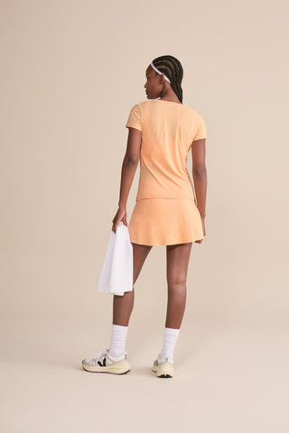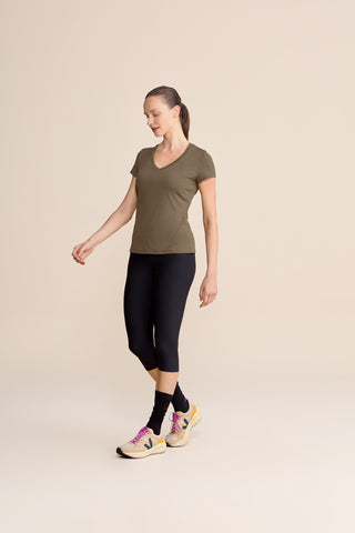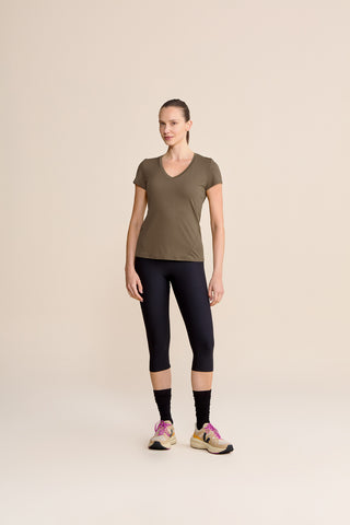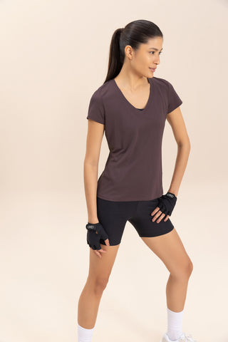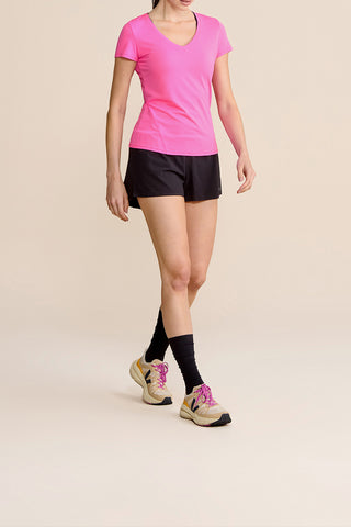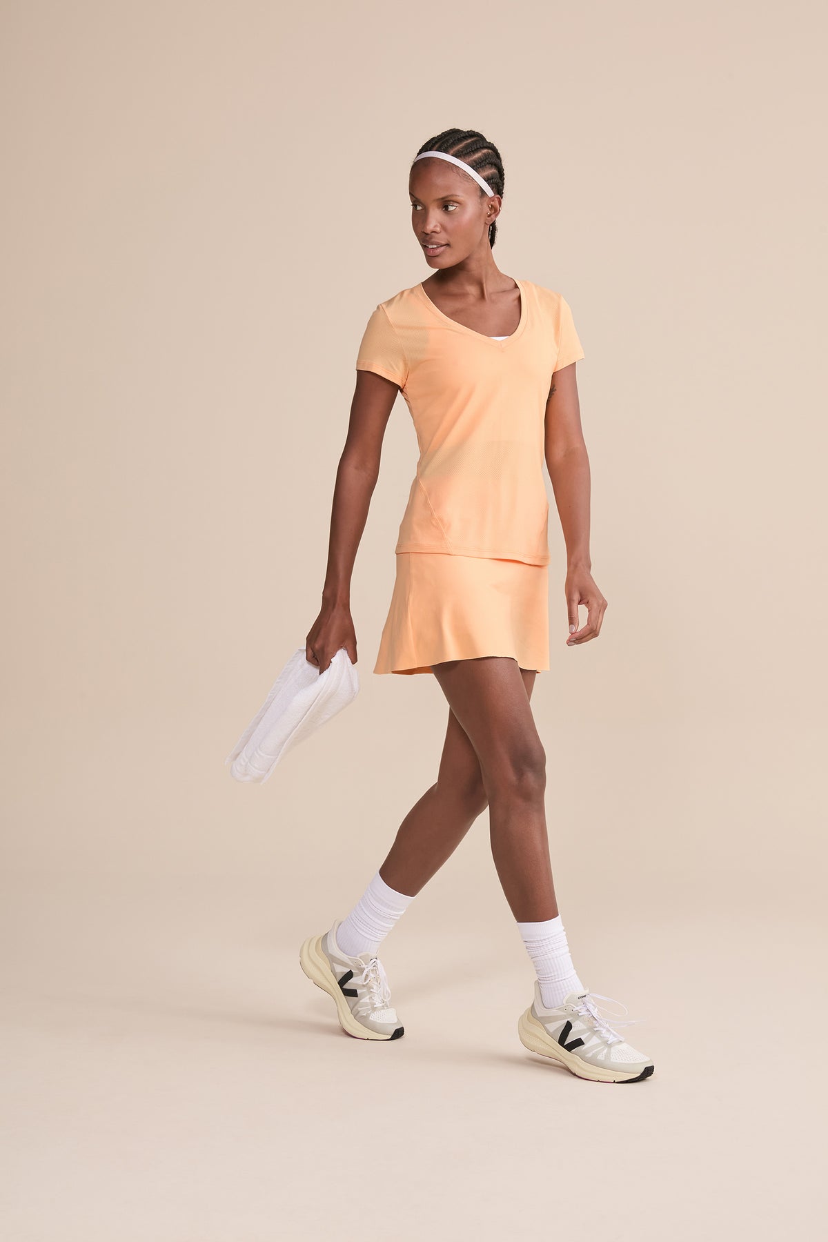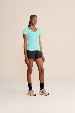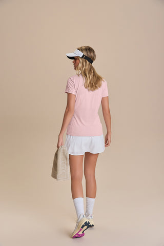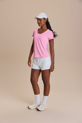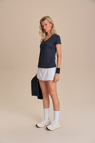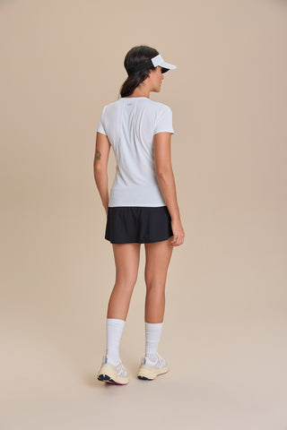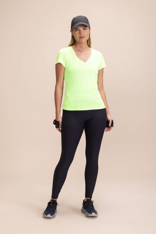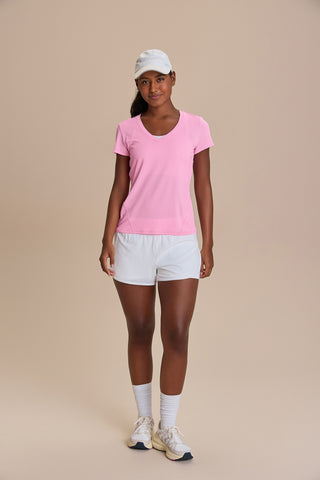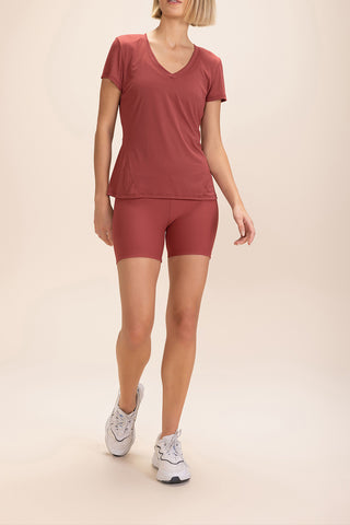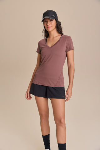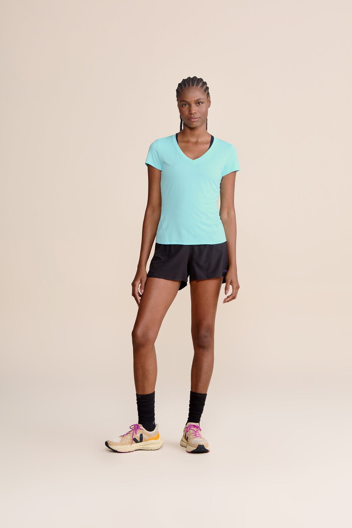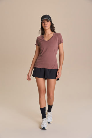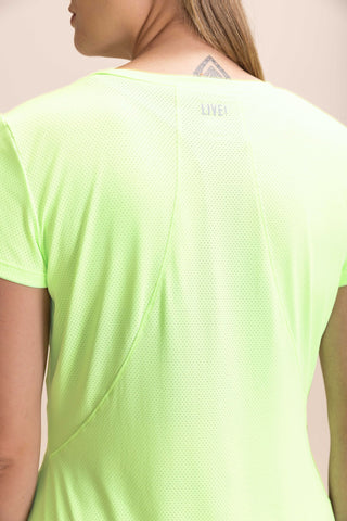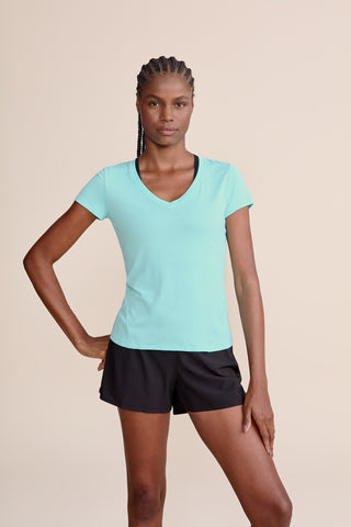 A versatile workout tee designed to balance comfort and performance. Features a V-neckline and a slightly relaxed fit with strategic paneling for an ergonomic drape that supports movement and enhances performance. Crafted in a micro-perforated fabric with a soft hand feel to promote airflow and freshness during activity. Finished with Quick Dry technology to help manage moisture and Easy Care for everyday practicality. Completed with the Signature LIVE! detail at the back.