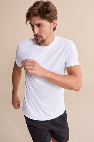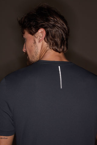 Short-sleeved shirt for daily wear with reflective details on the back for added safety during physical activities. Designed with high-performance technology to enhance athletic performance. Made with soft and lightweight Bio Stretch fabric for comfort and a great fit during your workouts.