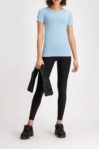 The Round-Neck T-Shirt features a comfortable, relaxed fit, ensuring freedom of movement. The Signature LIVE! on the front adds an authentic touch. Crafted from soft, micro-perforated fabric, it provides breathability and freshness, while the Easy Care finish simplifies daily maintenance.