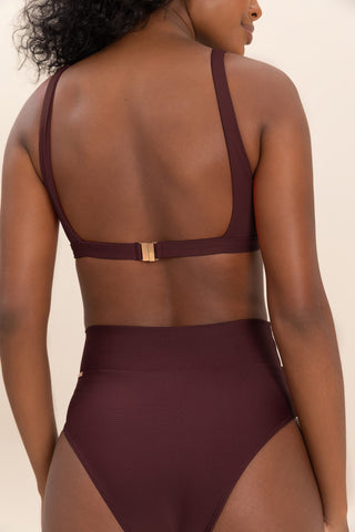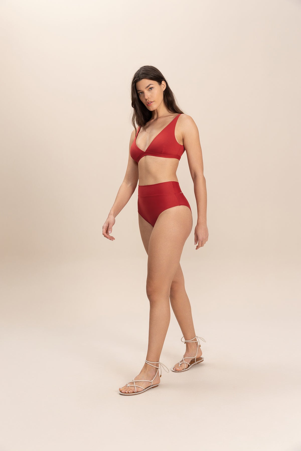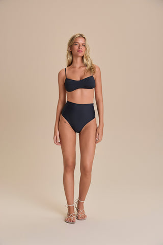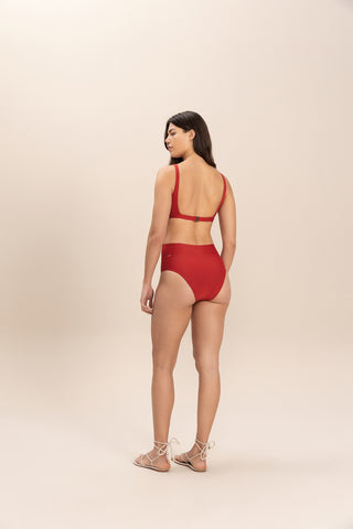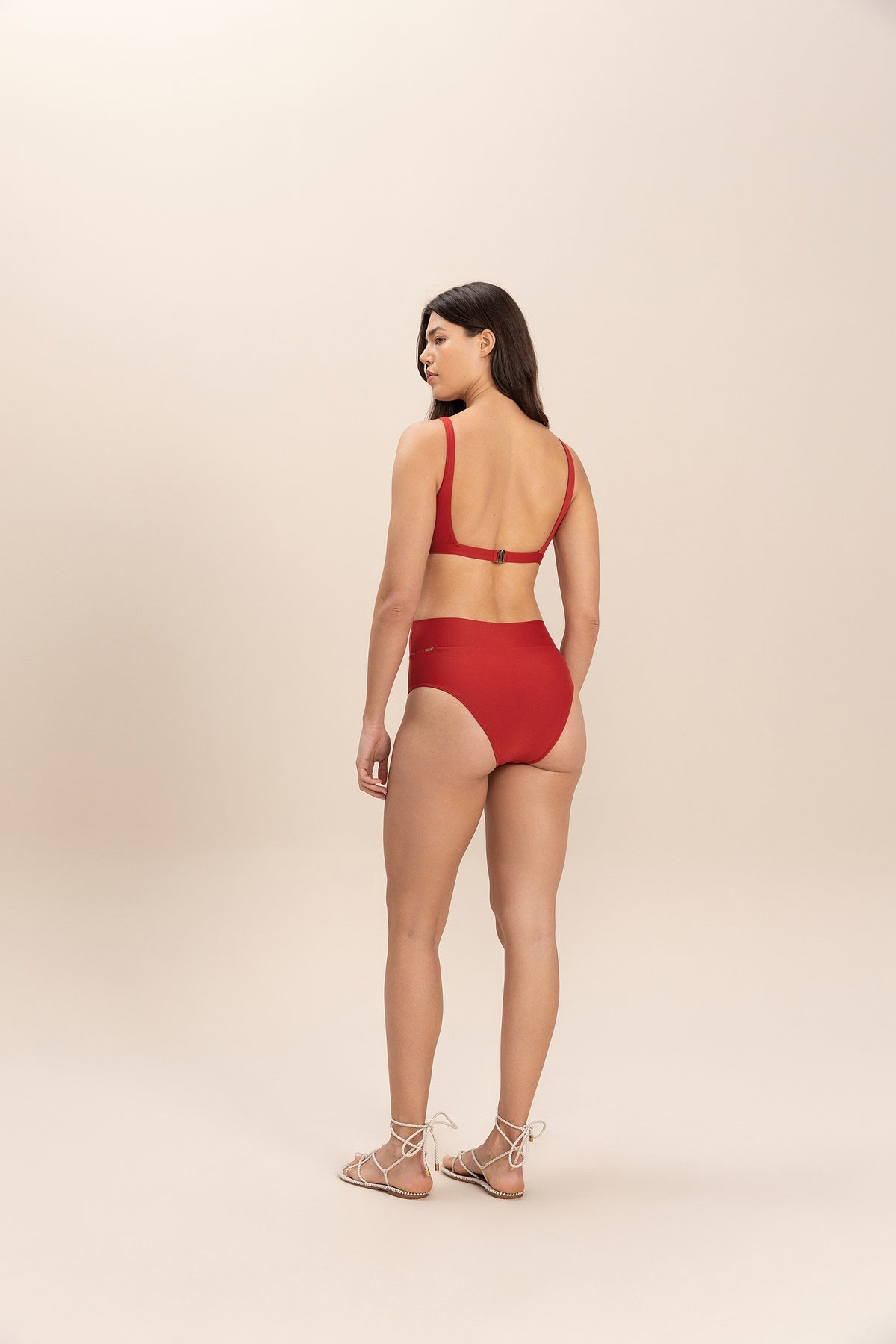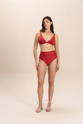 High-rise hot pants swim bottom designed to enhance the silhouette with a refined look. A contoured waistband cut adds visual interest, while a lined construction helps prevent transparency for confident wear. Made from a lightweight, soft-touch fabric, it’s ideal for enjoying the sun with comfort and ease.