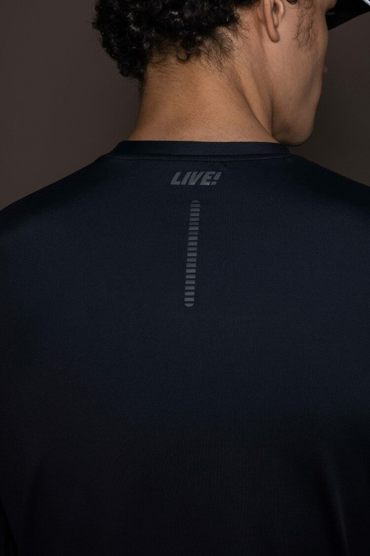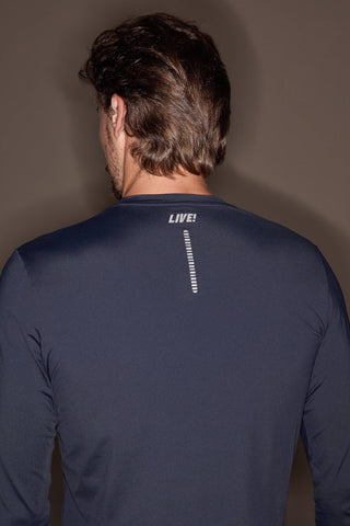 A fitted long-sleeve performance tee designed for intense training and cooler conditions. This streamlined silhouette contours the body without restricting movement, delivering comfort and mobility during high-output workouts. Built with thermal protection and UPF 50+ coverage, it helps maintain comfort during outdoor activity. Finished with a reflective LIVE! signature print at the back to enhance visibility in low-light or nighttime runs.