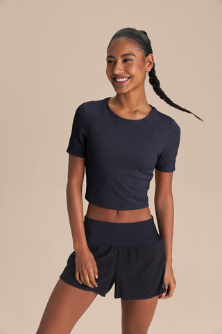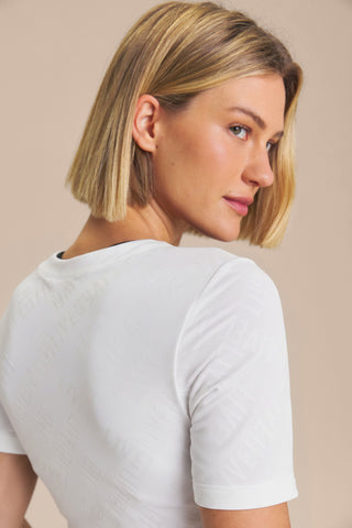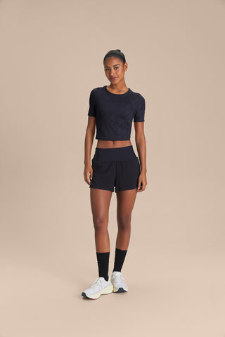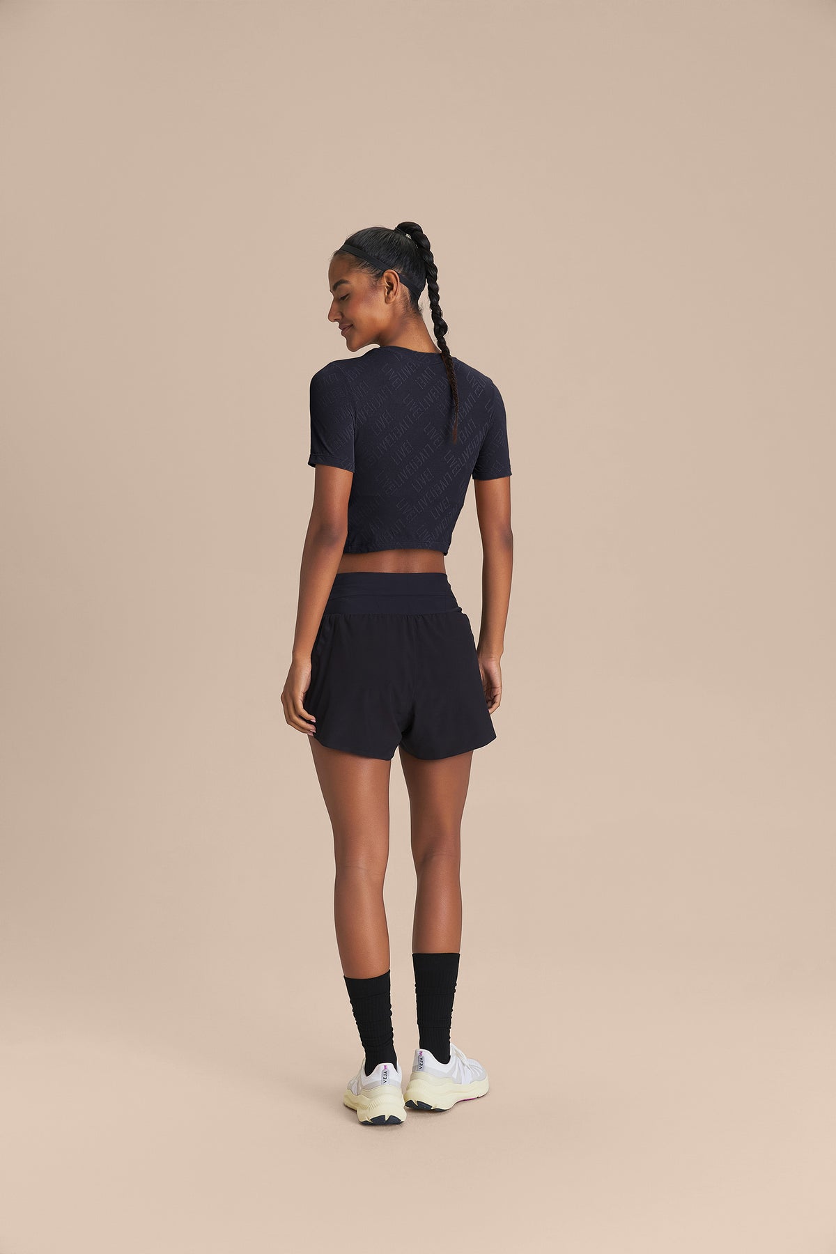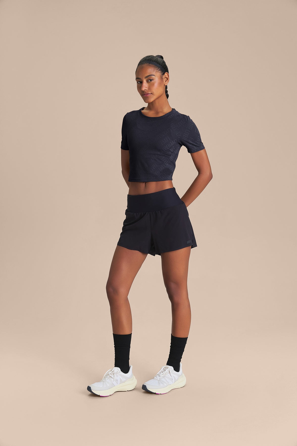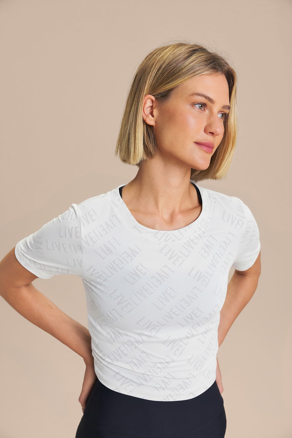 The Cropped T-Shirt features a relaxed fit, offering comfort and freedom of movement during training. The Jacquard construction highlights the exclusive LIVE! Signature in relief, adding a touch of sophistication and authenticity to the look. Made from fabric with an openwork structure and soft touch, it enhances the drape with lightness and subtle transparency, while Quick Dry technology accelerates moisture evaporation and keeps the body dry during wear.