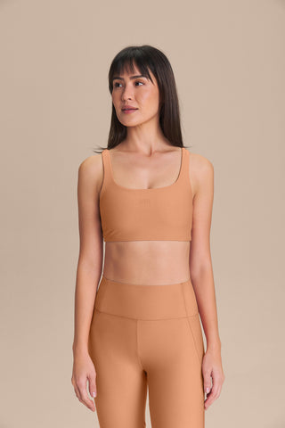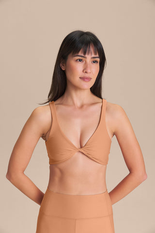 The Twist Sports Bra features a multifunctional design that can be worn front to back, alternating between a square neckline and a twisted detail, delivering versatile style and functionality. Without padding and with wide straps, it provides natural shaping and support for medium-impact activities. Made from matte-textured, soft-touch fabric, it includes UV 50+ protection, ideal for outdoor activities. The exclusive LIVE! Signature adds an authentic finishing touch.