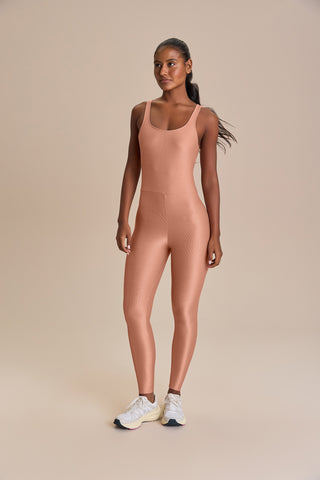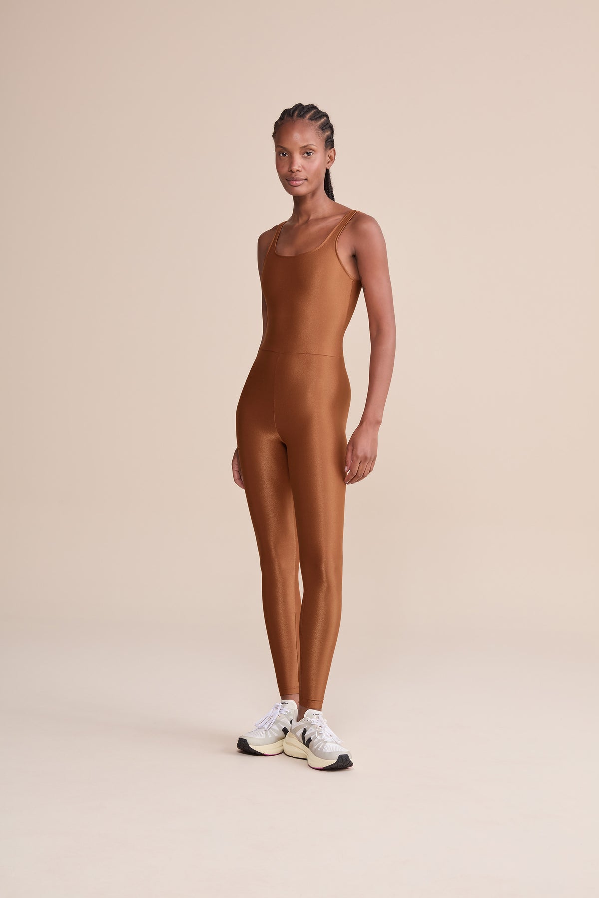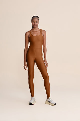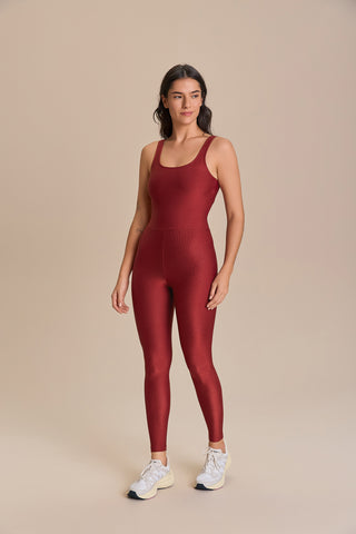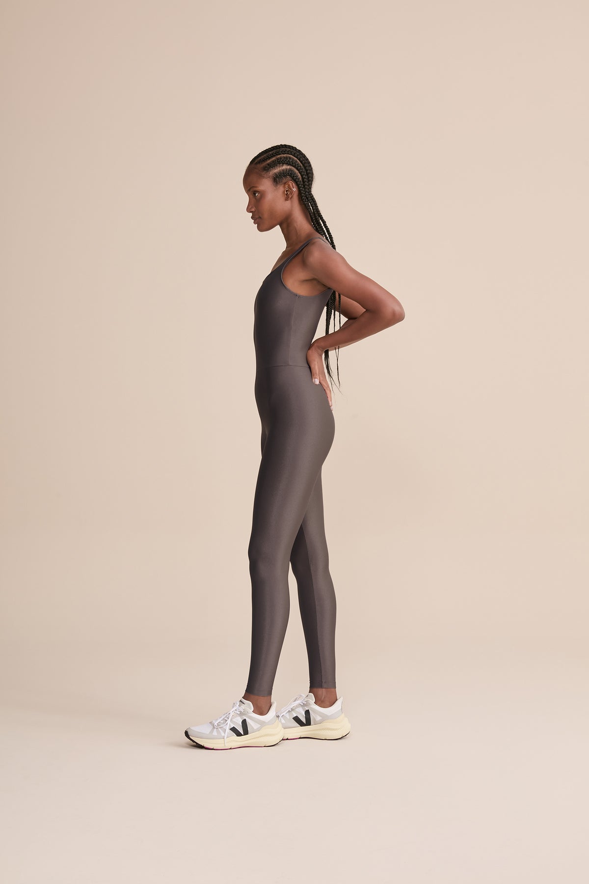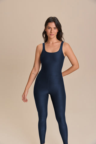 Full-length jumpsuit designed with an elongated, modern silhouette for a refined, sculpting look. Wide straps and a deep back neckline enhance the silhouette, while the lined upper body and removable cups—accessible through a small internal opening—support improved fit and versatility. Crafted in Allure® Adaptiv fabric with inclusive LYCRA® ADAPTIV technology, this style adapts comfortably to the body. The high-compression construction supports circulation, while the ribbed texture with subtle sheen delivers a sophisticated finish with zero transparency. Finished with UV 50+ protection for outdoor activities.