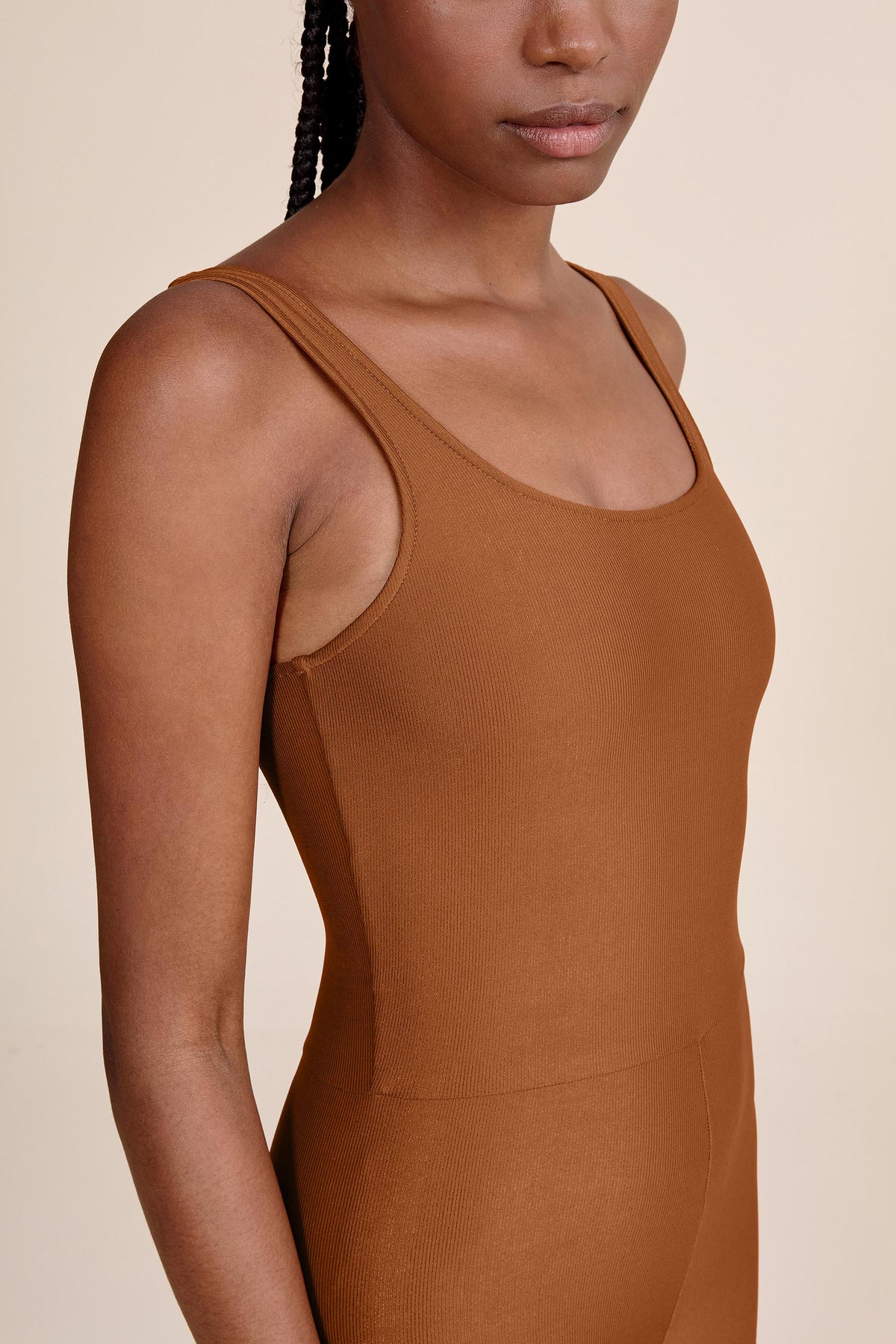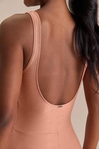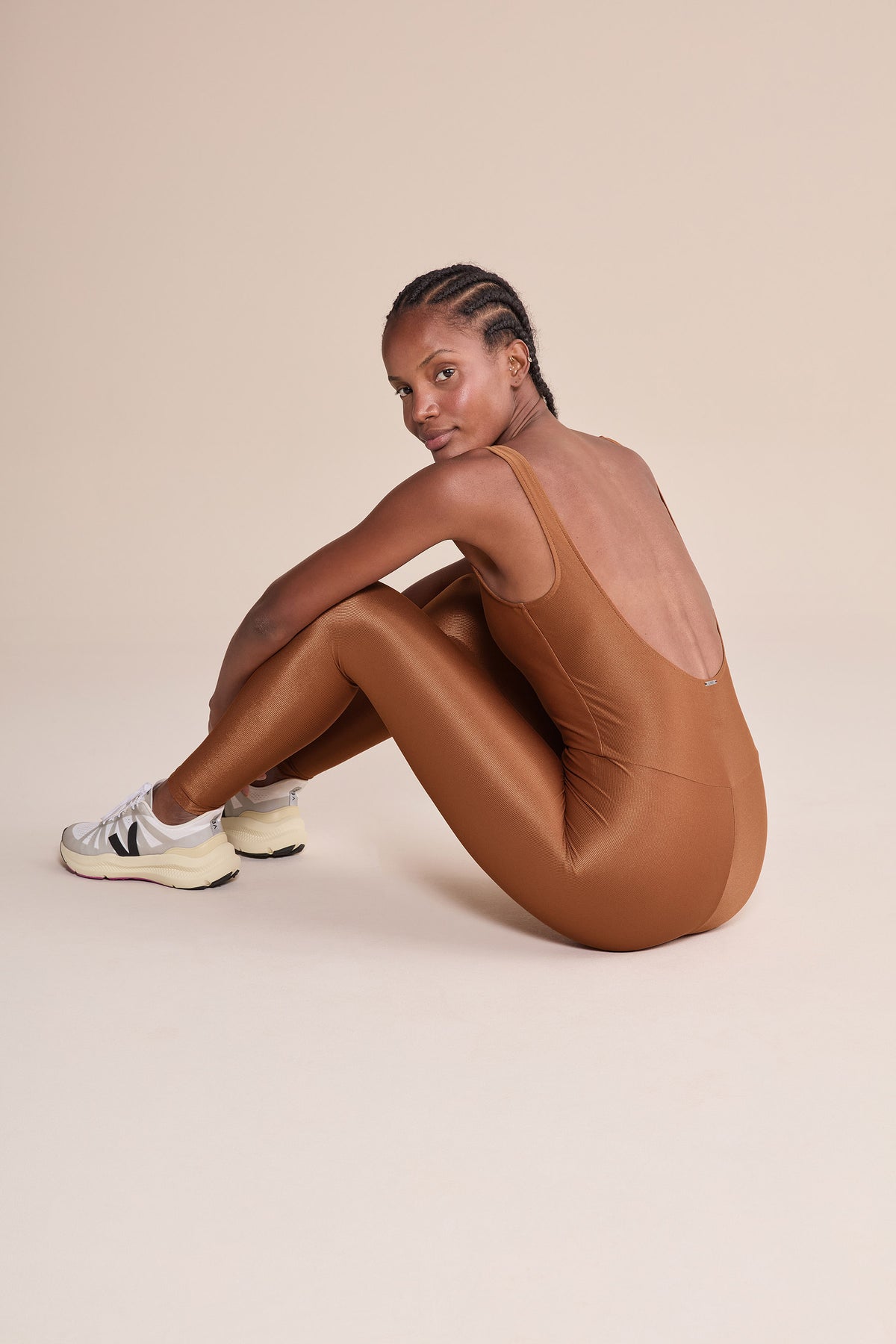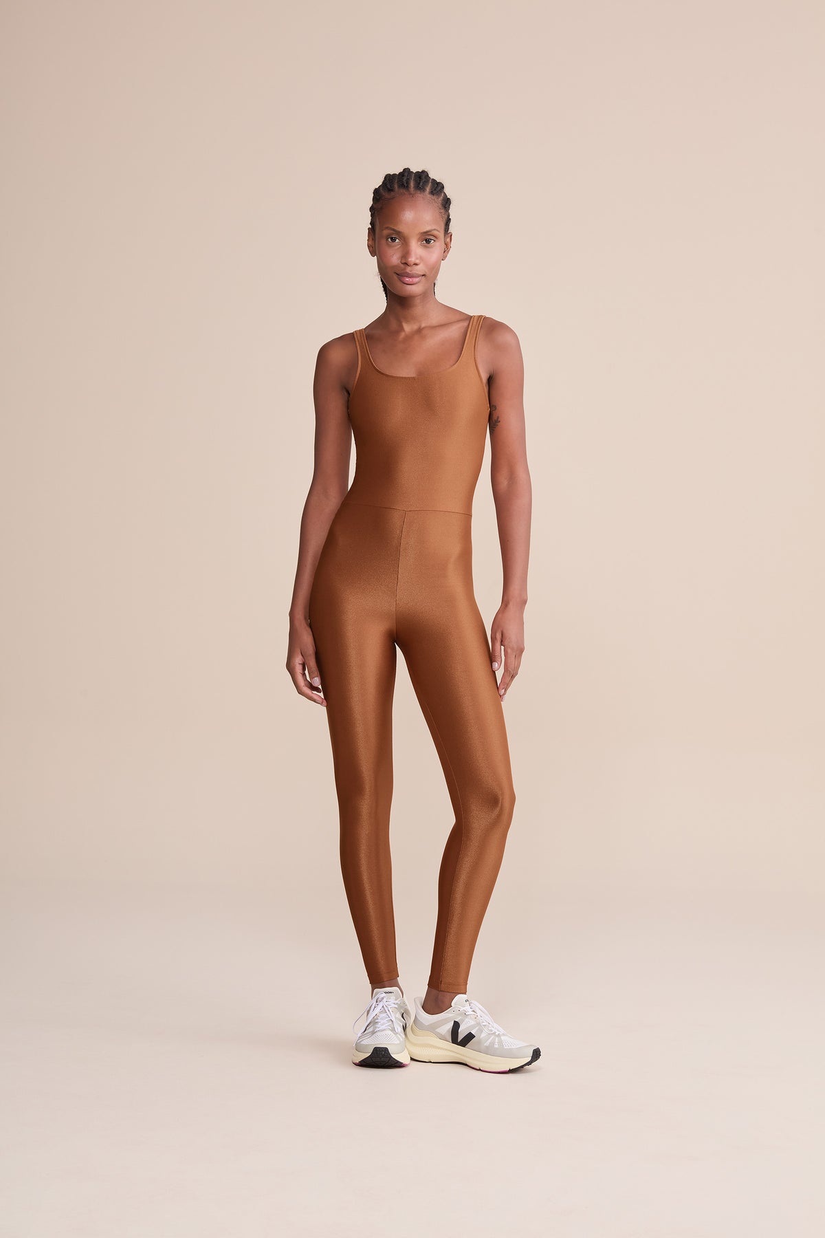 Full-length jumpsuit designed with an elongated, modern silhouette for a refined, sculpting look. Wide straps and a deep back neckline enhance the silhouette, while the lined upper body and removable cups—accessible through a small internal opening—support improved fit and versatility. Crafted in Allure® Adaptiv fabric with inclusive LYCRA® ADAPTIV technology, this style adapts comfortably to the body. The high-compression construction supports circulation, while the ribbed texture with subtle sheen delivers a sophisticated finish with zero transparency. Finished with UV 50+ protection for outdoor activities.
