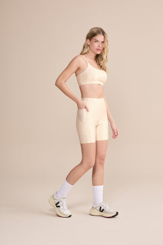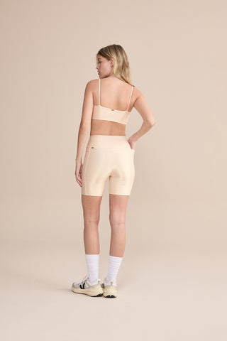 The Allure® Adaptiv Long Shorts are designed for light to moderate workouts including gym, full body training, running, and walking. With strategic cutouts forming two functional side pockets, they provide convenient storage for essentials. A reinforced hip lining ensures zero transparency for added confidence. Made from Allure® fabric with inclusive LYCRA® ADAPTIV technology, they adapt to the body with maximum comfort, while the compressive construction supports circulation. The ribbed texture with subtle shine adds sophistication, and UV 50+ protection makes them ideal for outdoor use.
