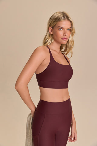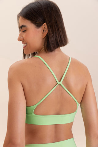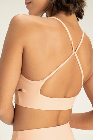 Training top designed for light to medium–impact workouts, balancing comfort, breathability, and a refined silhouette. Features fixed thin straps and a cross-back design that subtly reveals the skin while enhancing airflow during movement. Removable cups—accessible through a small internal opening—add versatility to the fit. Crafted from Hydefit® Adaptiv fabric with a soft hand feel and excellent drape, and finished with Signature LIVE! branding for an authentic touch. Built with UV 50+ protection and Easy Care technology for added practicality and confidence during outdoor activities.