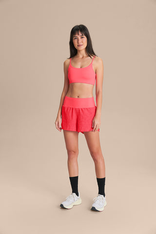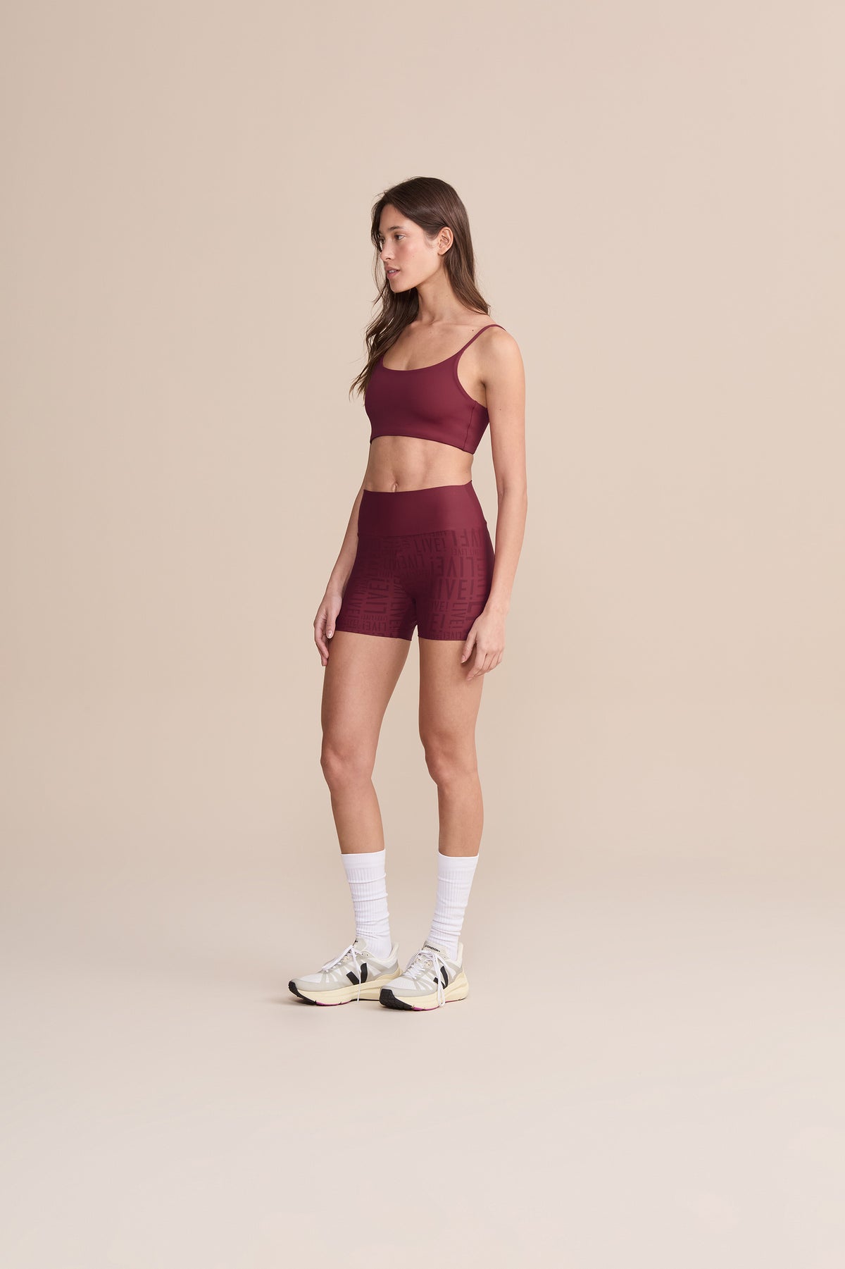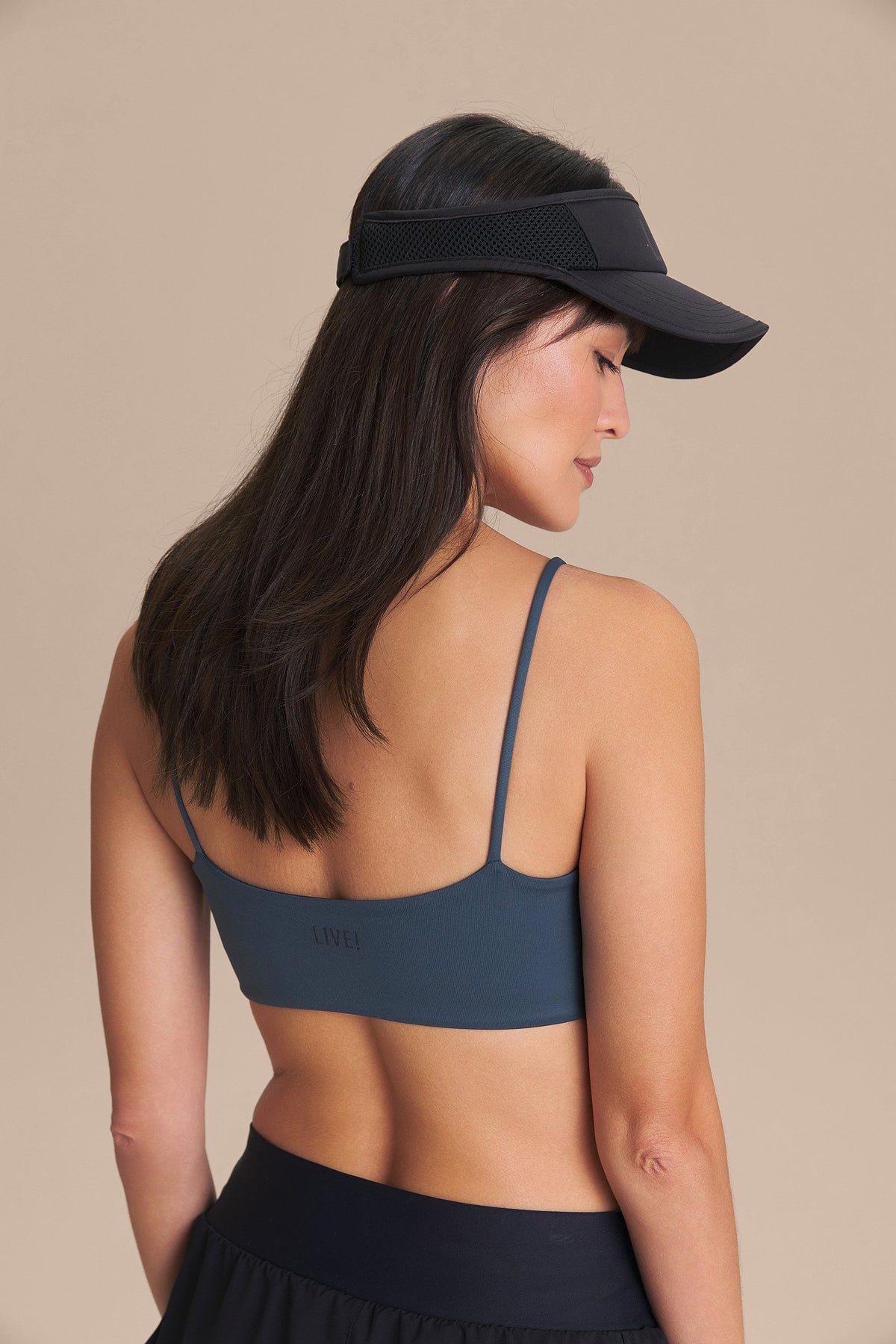The Curve Sense® Bra is designed for light to moderate workouts including gym, full body training, running, and walking. With a minimalist design featuring thin straps and a straight hem, it delivers lightness and freedom of movement for low-impact sports or casual wear. The removable padding, accessible through a discreet inner opening, adds versatility for daily use. Made from soft-touch fabric with excellent drape, it provides comfort along with UV 50+ protection for outdoor activity. The Signature LIVE! print adds an authentic finish.