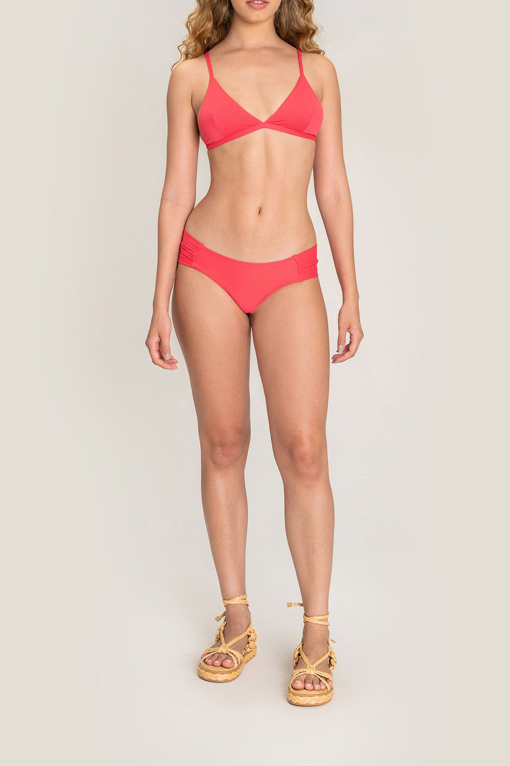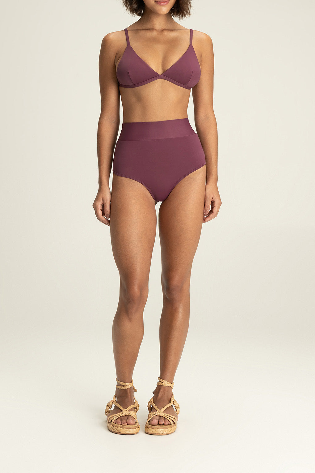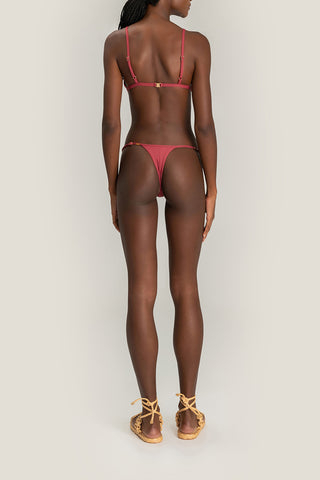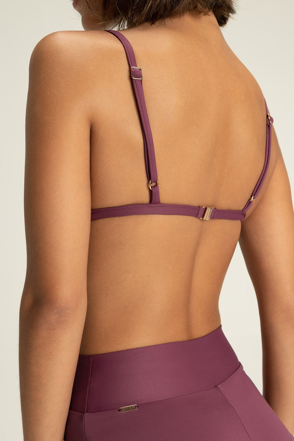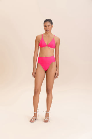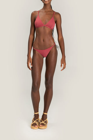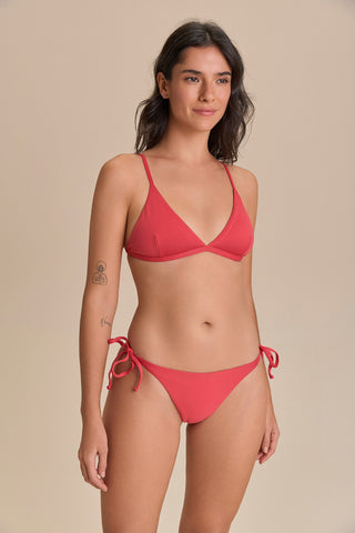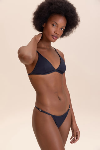 Triangle bikini top designed to combine lightweight comfort with a secure fit. Adjustable slim straps and slightly wider side panels provide comfortable support, while a back closure adds everyday practicality. Removable cups, accessed through a discreet internal opening, offer versatile wear. Crafted from a soft-touch fabric for comfort and style in the sun.