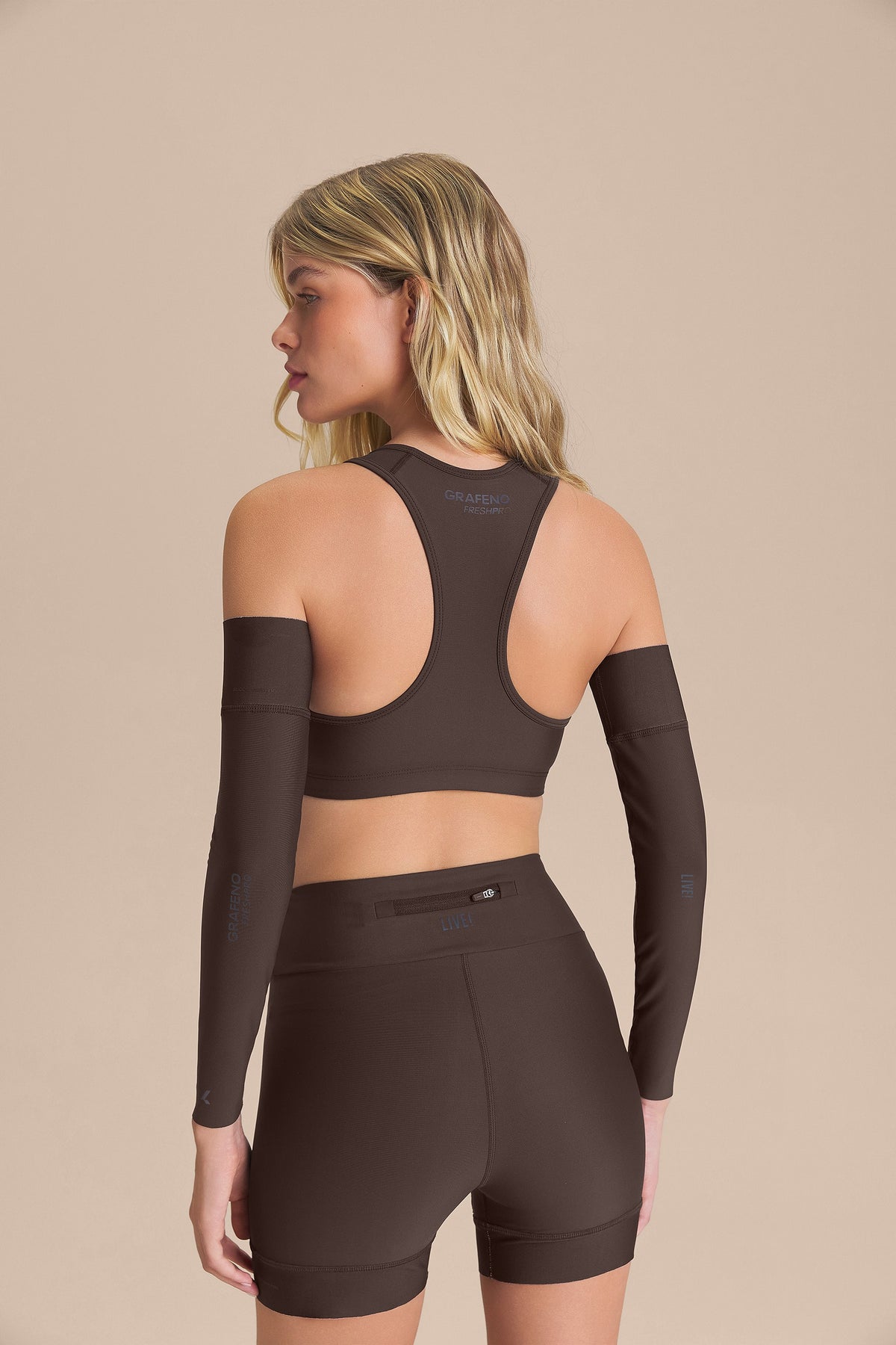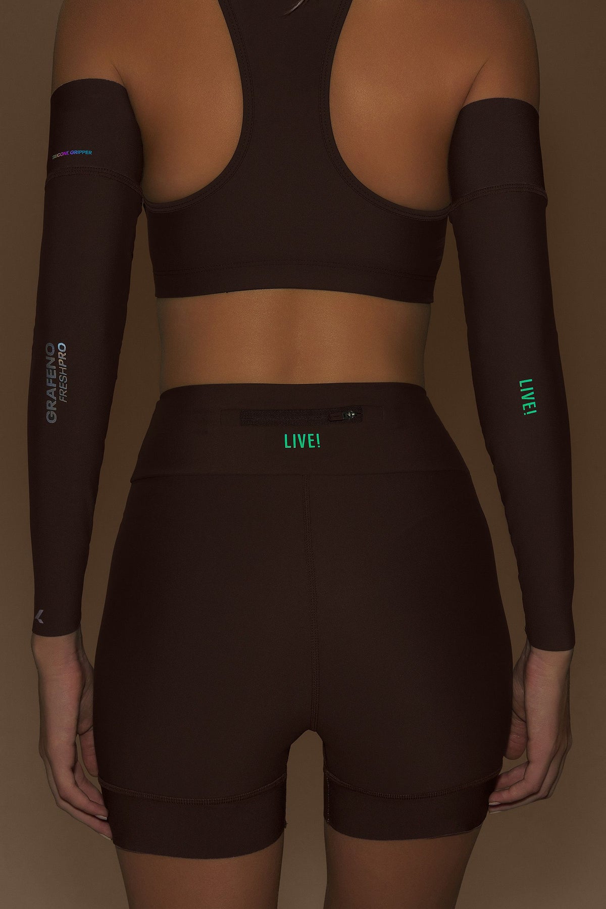 The Graphene Arm Sleeves were designed to provide comfort and protection during outdoor activities. Made from fabric with UPF 50+ protection and an internal Graphene print, an innovative technology that evenly distributes heat and helps maintain the body’s thermal balance during exercise. Strategically placed reflective details enhance safety in low-light environments, while the silicone gripper with a sealed inner finish reduces friction and keeps the length securely in place. The exclusive LIVE! Signature reinforces the product’s authenticity.