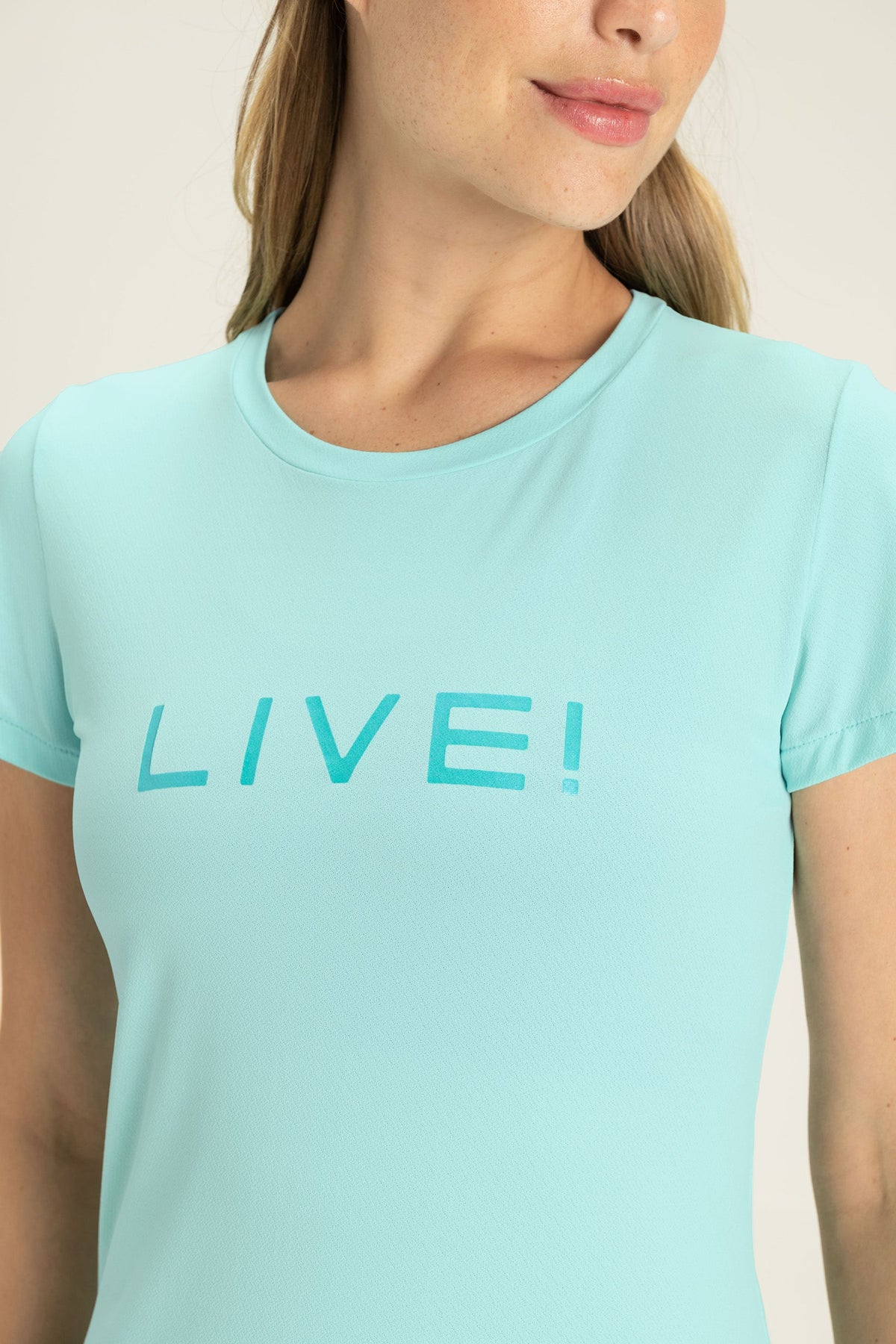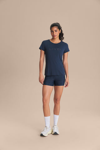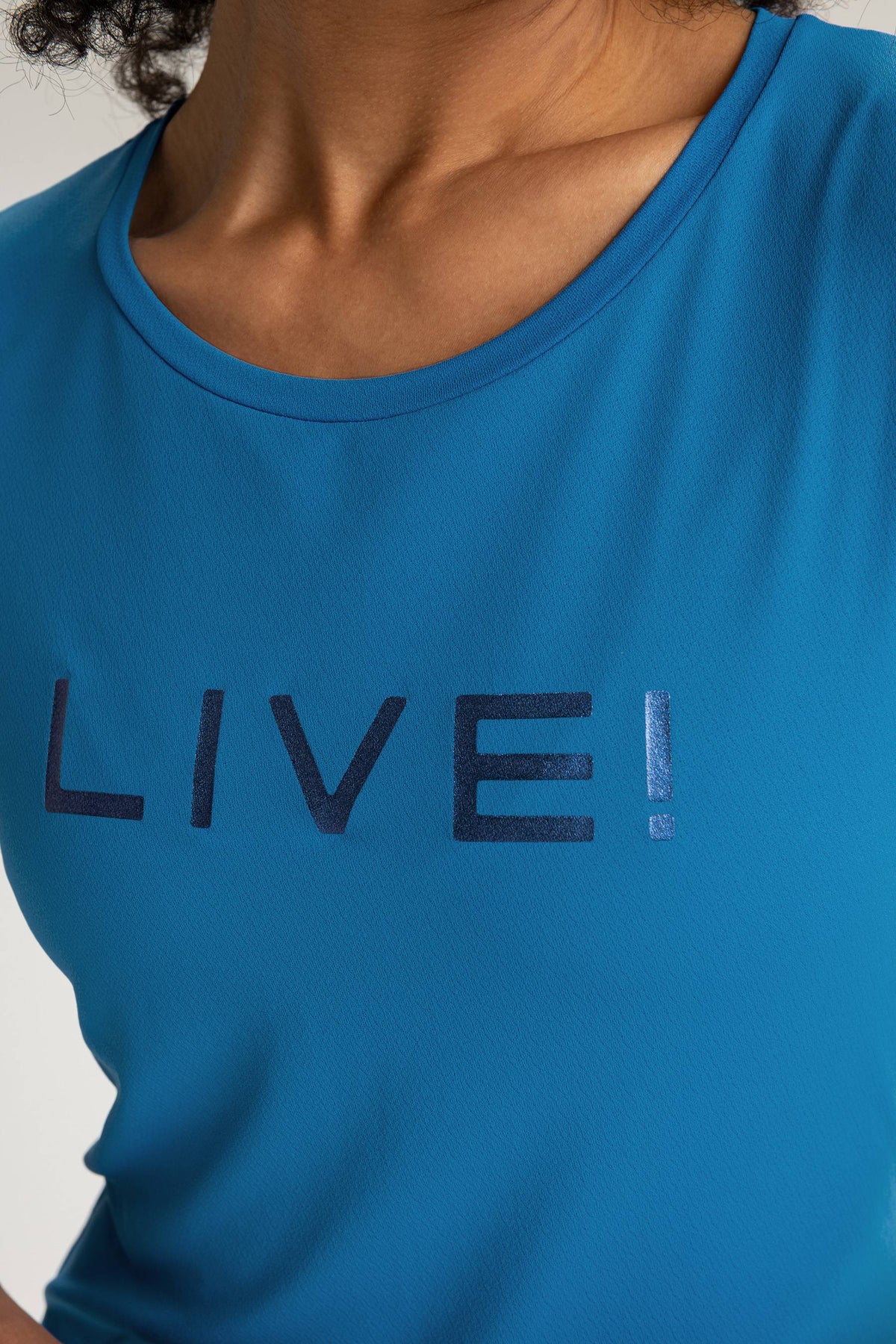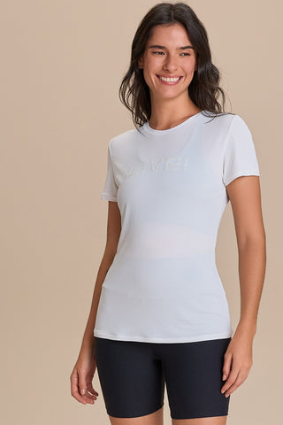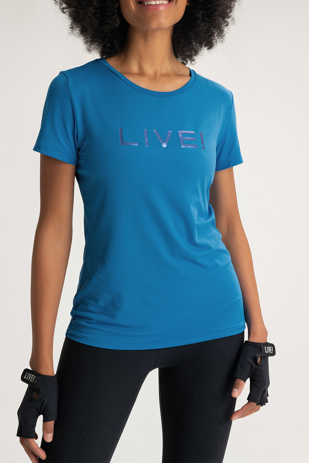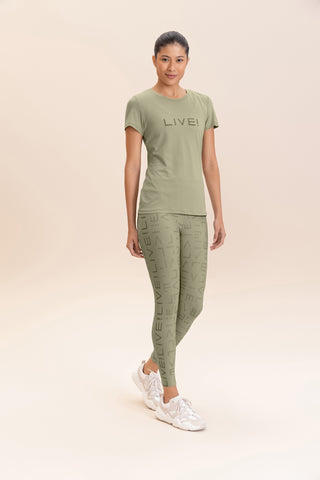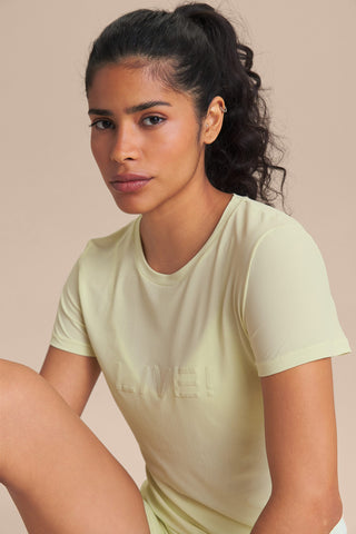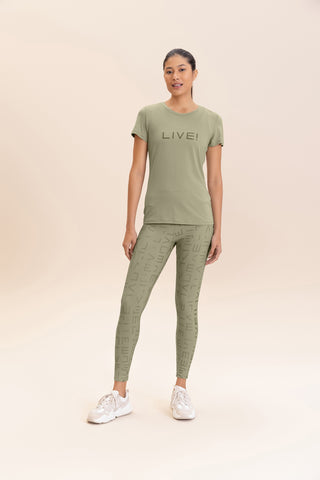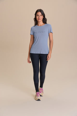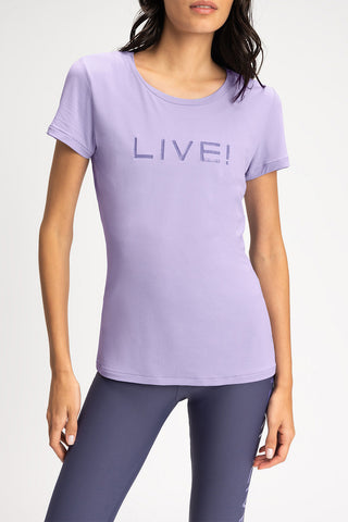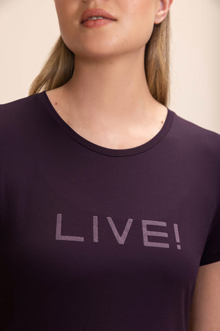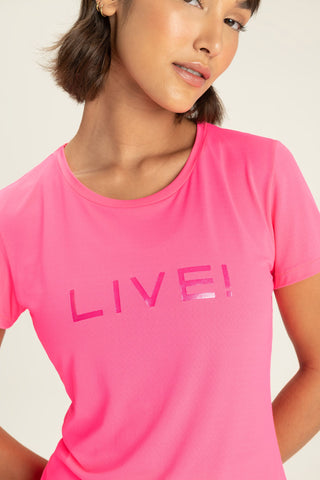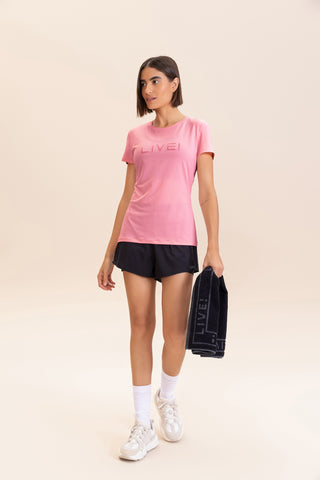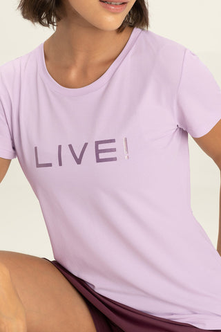 The LIVE! Comfort T-Shirt is designed for light to moderate workouts including gym, full body training, running, and walking. With a slightly loose fit, it blends comfort and style for everyday training. Made from ultra-light, breathable fabric, it features Quick Dry technology to manage moisture and Easy Care for simplified daily maintenance. The Signature LIVE! print with subtle shine adds authenticity and a modern finish.