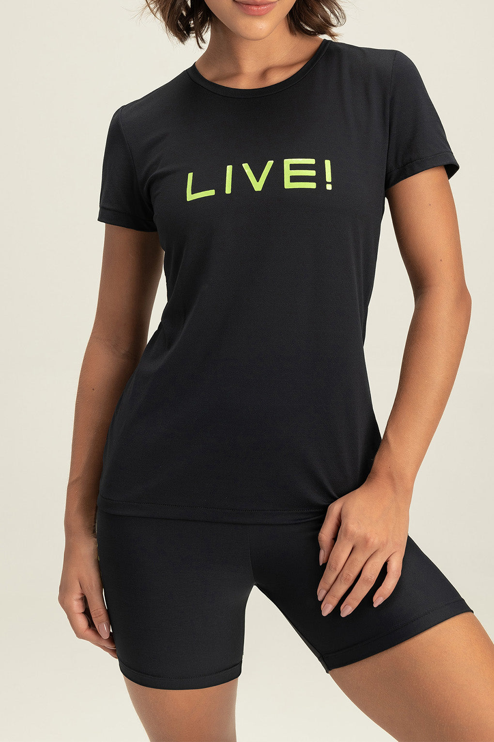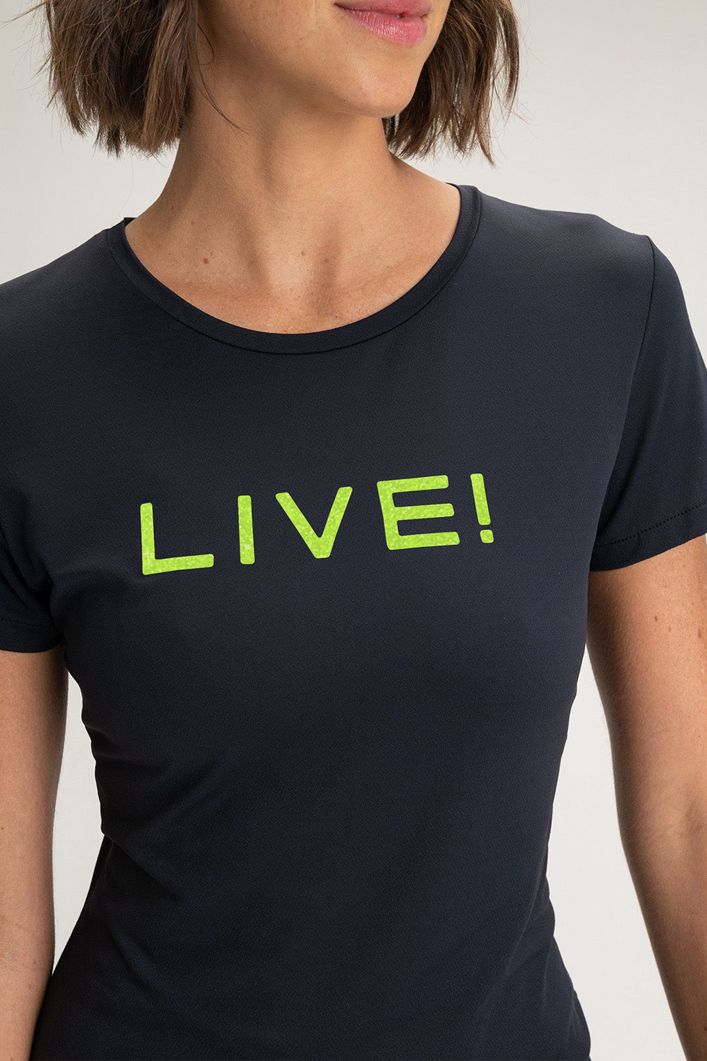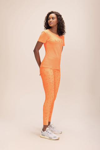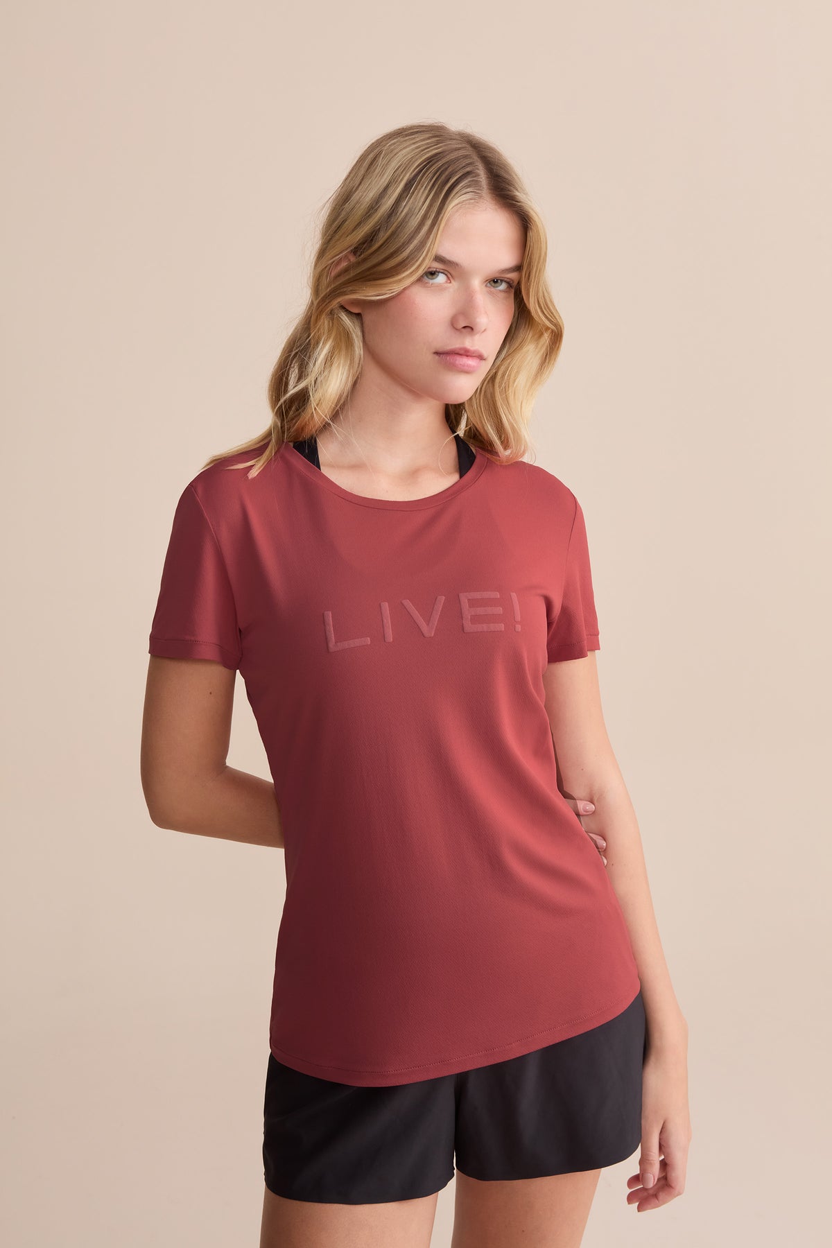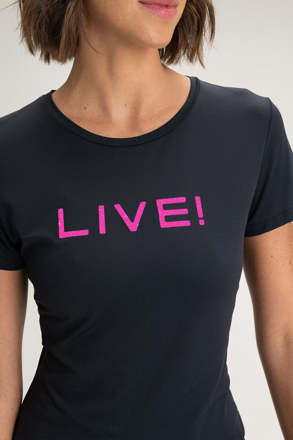 The LIVE! Comfort T-Shirt is designed for light to moderate workouts including gym, full body training, running, and walking. With a slightly loose fit, it blends comfort and style for everyday training. Made from ultra-light, breathable fabric, it features Quick Dry technology to manage moisture and Easy Care for simplified daily maintenance. The Signature LIVE! print with subtle shine adds authenticity and a modern finish.