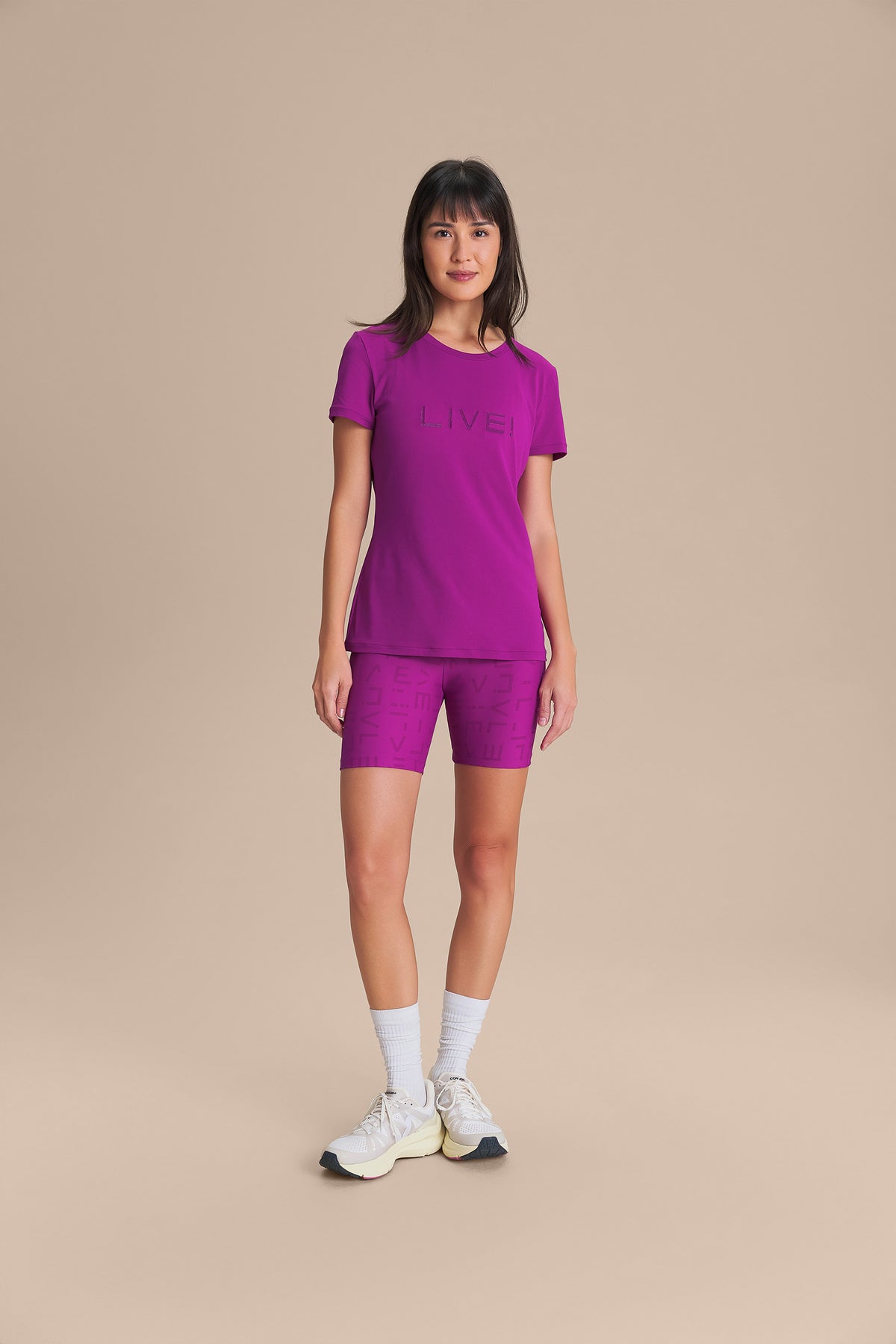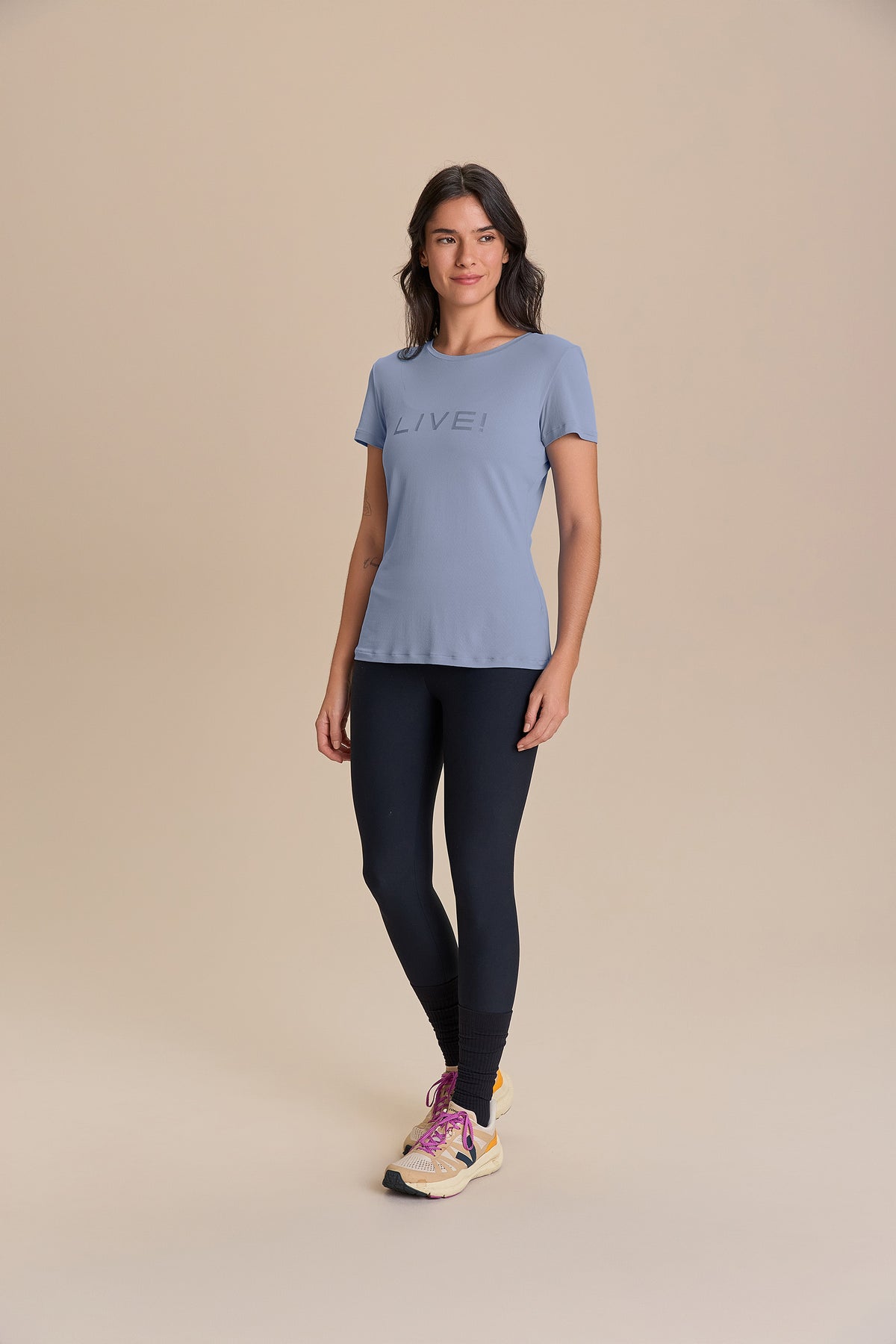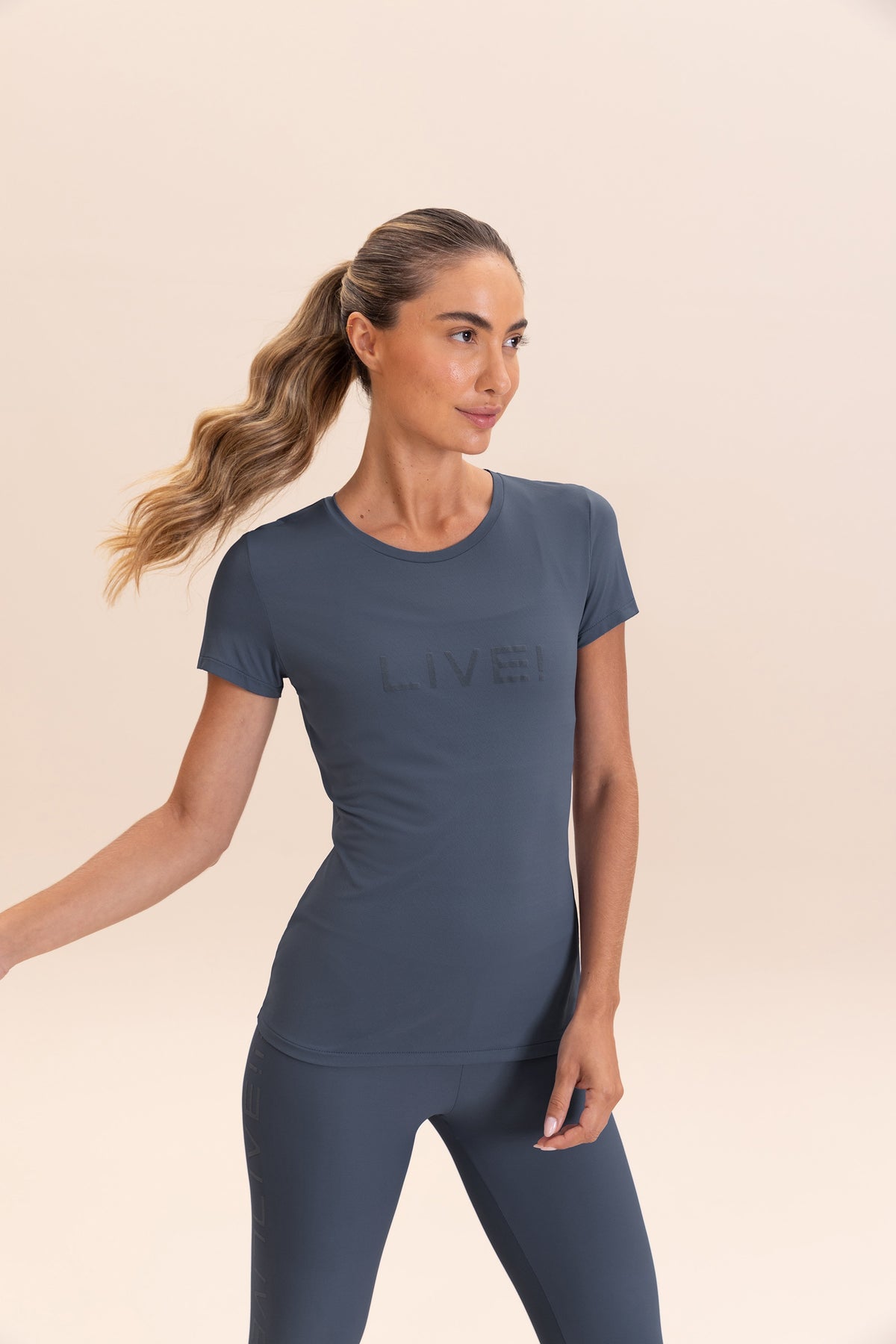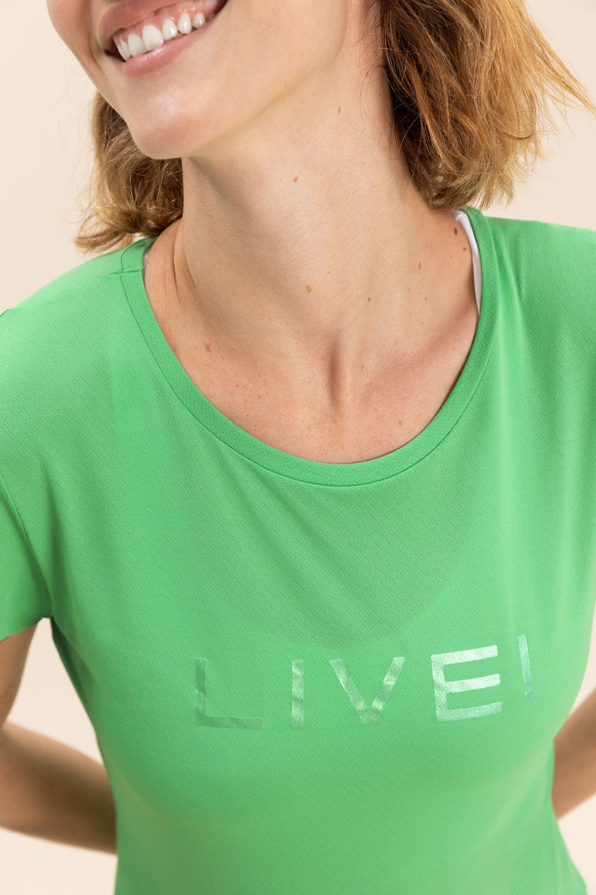 The LIVE! Comfort T-Shirt is designed for light to moderate workouts including gym, full body training, running, and walking. With a slightly loose fit, it blends comfort and style for everyday training. Made from ultra-light, breathable fabric, it features Quick Dry technology to manage moisture and Easy Care for simplified daily maintenance. The Signature LIVE! print with subtle shine adds authenticity and a modern finish.