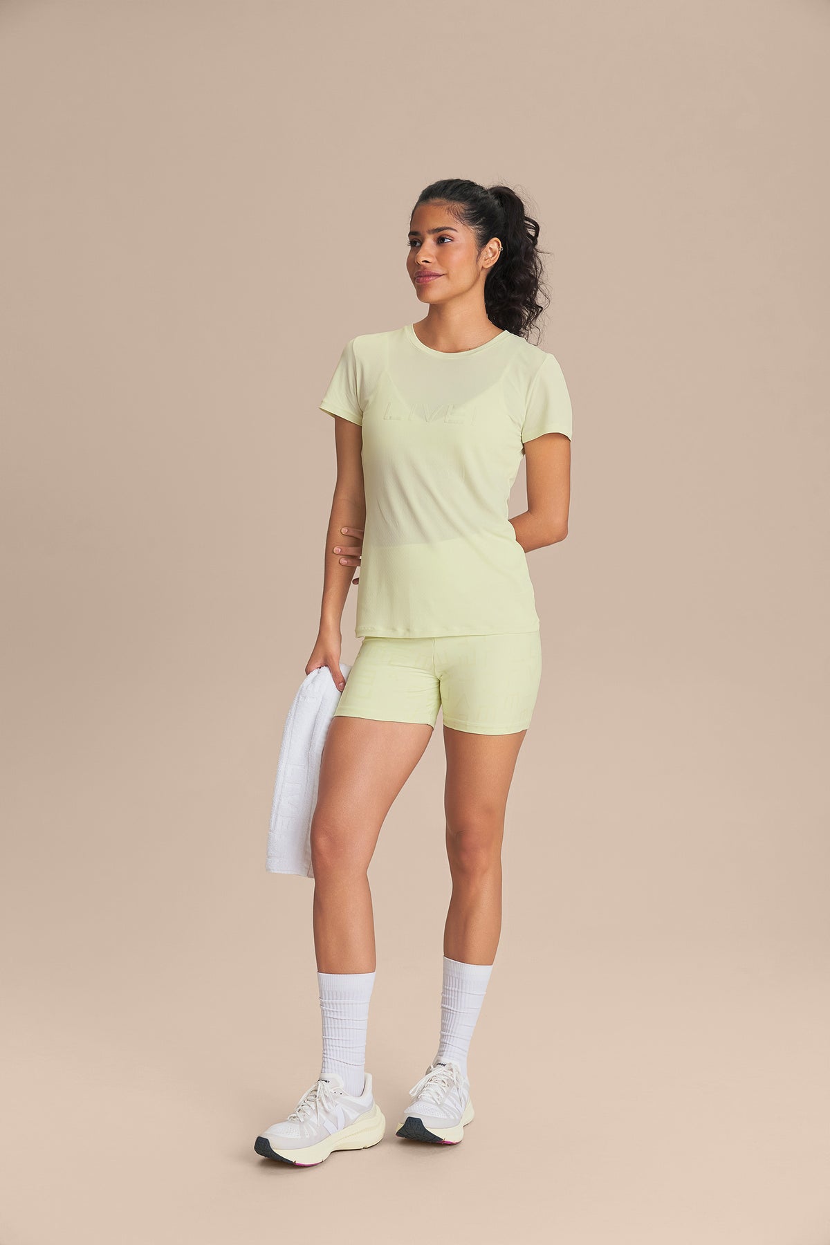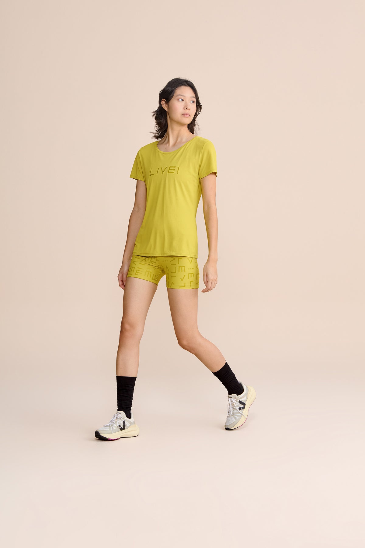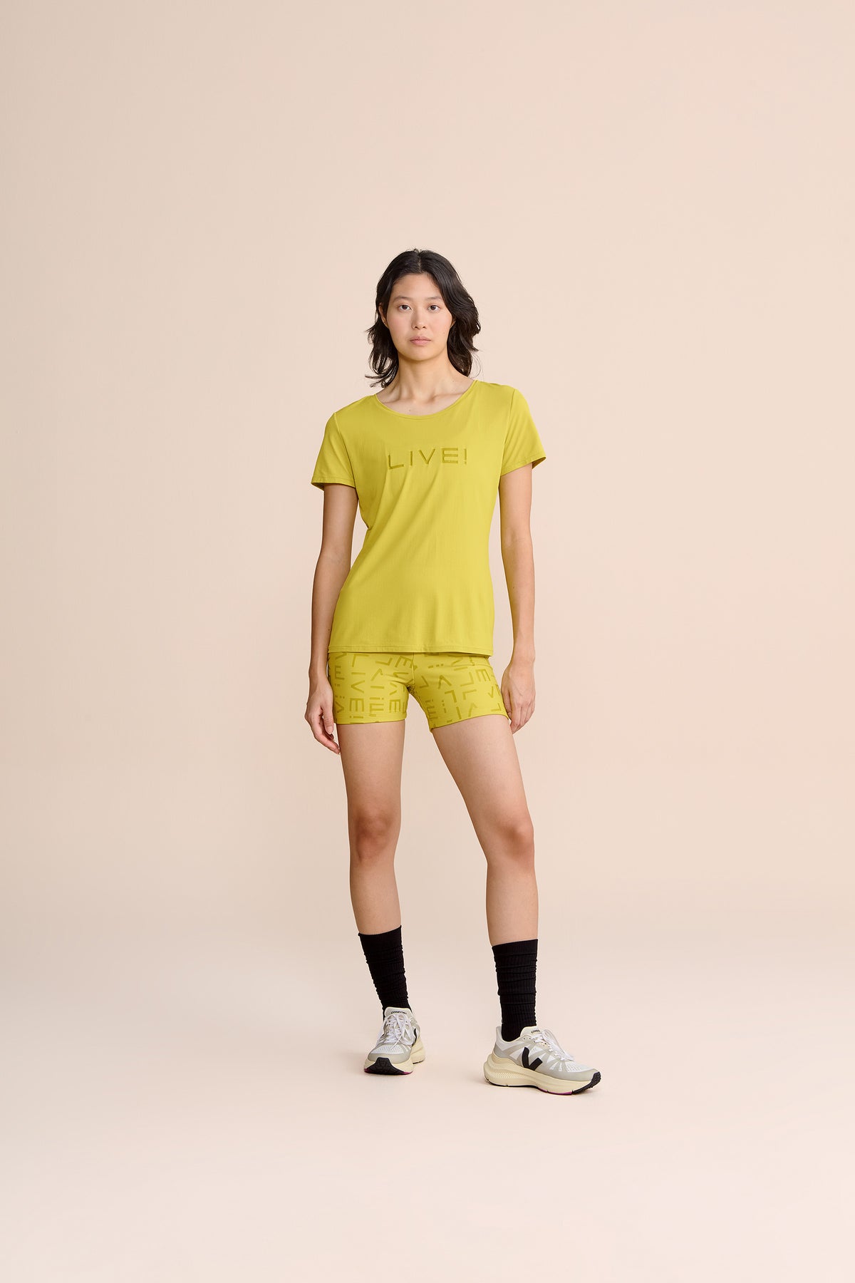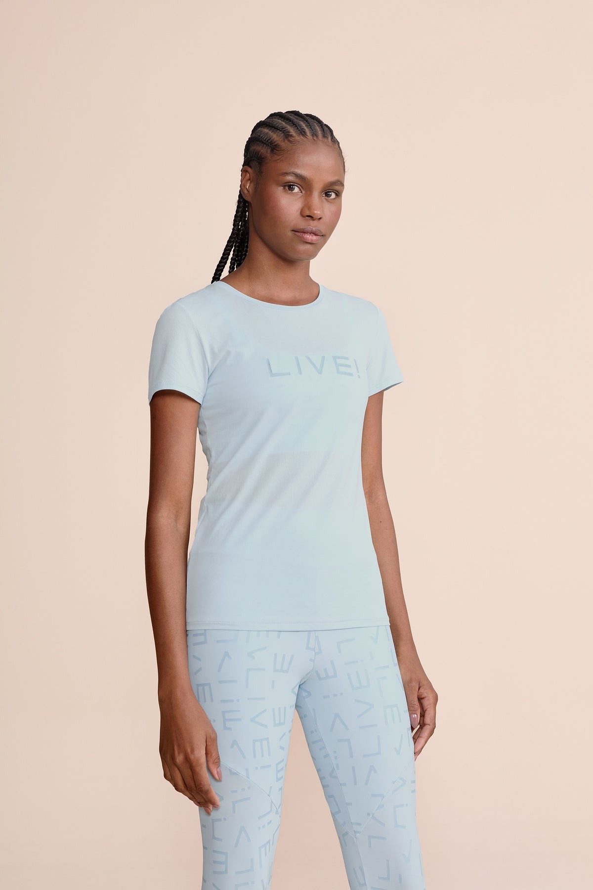 The LIVE! Comfort T-Shirt is designed for light to moderate workouts including gym, full body training, running, and walking. With a slightly loose fit, it blends comfort and style for everyday training. Made from ultra-light, breathable fabric, it features Quick Dry technology to manage moisture and Easy Care for simplified daily maintenance. The Signature LIVE! print with subtle shine adds authenticity and a modern finish.