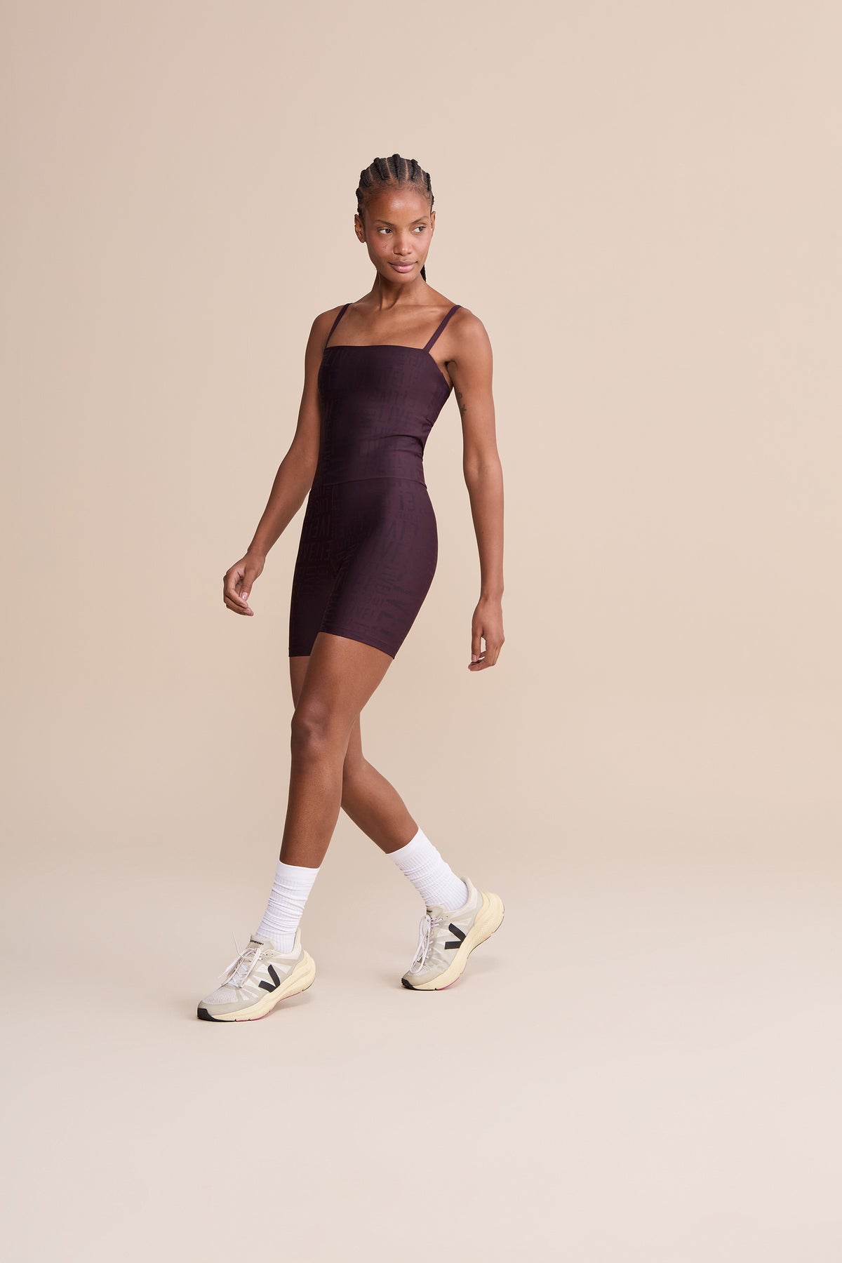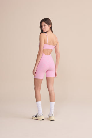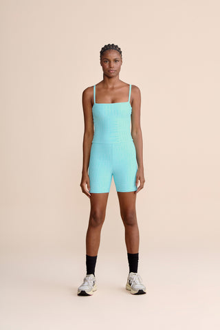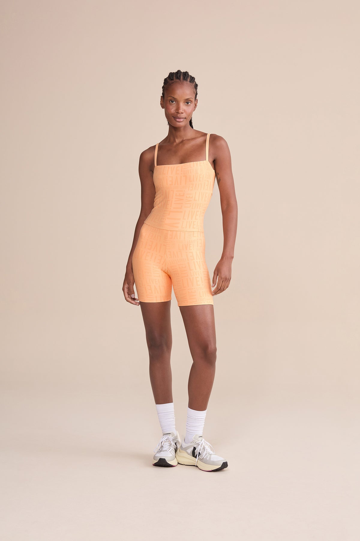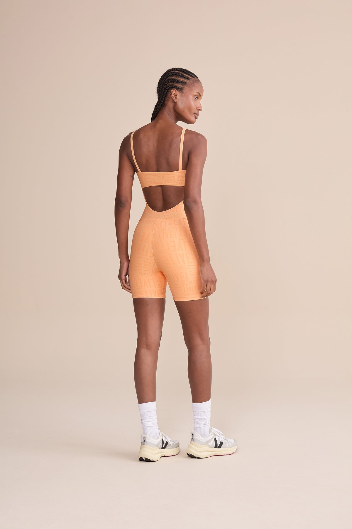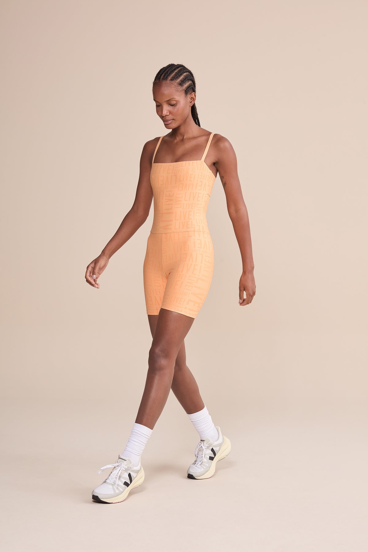 The LIVE! Shorts Jumpsuit is designed for light to moderate workouts including gym, full body training, running, and walking. Featuring thin straps and an elongated back opening, it enhances the silhouette with a modern look. Removable pads, accessible through a small internal opening, add convenience for everyday wear. Made from medium-compression fabric with a soft touch and UV 50+ protection, it ensures a secure yet comfortable fit. Reflective LIVE! branding adds safety in low-light or nighttime activity. All colorways are lined in the upper portion, while light-colored versions also include hip lining for zero transparency.